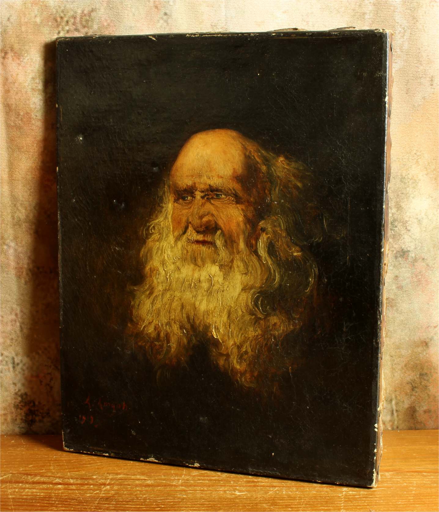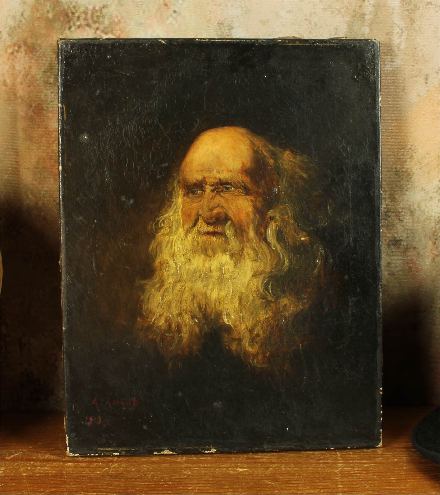This handsome early 20th century head and shoulders portrait of an elderly man with a prominent white beard is signed A Amyot, dated for 1913 and is a good decorative size at 35 cm high.
