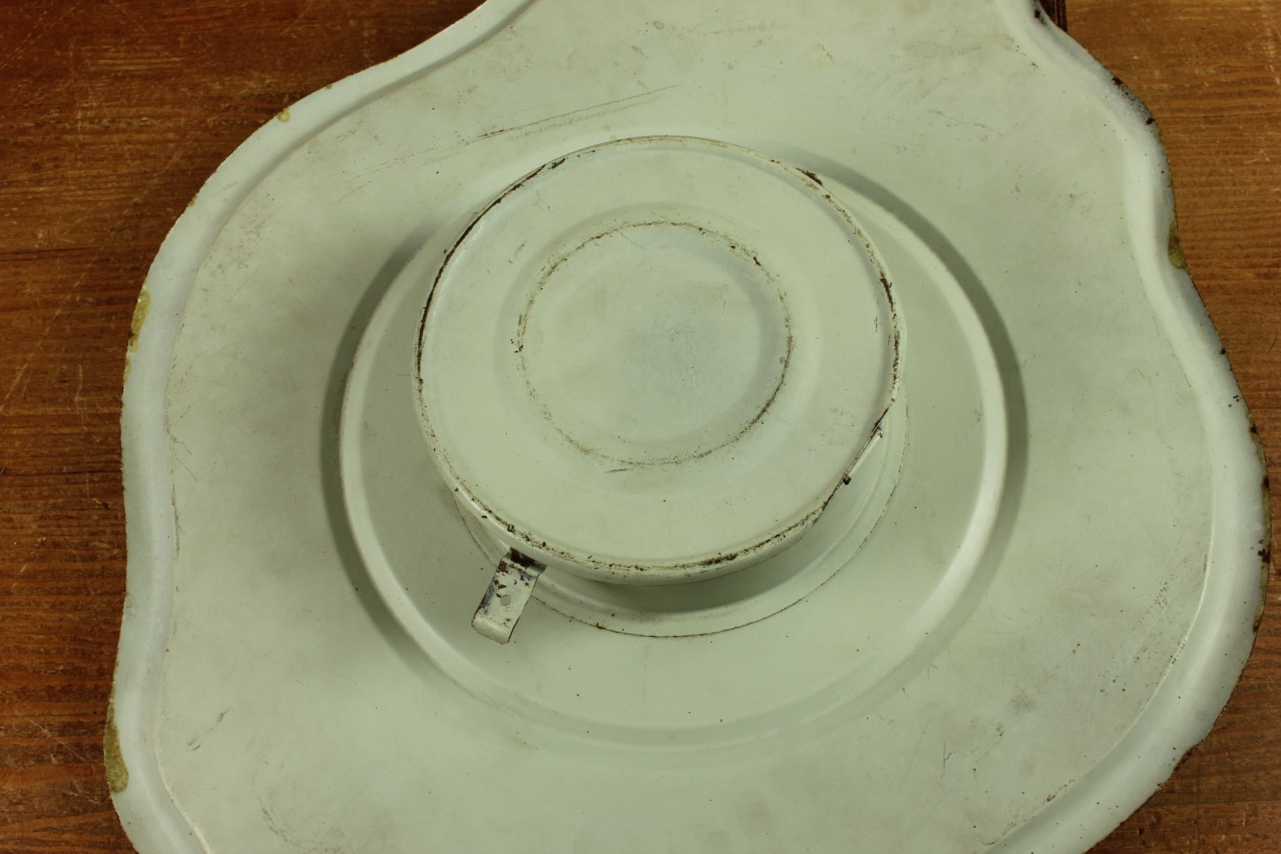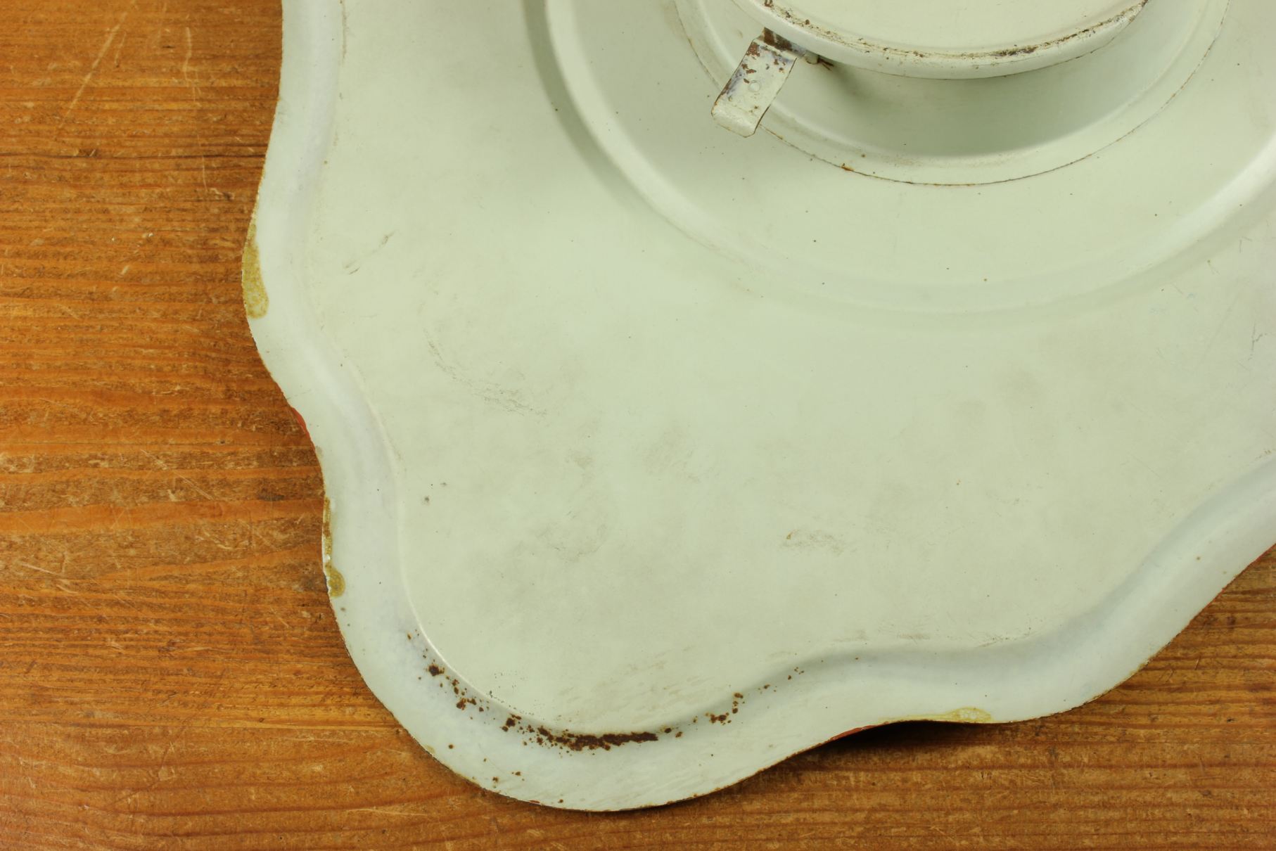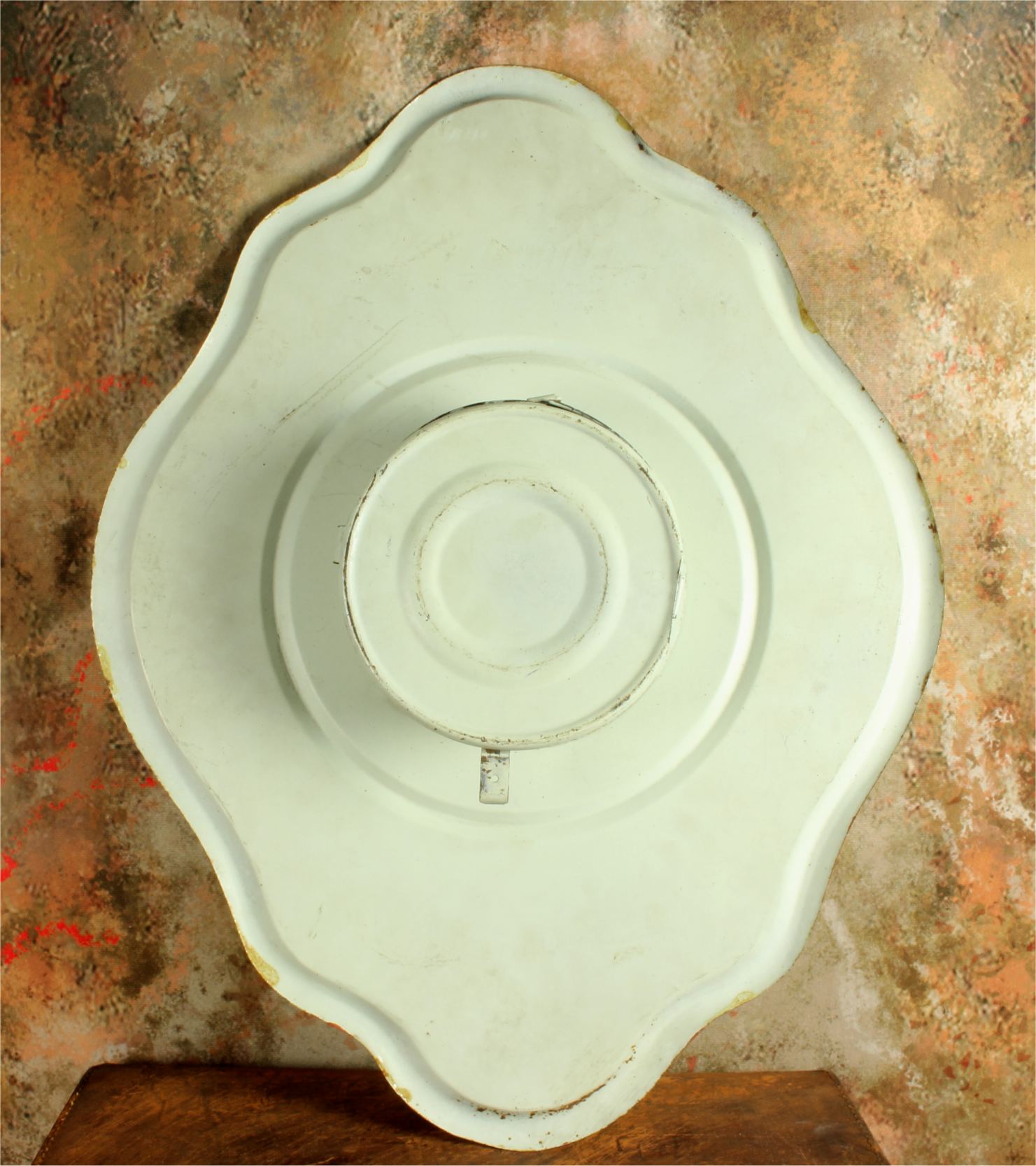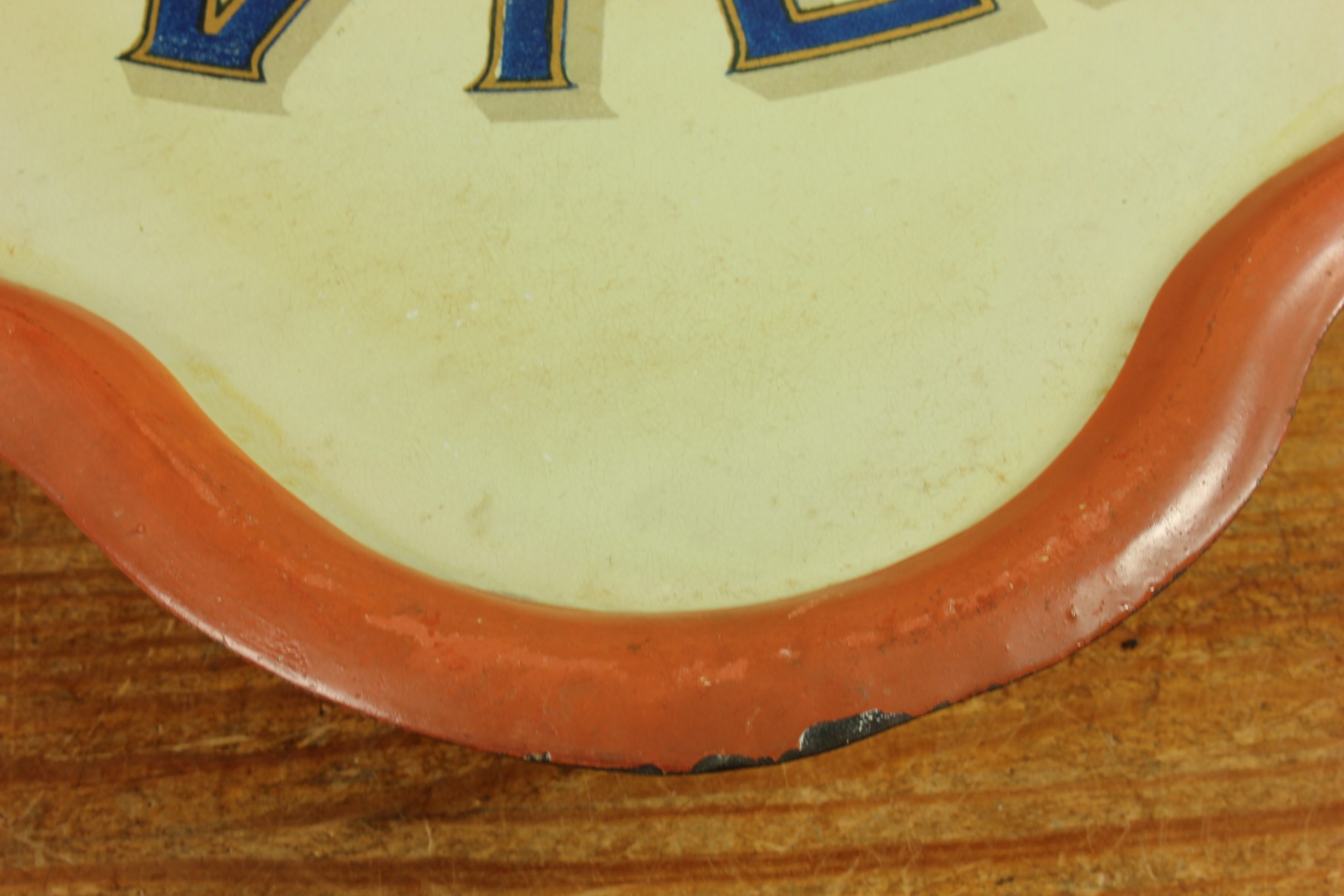 This stylish antique French toleware Chocolat Revillon advertising wall clock which dates from the second quarter of the 20th century has a wavy outer, is made of painted metal and is in excellent condition.