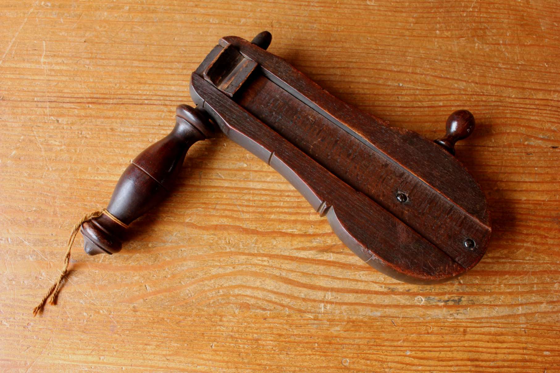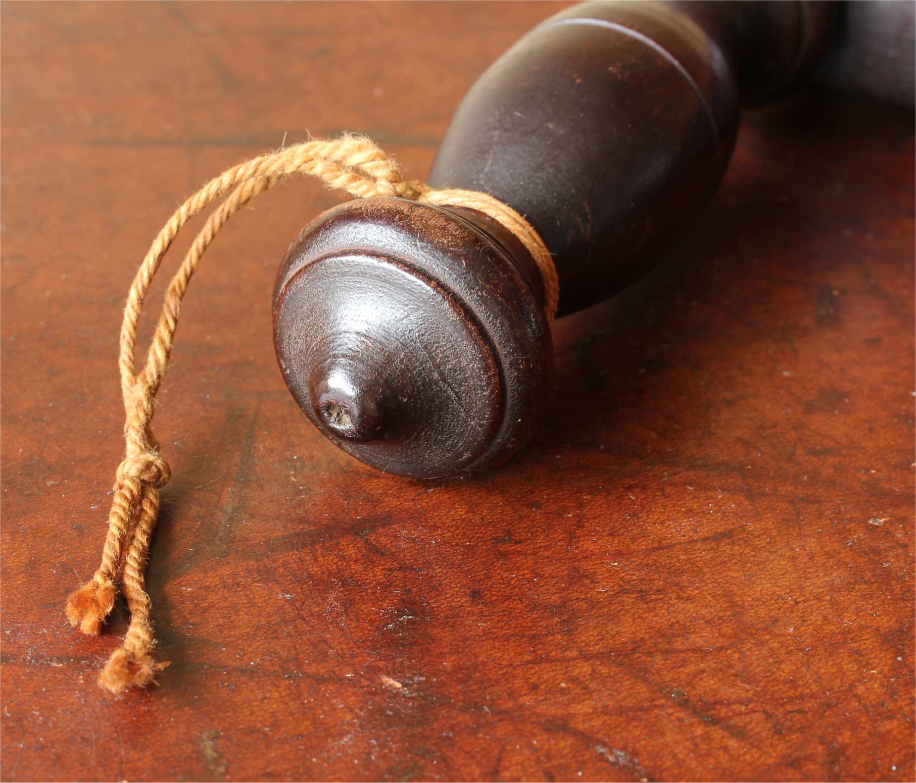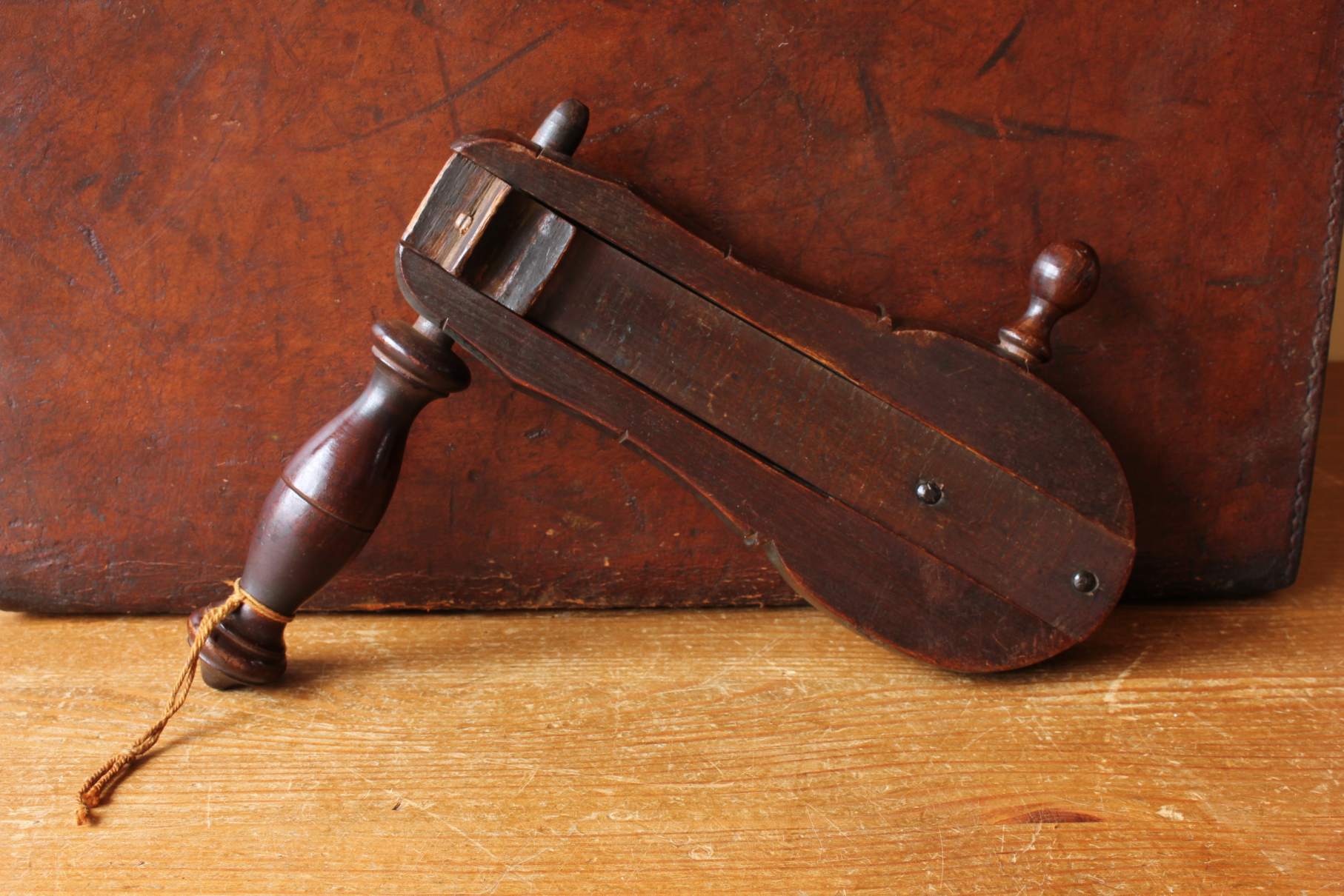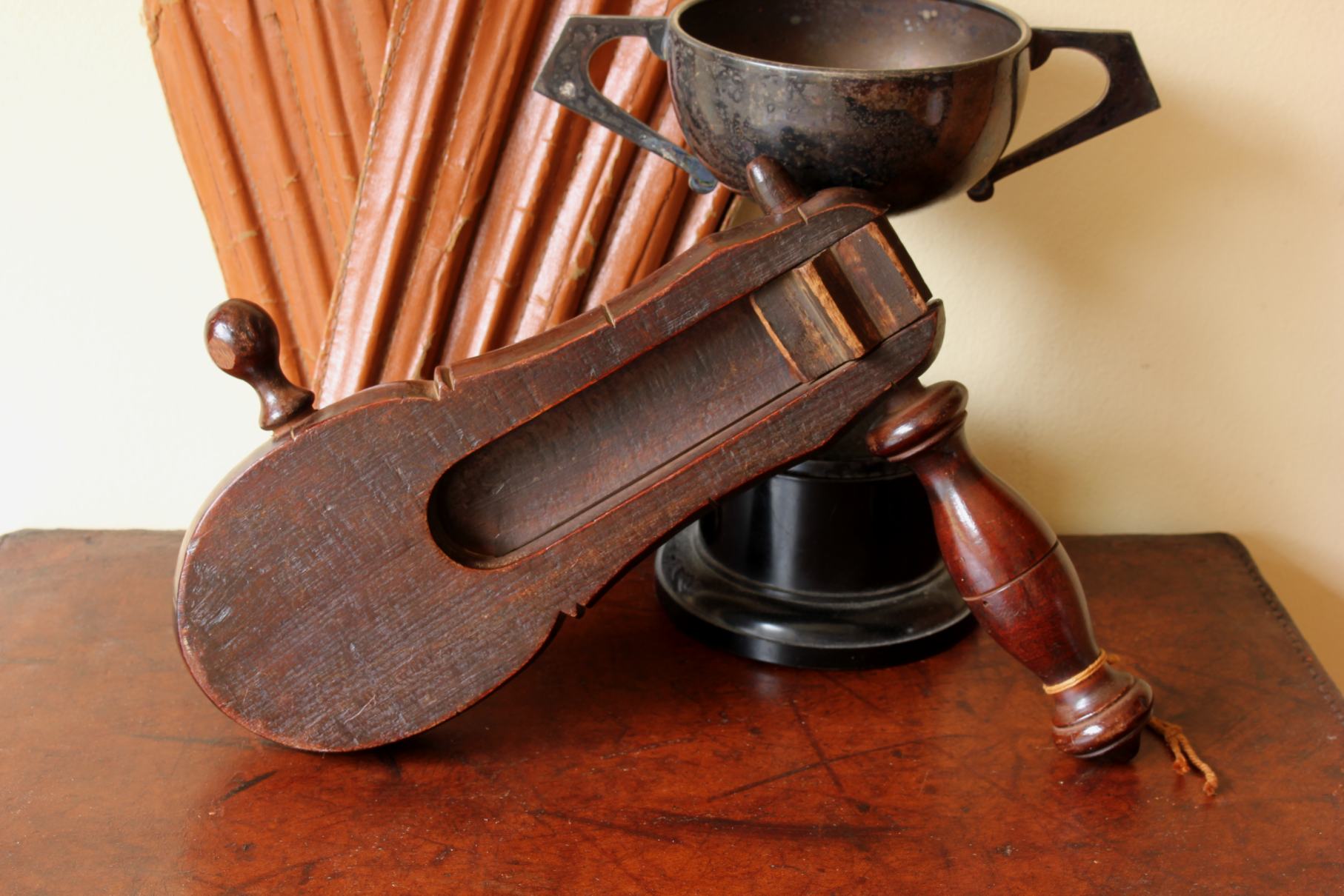 This antique wooden football rattle has a beautiful dark patina and dates from the late 19th century.