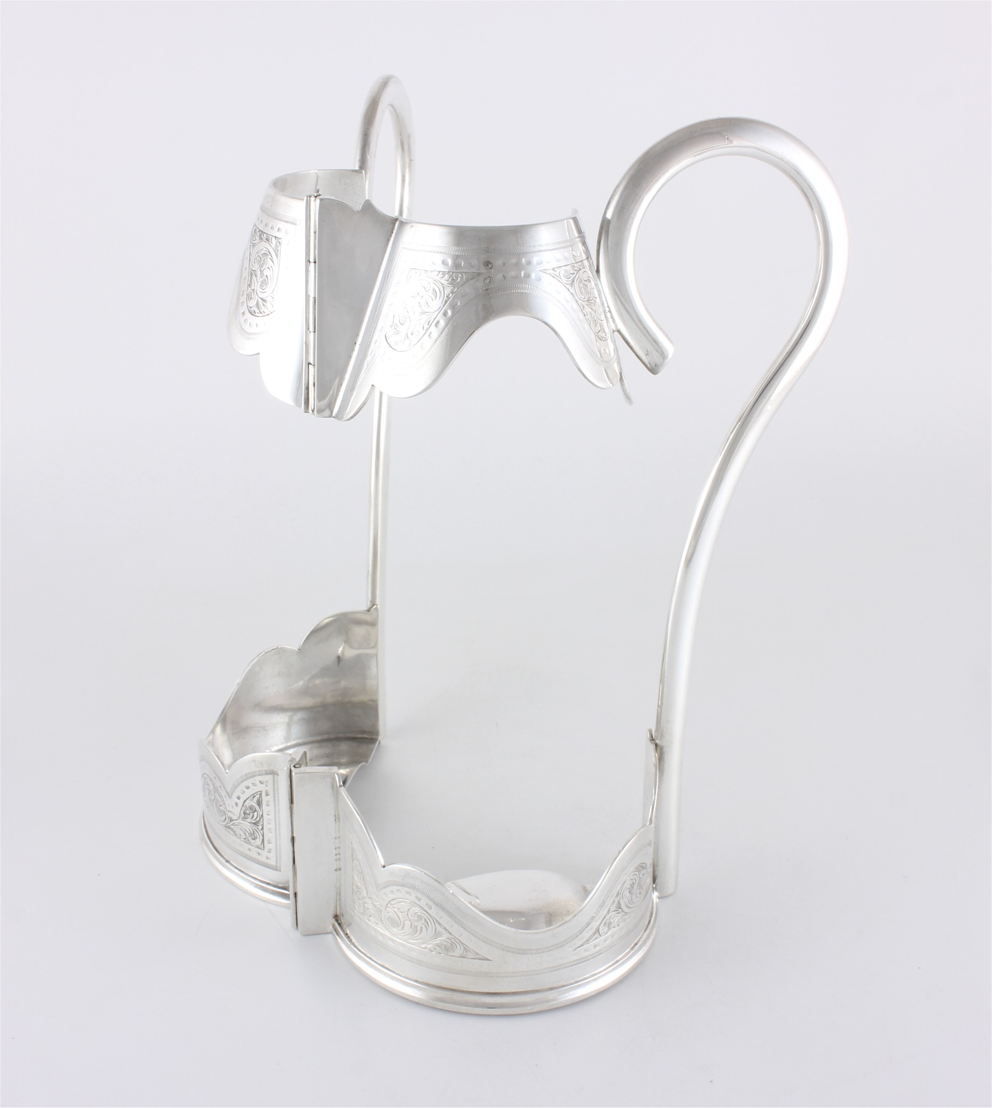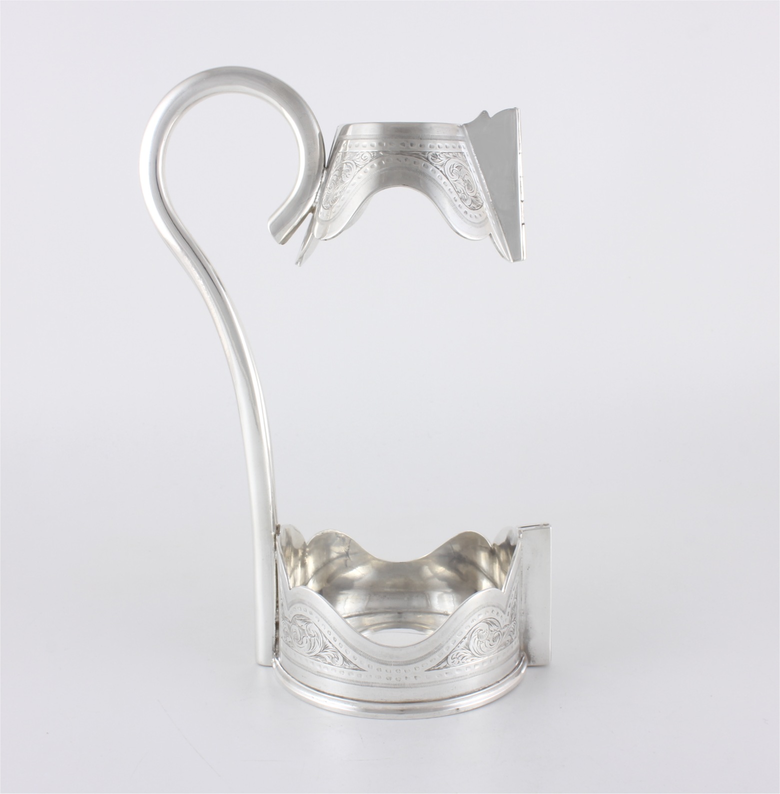 This wonderful quality silver plated wine bottle holder which dates from c1890 is by renowned maker Mappin & Webb and has a scrolling design around the top and base.