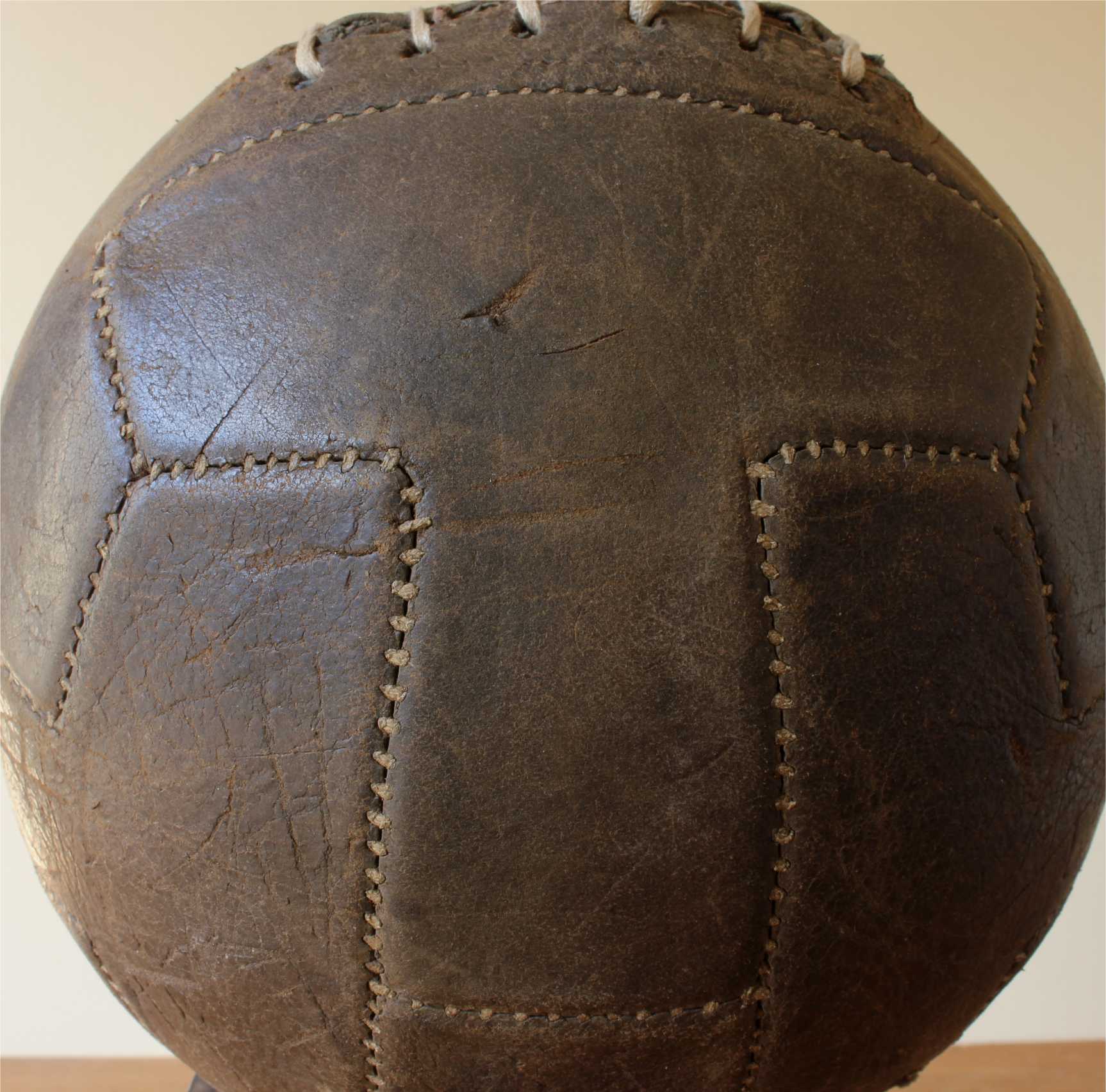 This antique / vintage size 5 T panel football which is made of soft leather has 6 pairs of lace holes fitted with cord laces and has a bladder fitted so inflates and holds it's shape well for display.