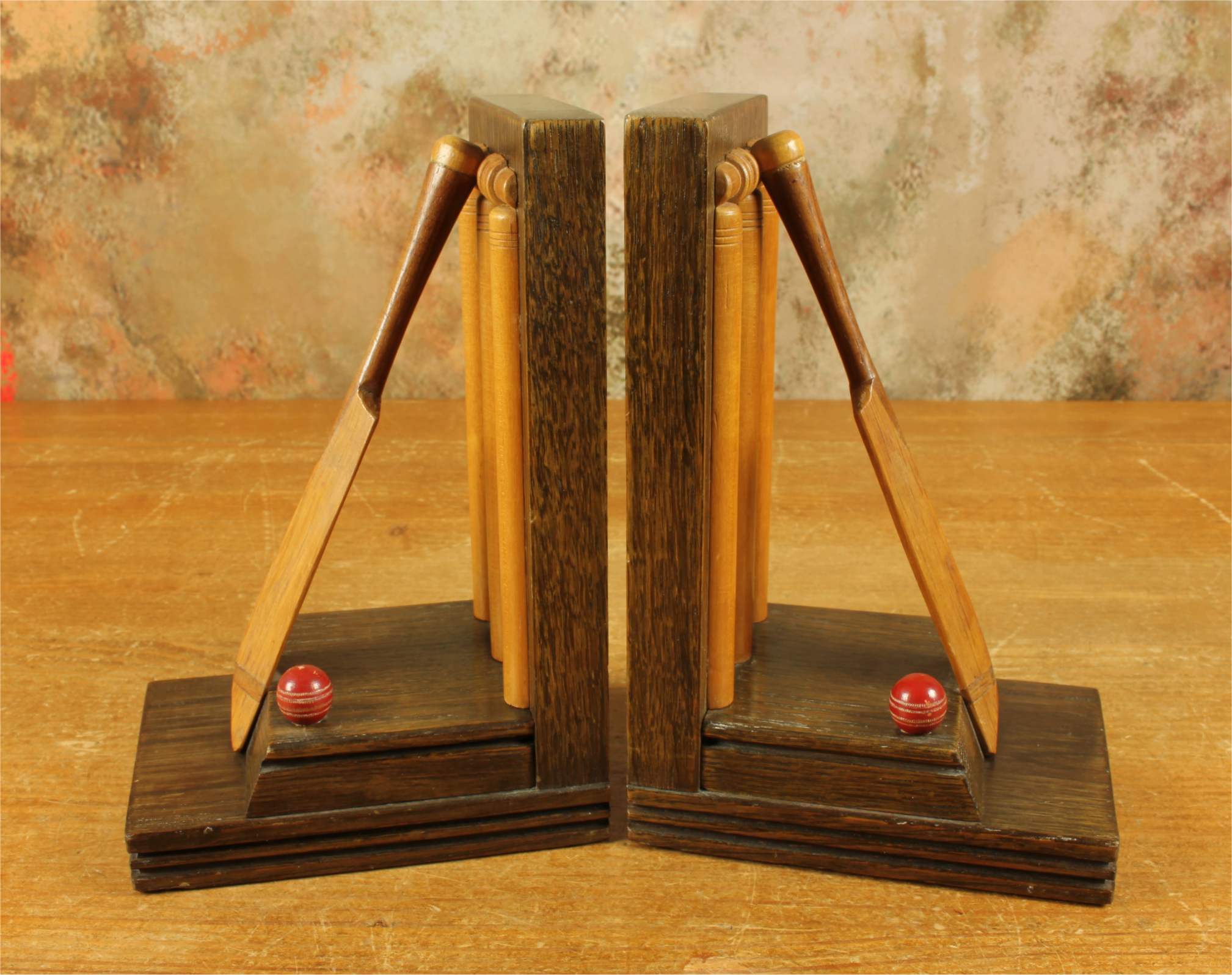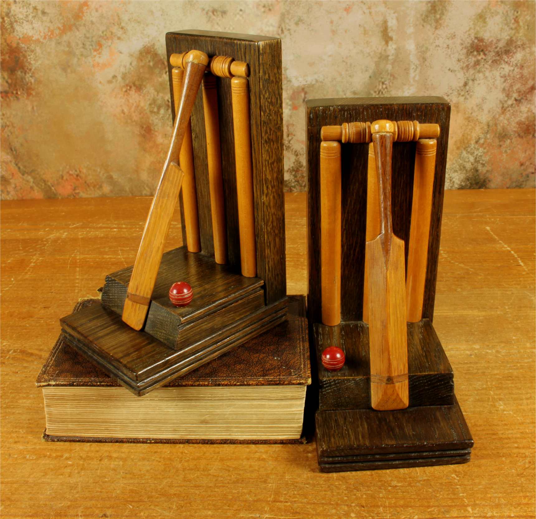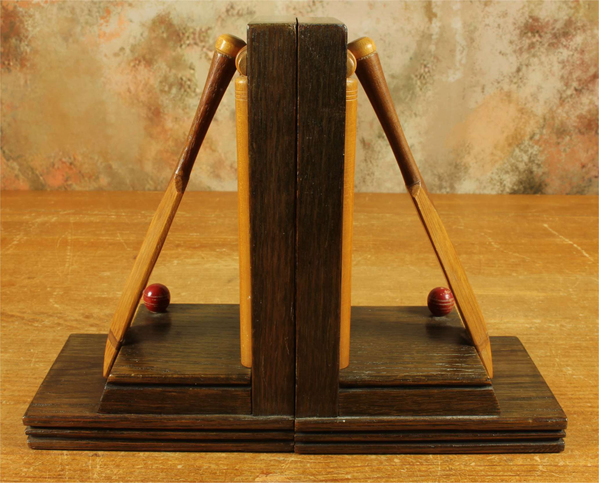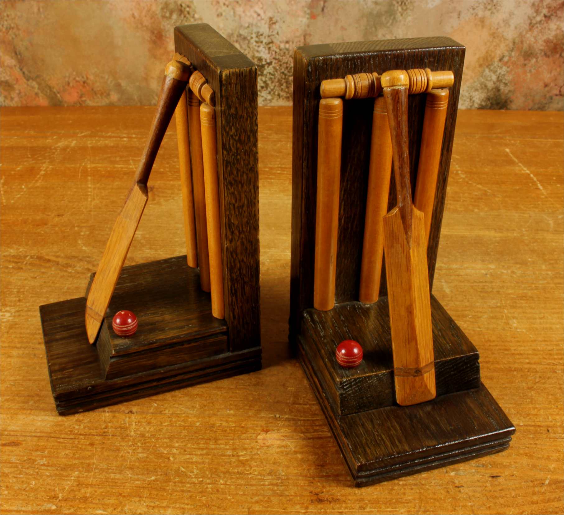 This handsome pair of wooden cricket bookends which are by the Thornton Smith Company were handmade in c1930.