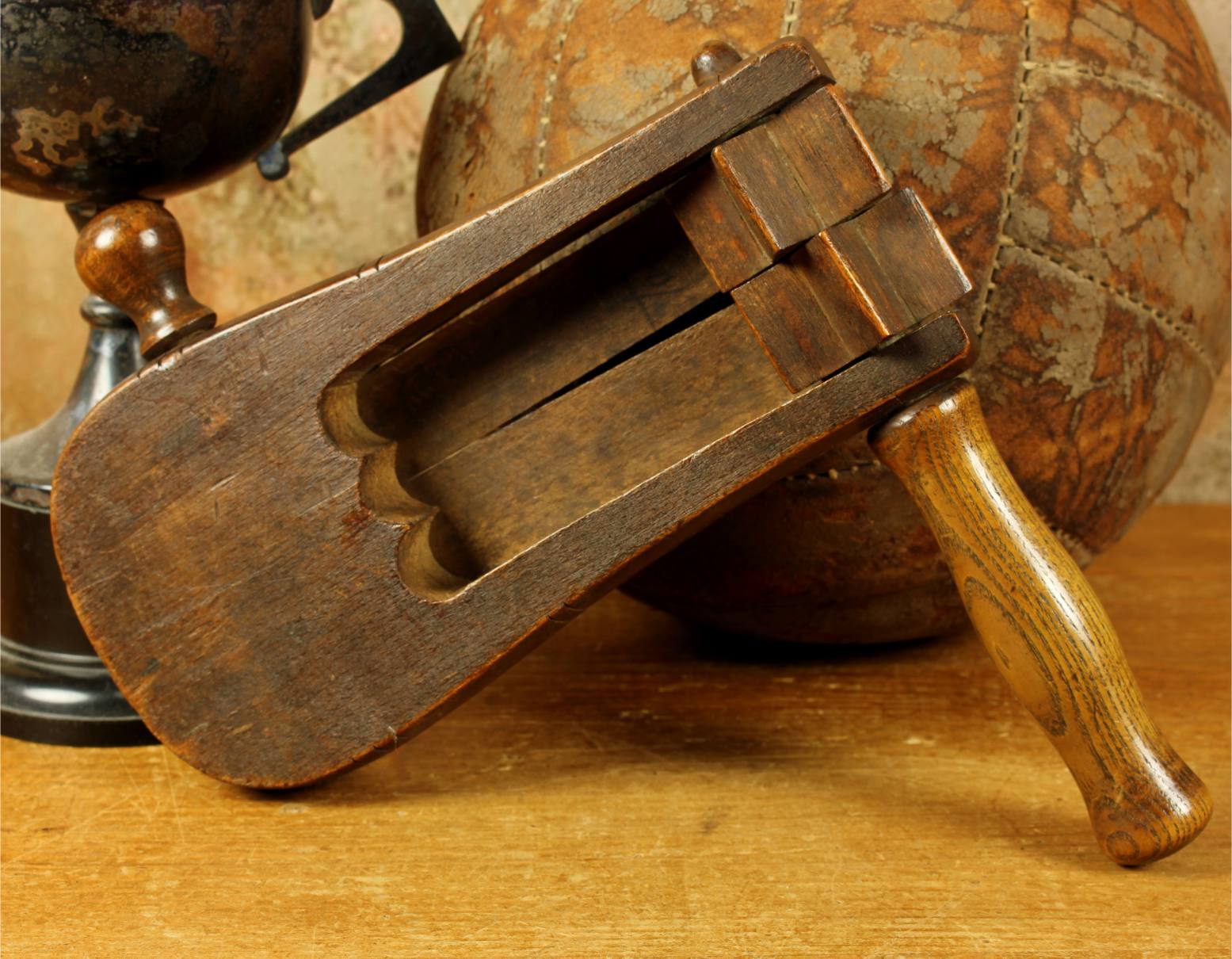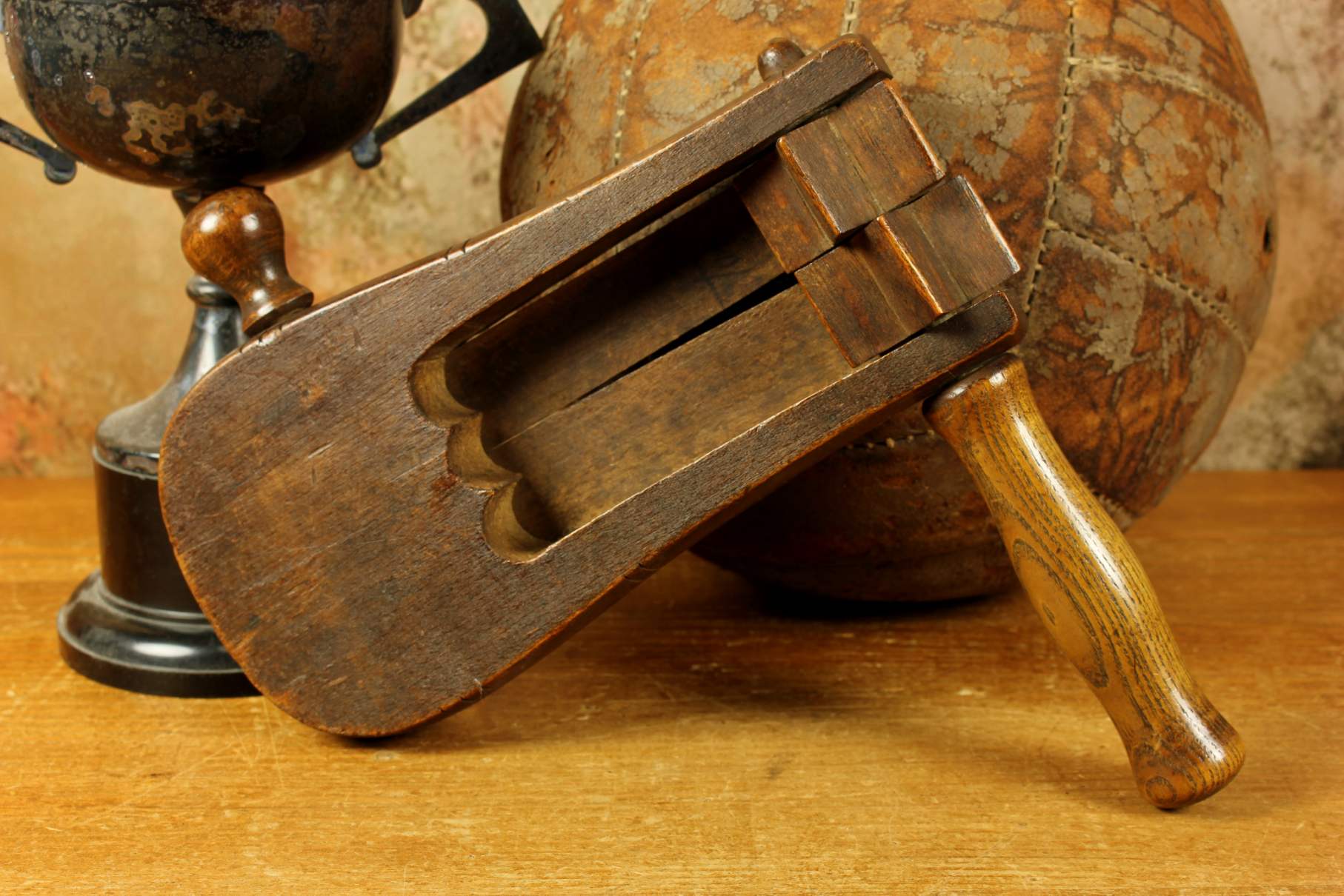 This Victorian wooden football rattle which has an extra loud double clacker is in full original working order and is marked with a museum type number so would most probably have been a museum show piece in the past.