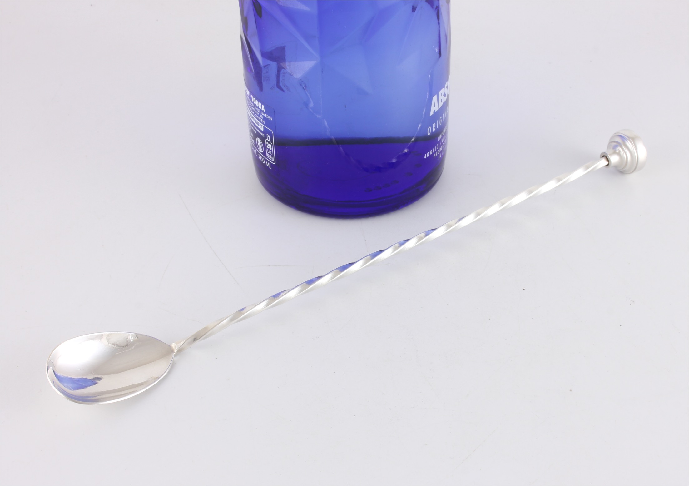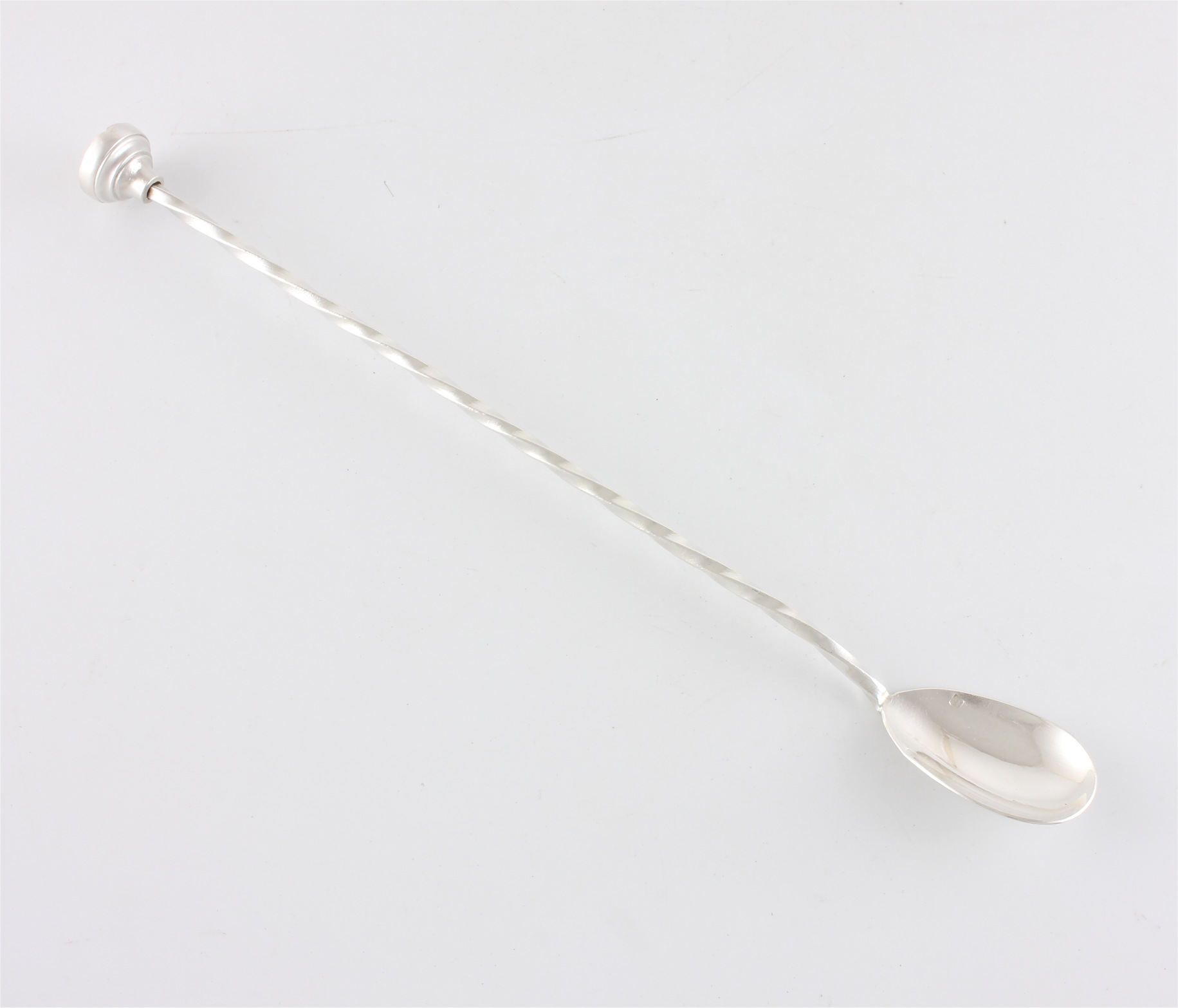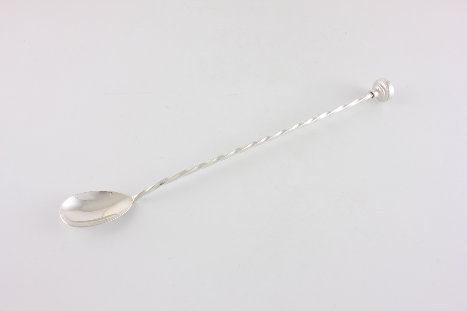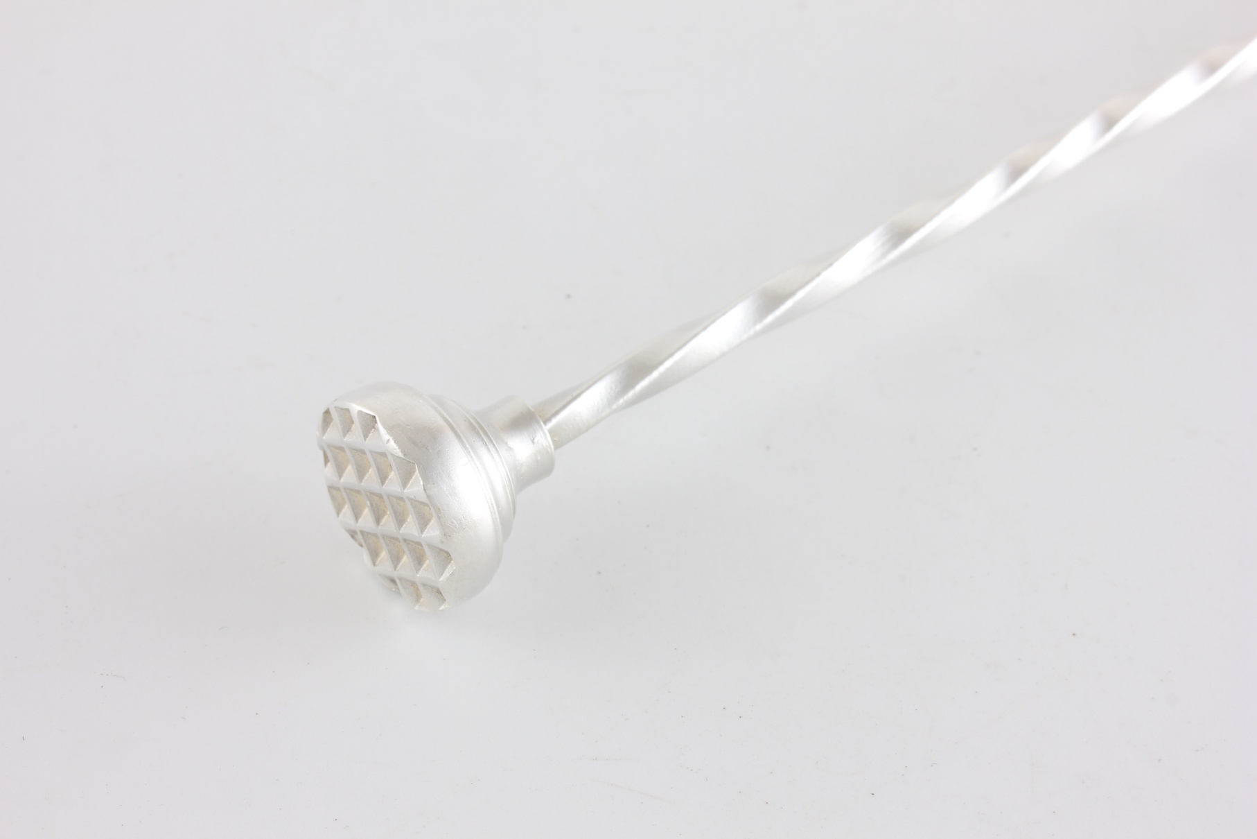 This French cocktail spoon has a twisted design with a large spoon to one end and a round muddler which has a criss-cross pattern at the other end for crushing your cocktail ingredients.