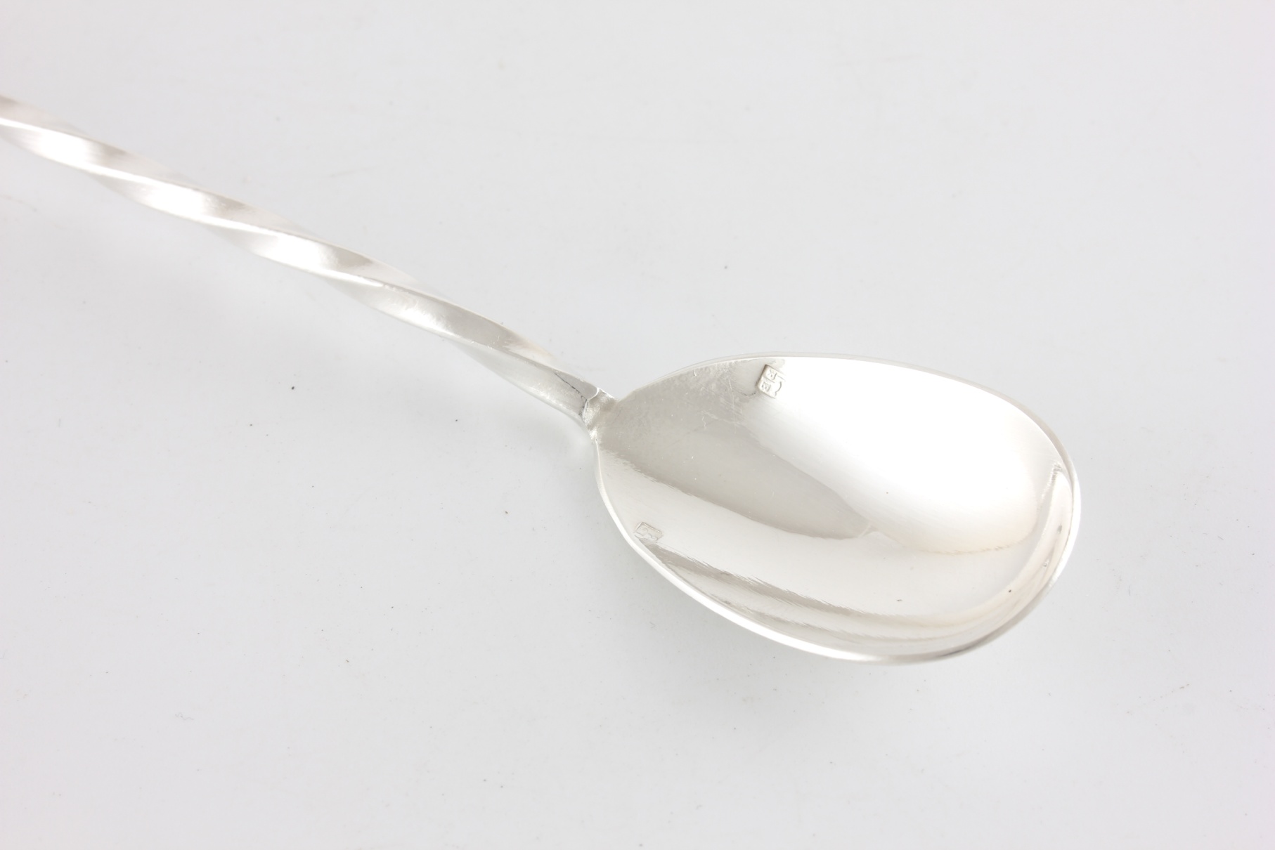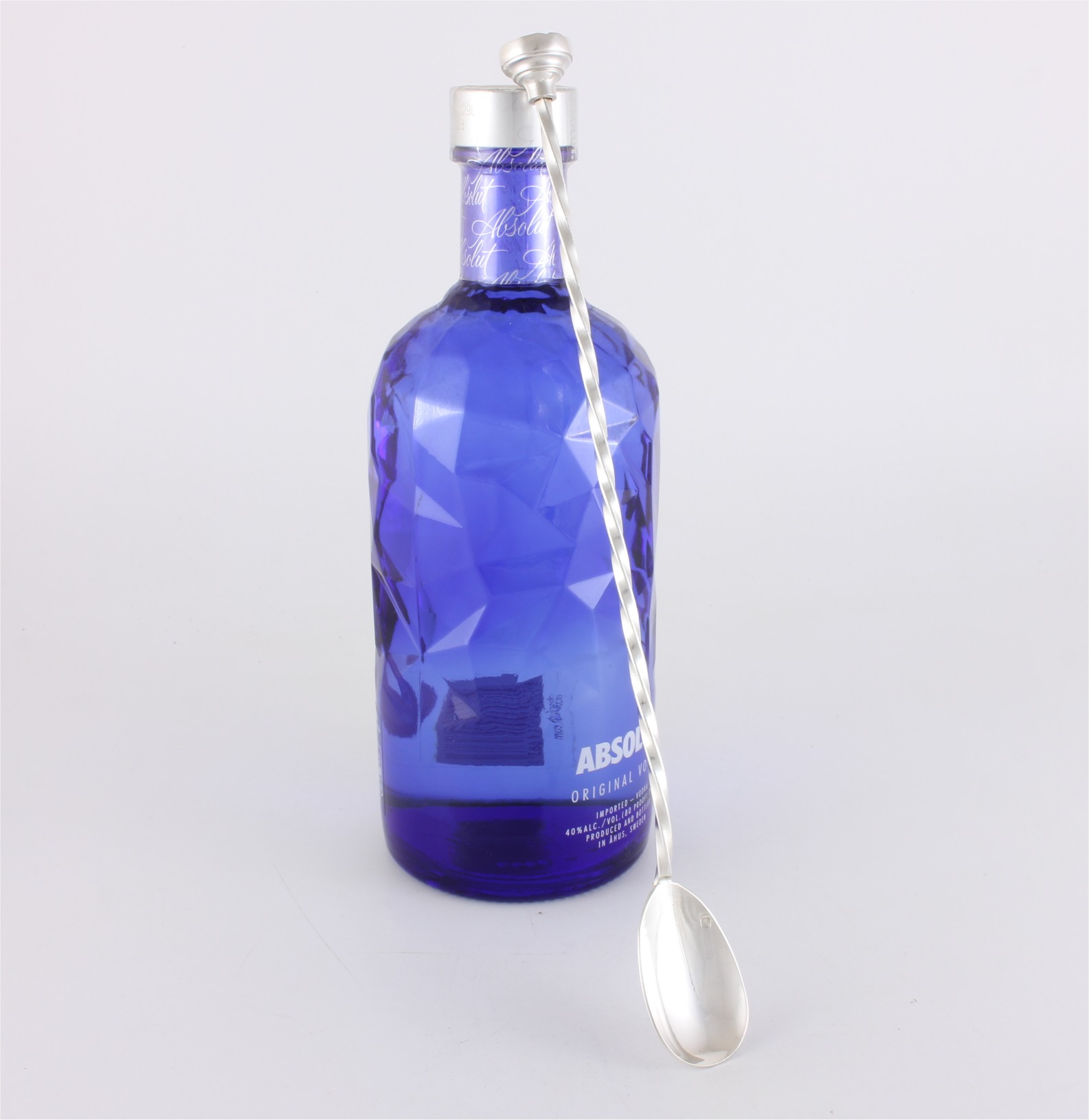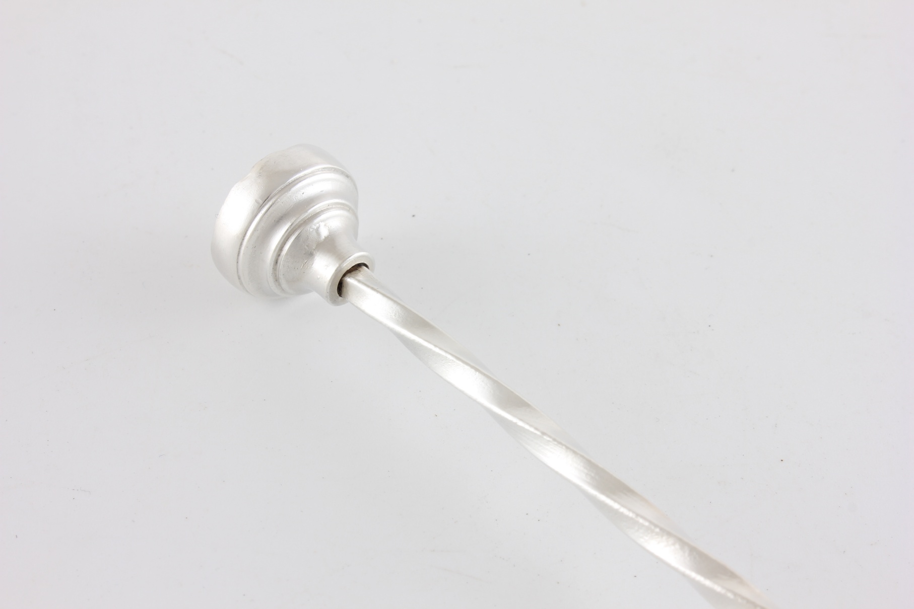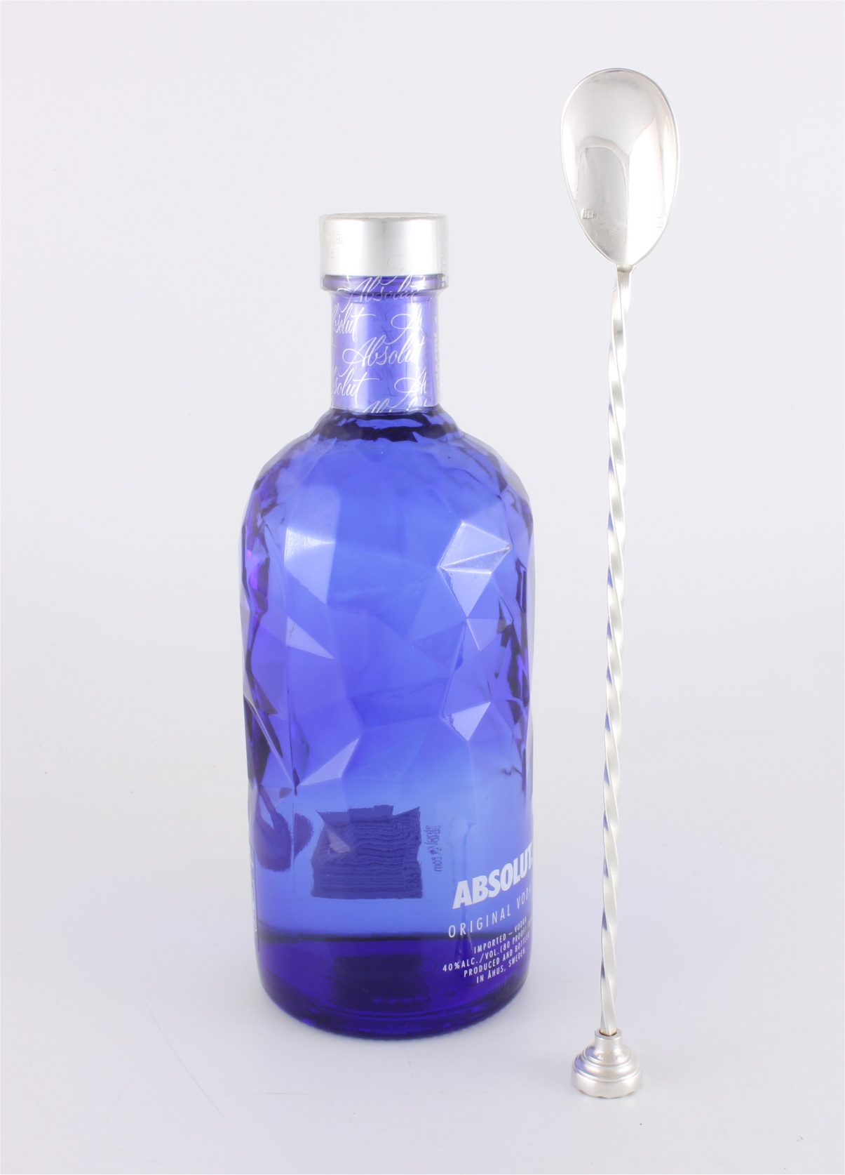 This French cocktail spoon has a twisted design with a large spoon to one end and a round muddler which has a criss-cross pattern at the other end for crushing your cocktail ingredients.