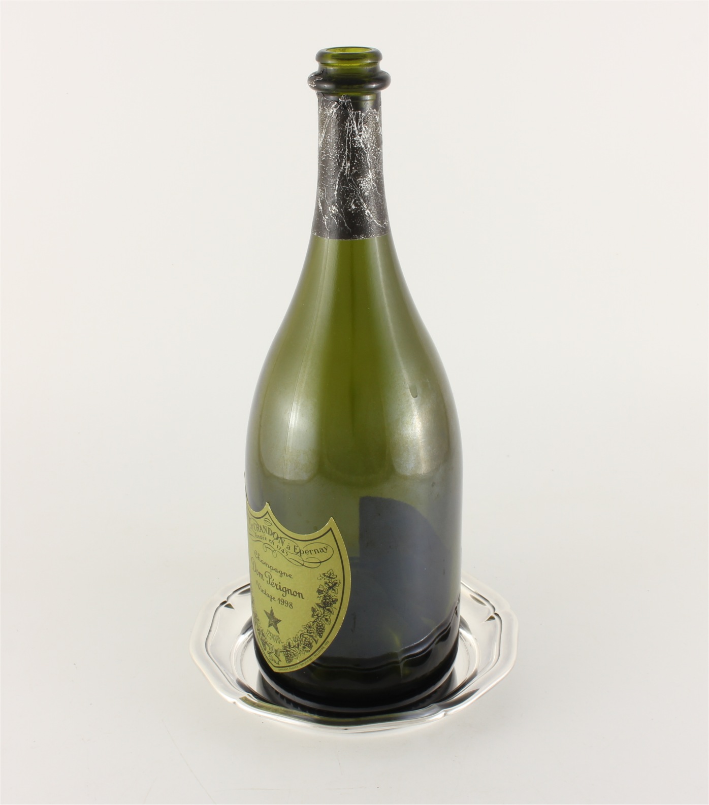 This fabulous antique Champagne / wine bottle coaster which is by top French silversmith Christofle is made of silver plate and is of very good quality.