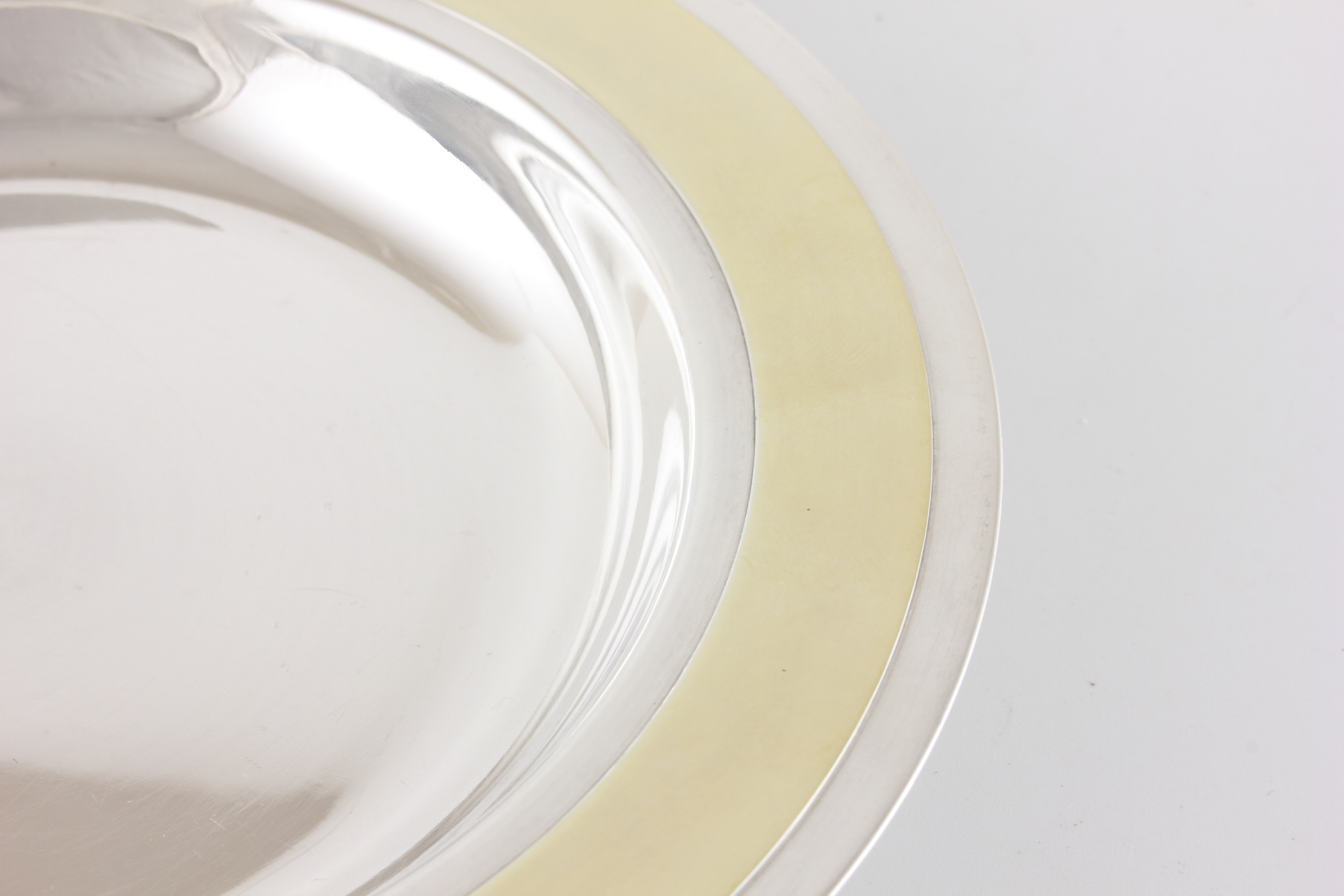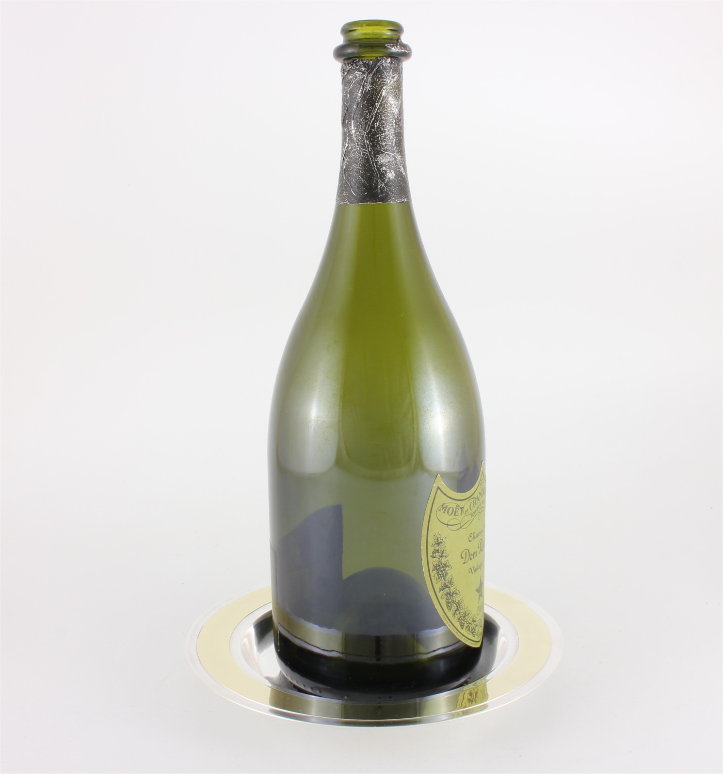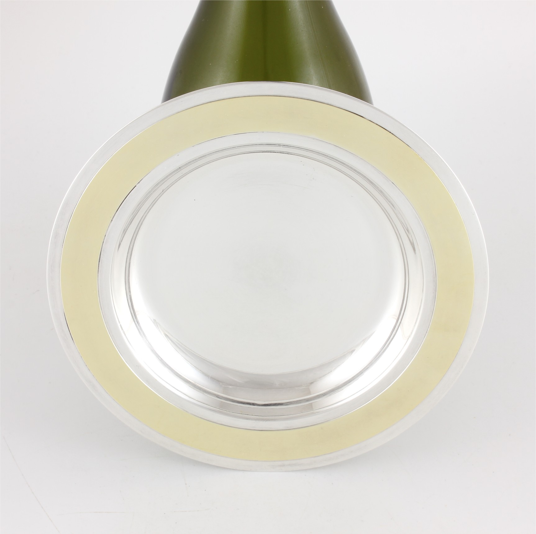 This fabulous vintage Champagne or wine bottle coaster which is by top French silversmith Christofle is made of silver plate with a gilt design around the top edge and is of fine quality.