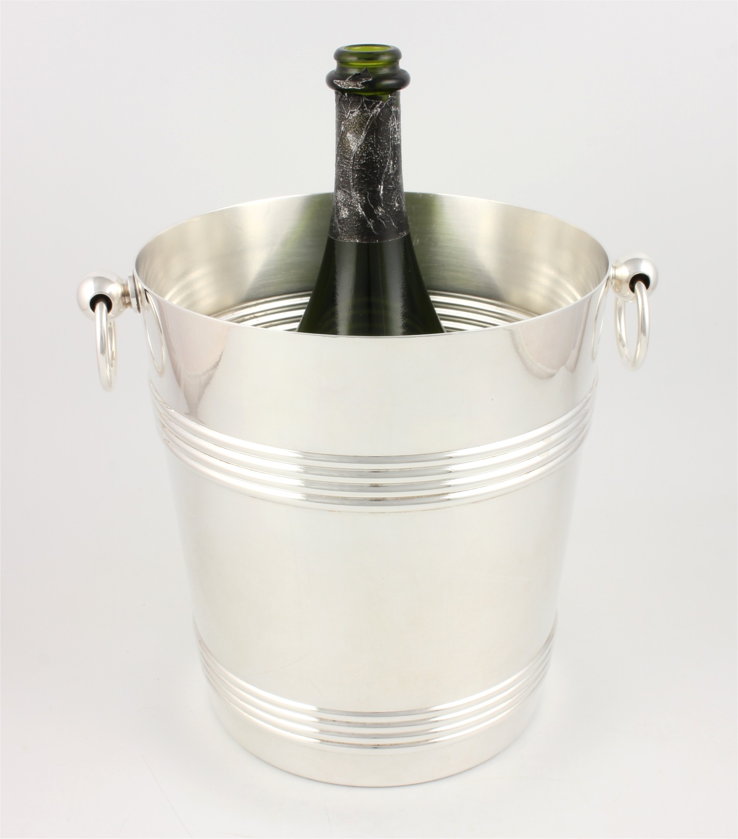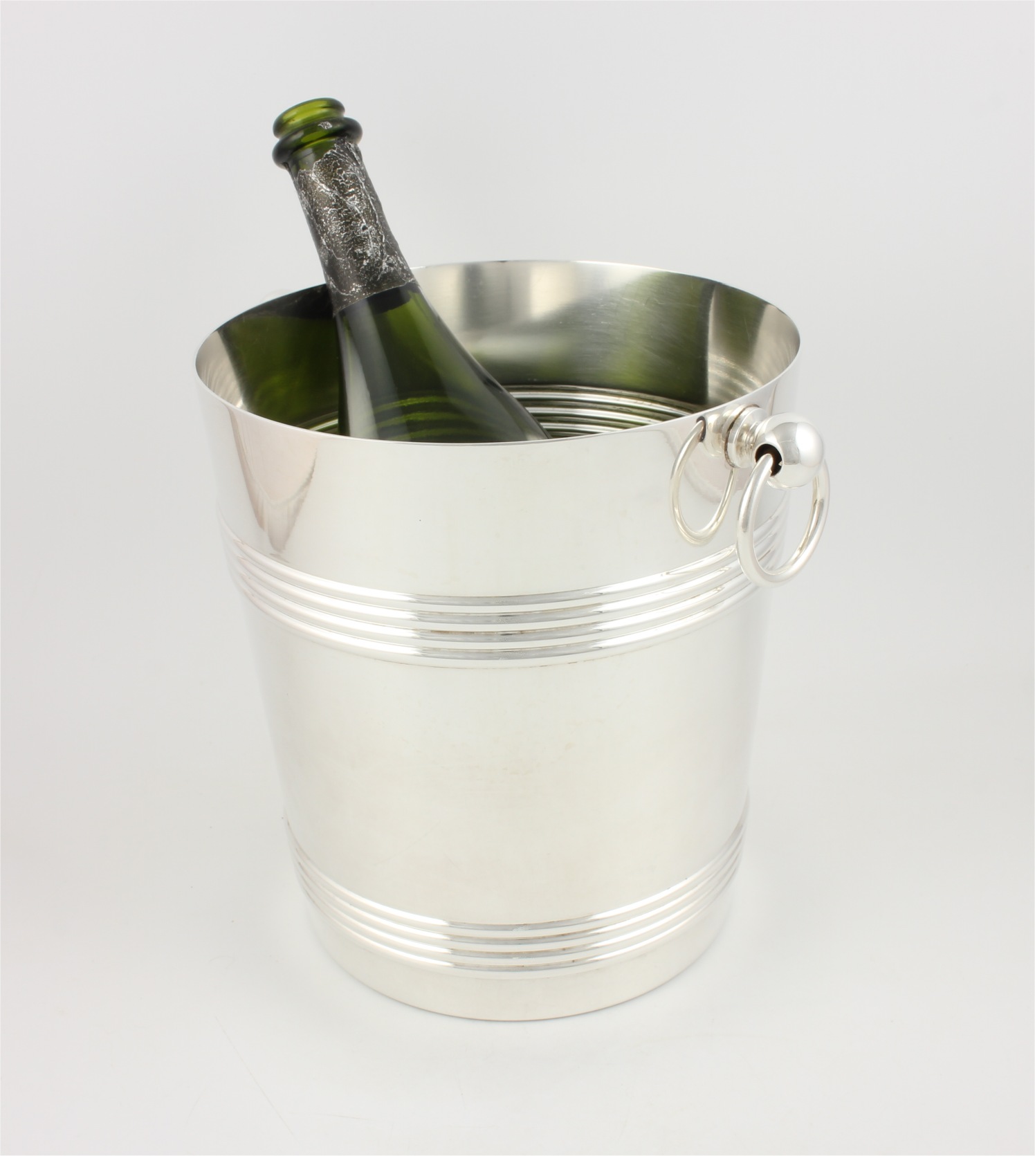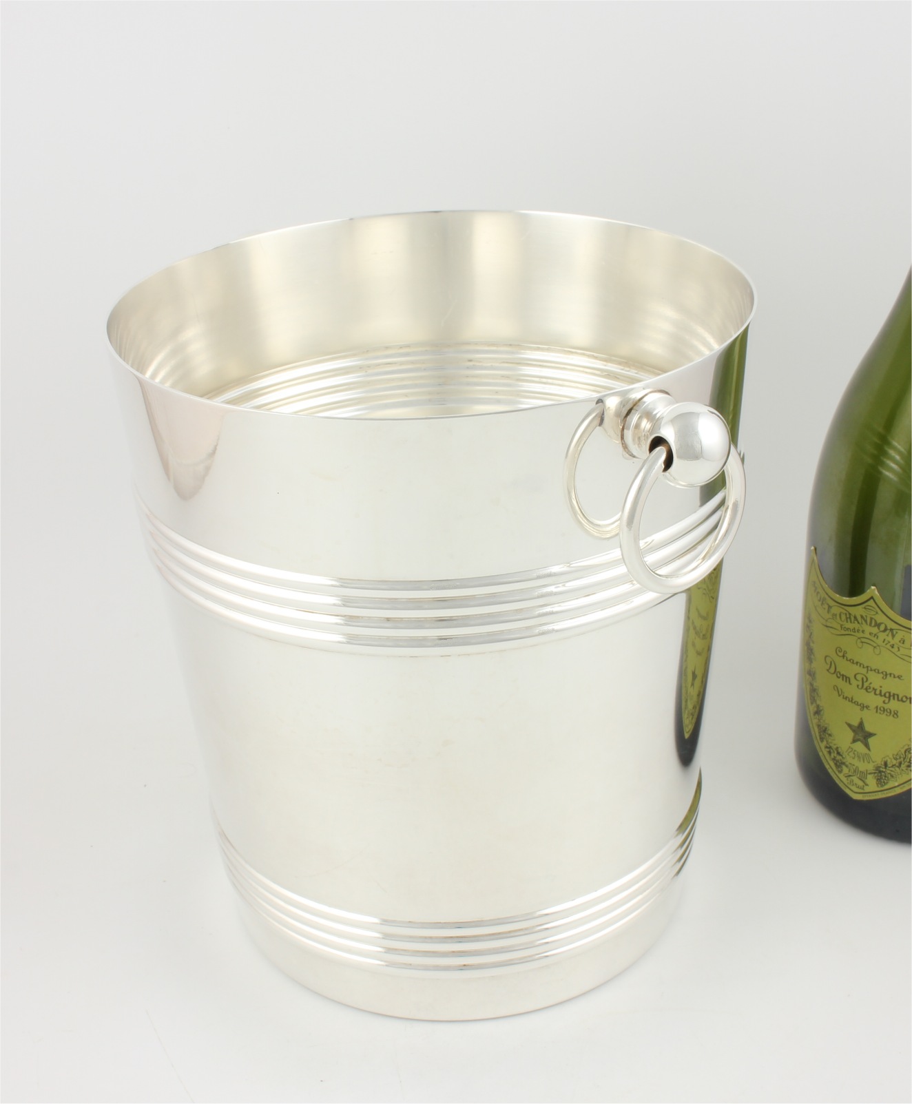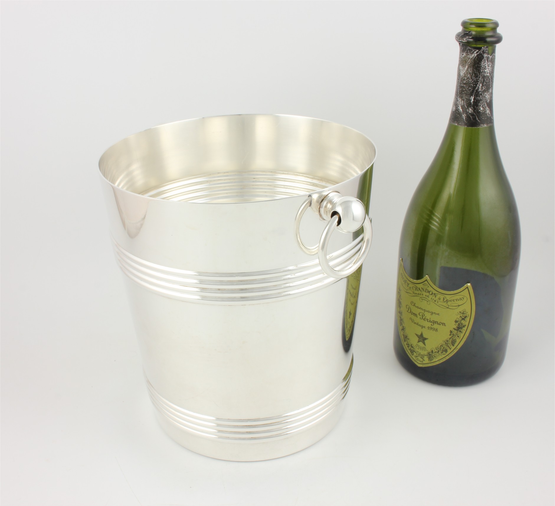 This vintage wine bucket has a stylish Art Deco design with ring decoration to the body, has stylish ring handles and is a good heavy weight. This Champagne cooler is signed to the underside with it's maker's marks and comes in a Christofle anti tarnish cloth storage bag.