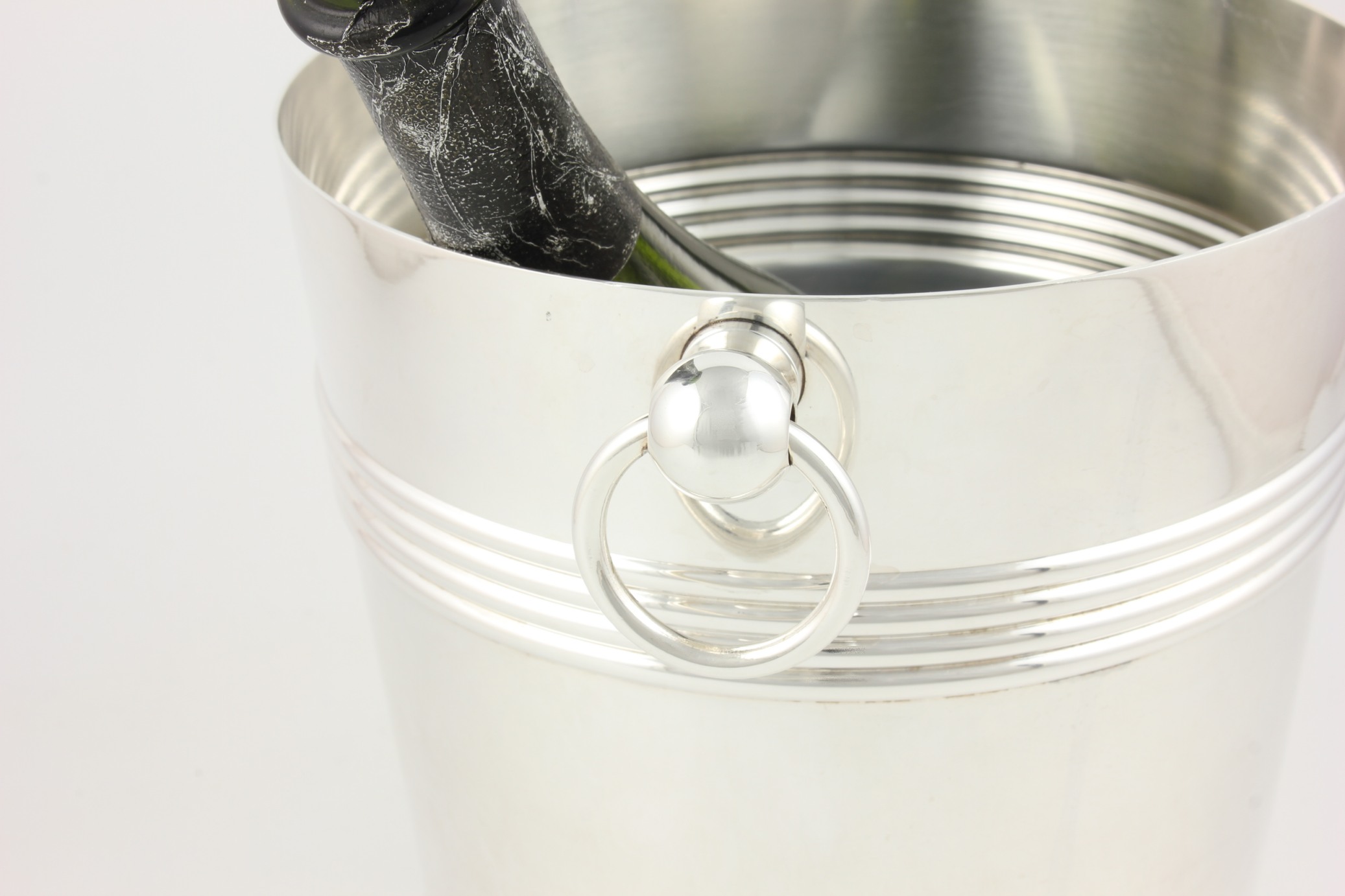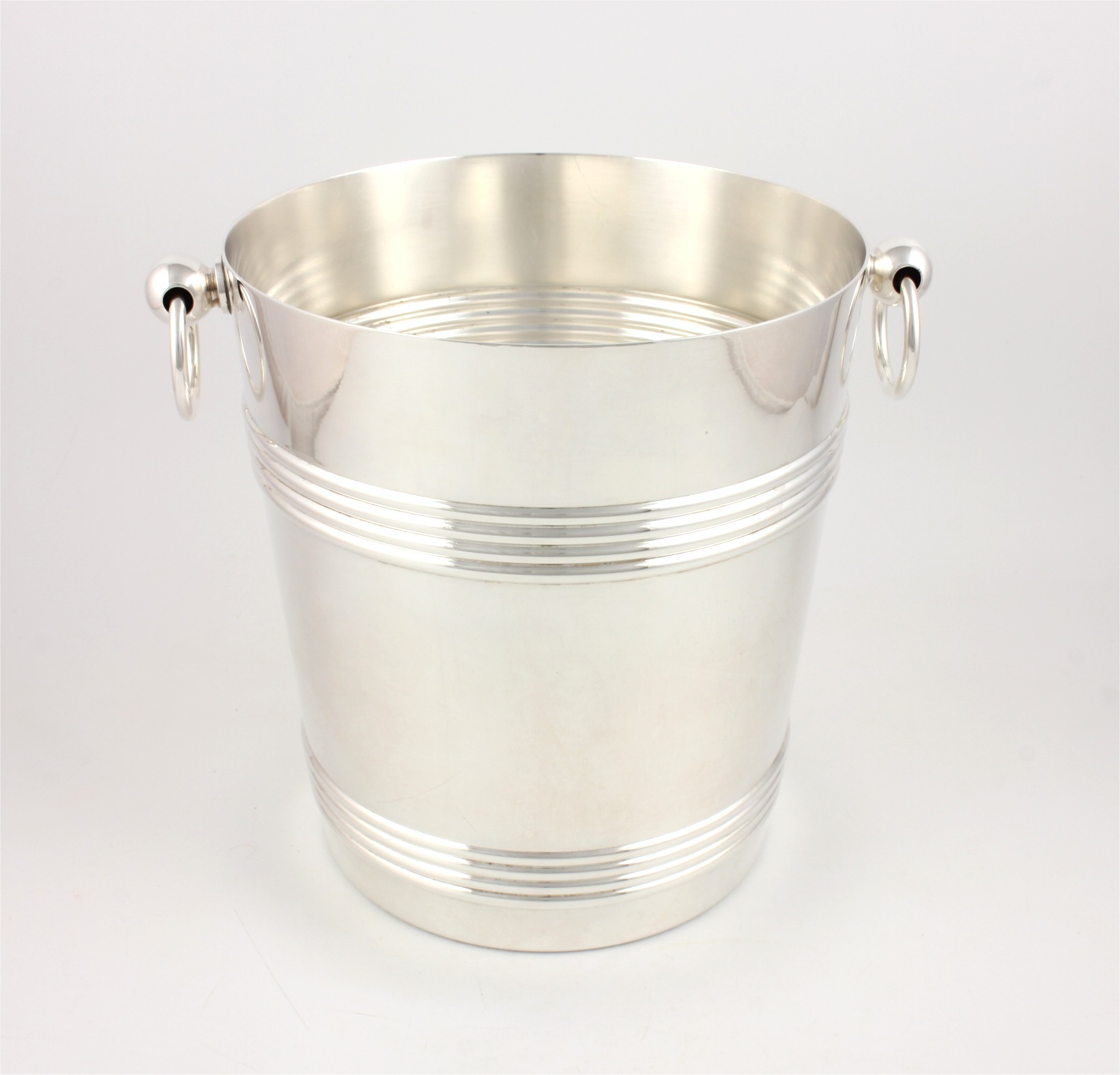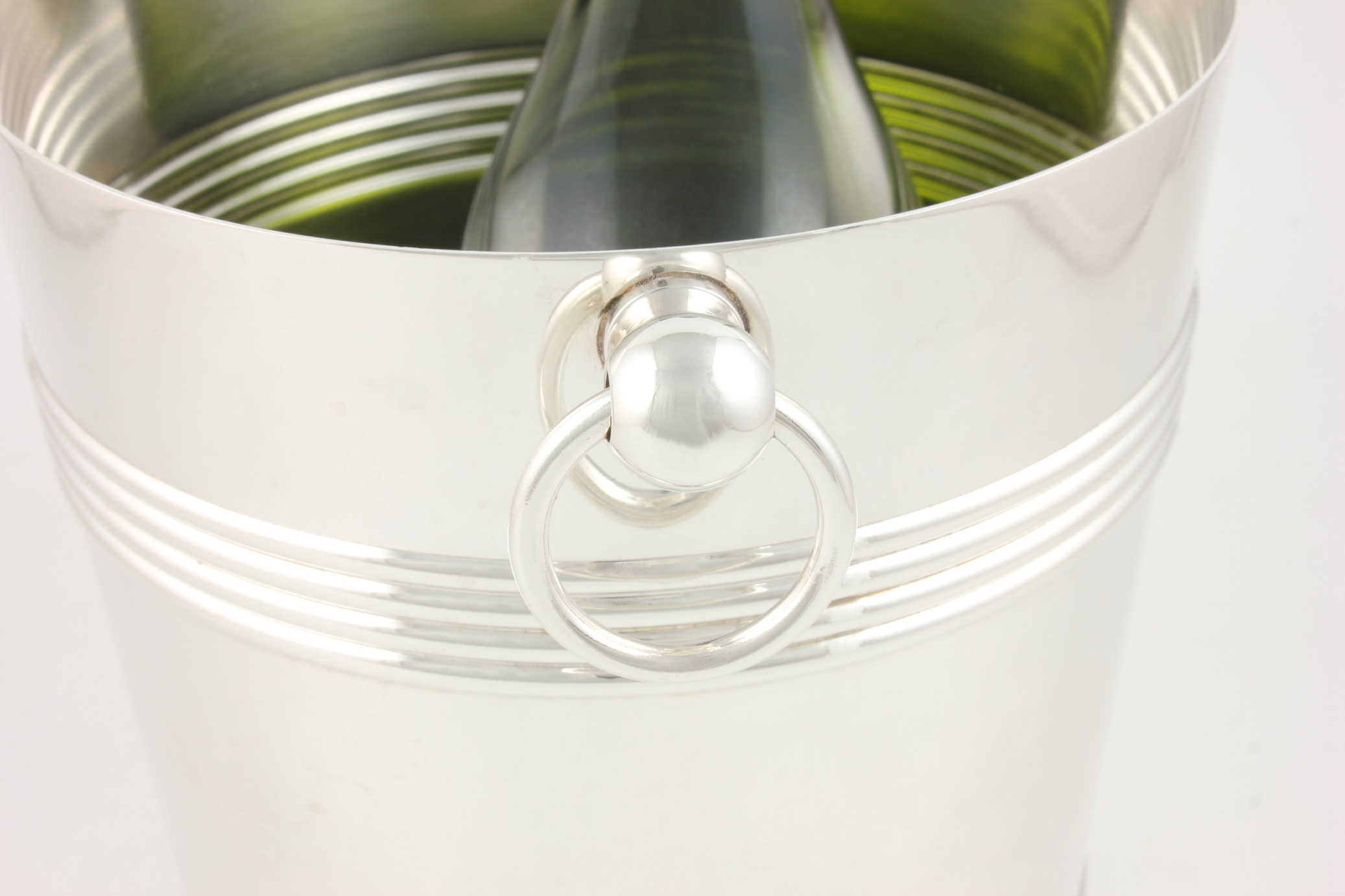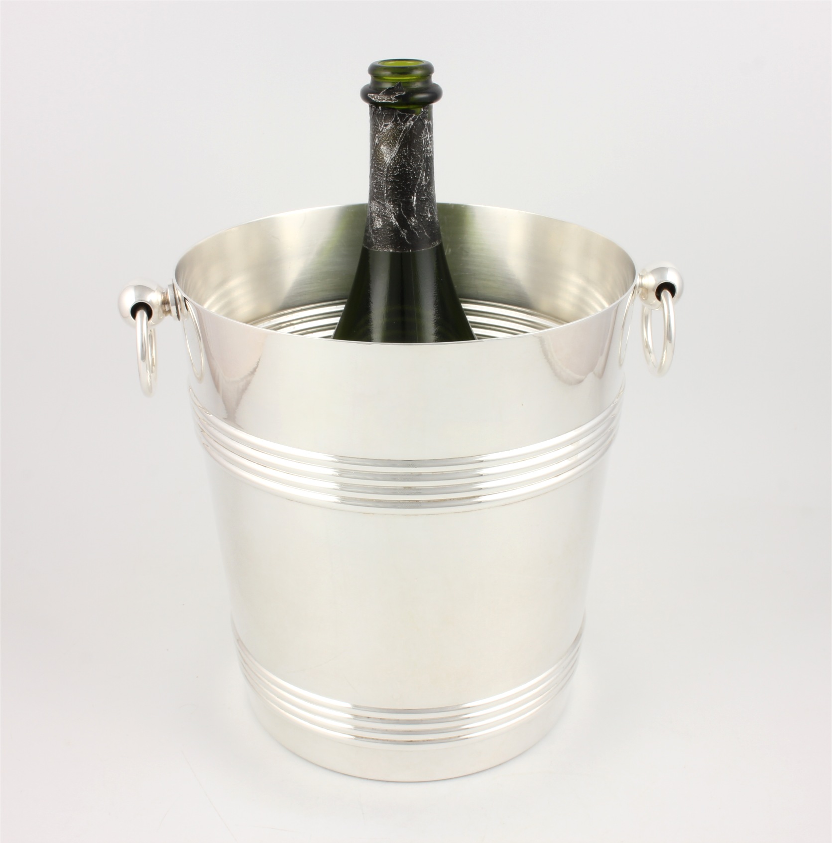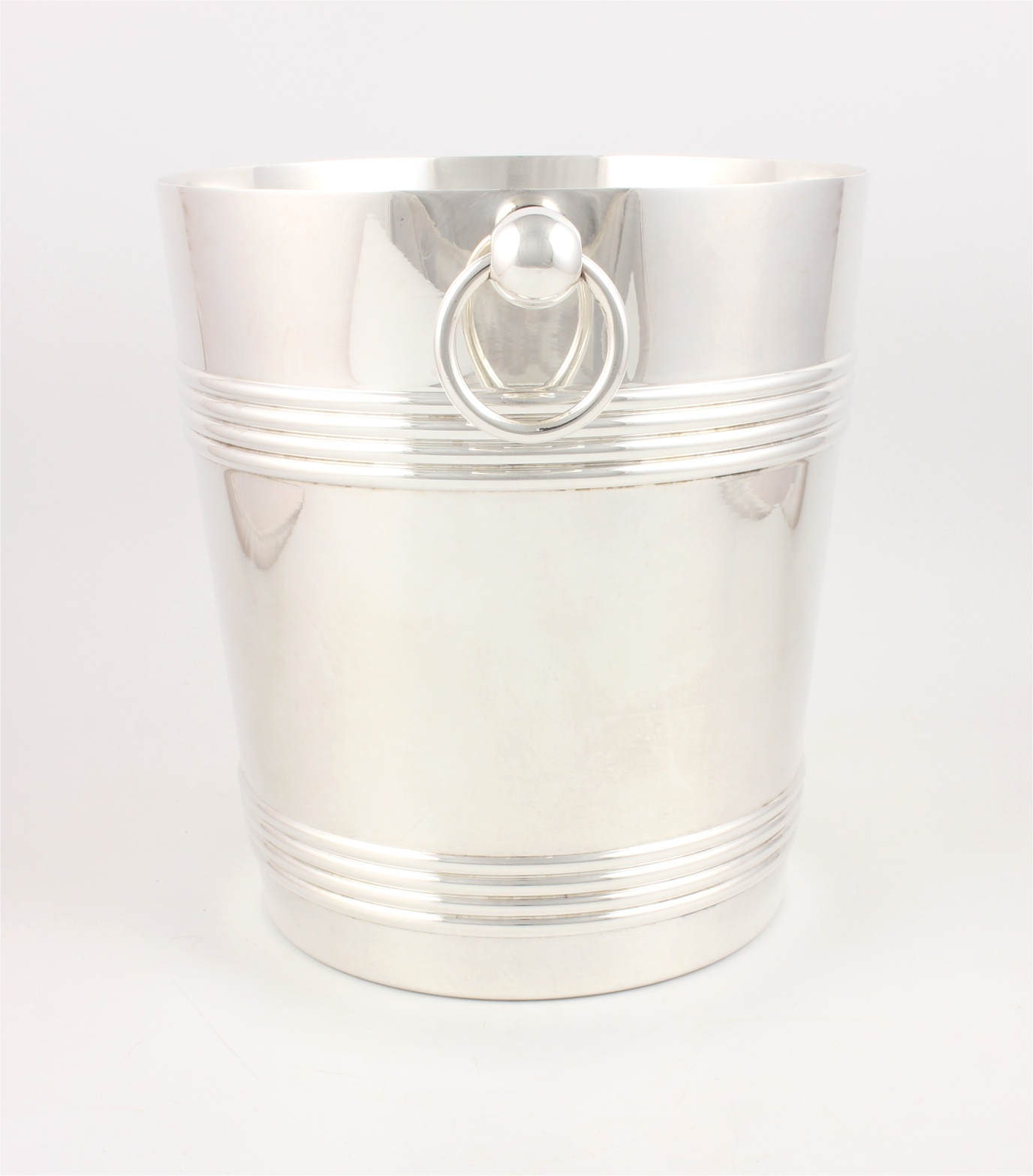 This vintage wine bucket has a stylish Art Deco design with ring decoration to the body, has stylish ring handles and is a good heavy weight. This Champagne cooler is signed to the underside with it's maker's marks and comes in a Christofle anti tarnish cloth storage bag.