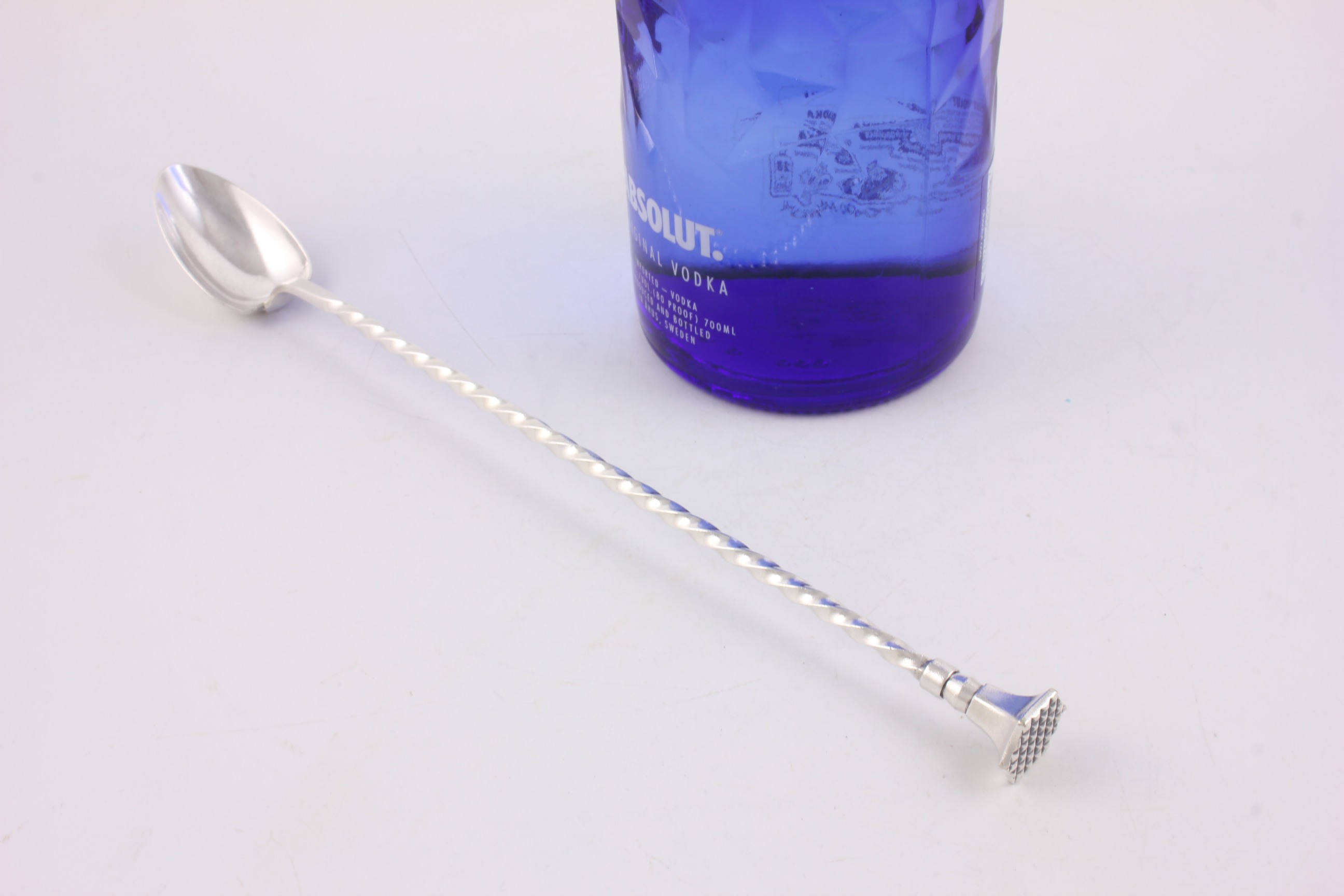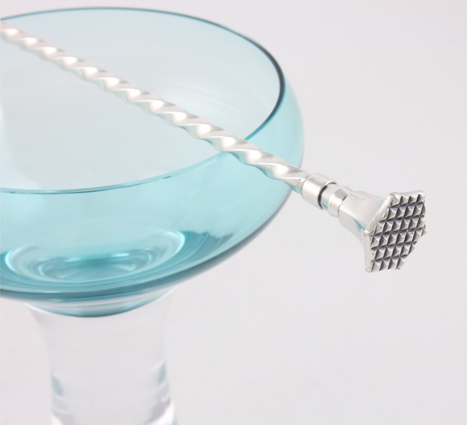 This long stirrer has a twisted design to the body with a large spoon to one end and a hexagonal muddler at the other end perfect for muddling and stirring your cocktail ingredients.