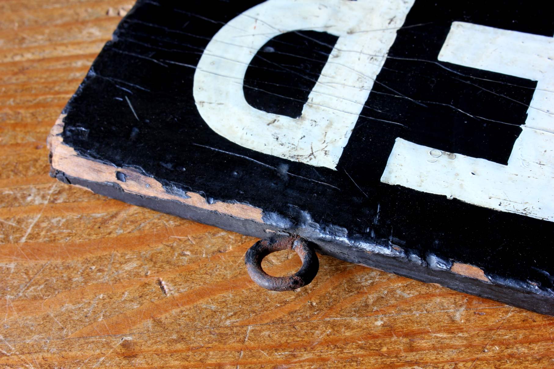This antique sign which has two hanging hoops can be hung from a wall and makes a wonderful decorative piece for the home, bar or restaurant. Also makes an ideal piece for a collector of railwayana.