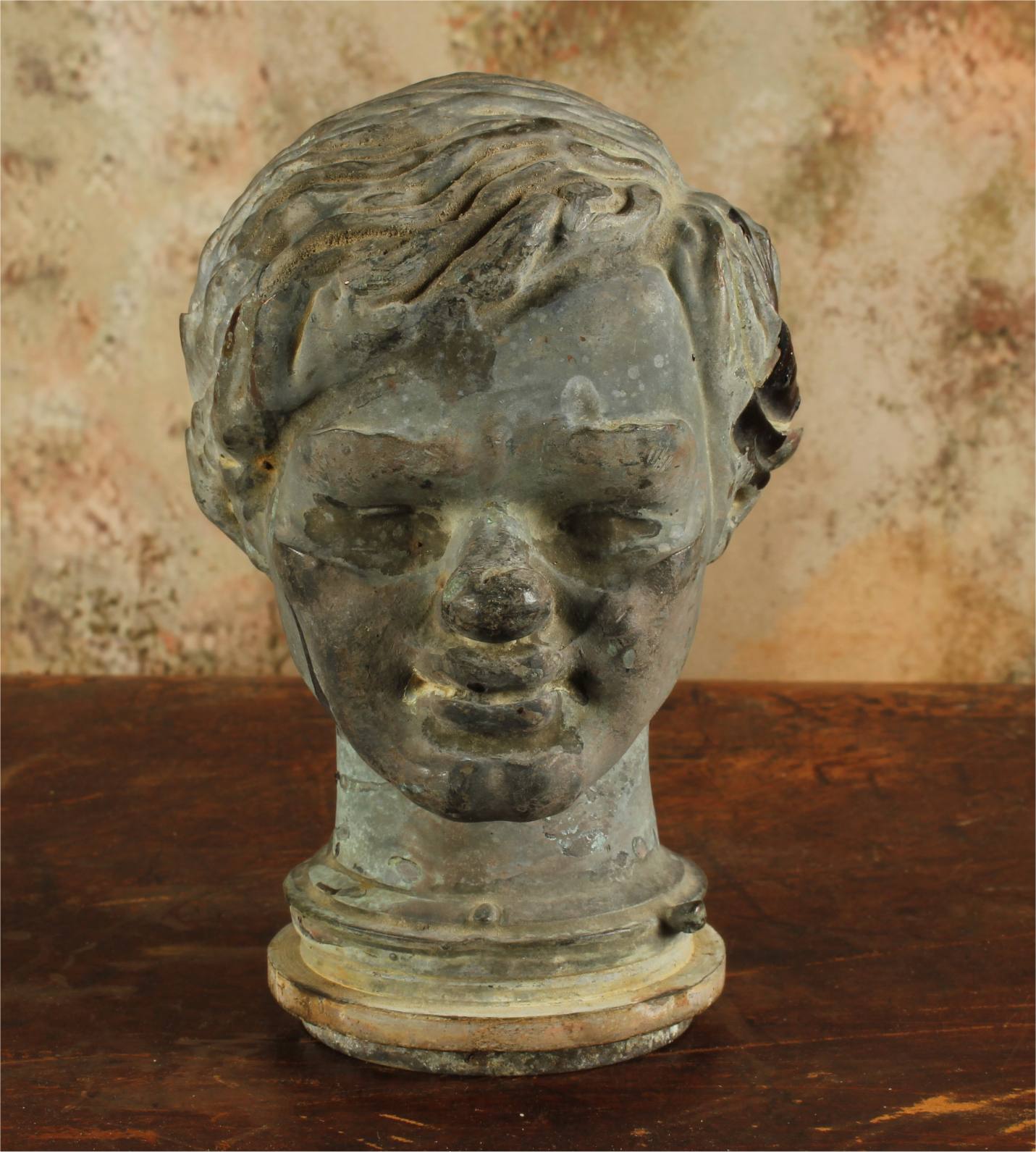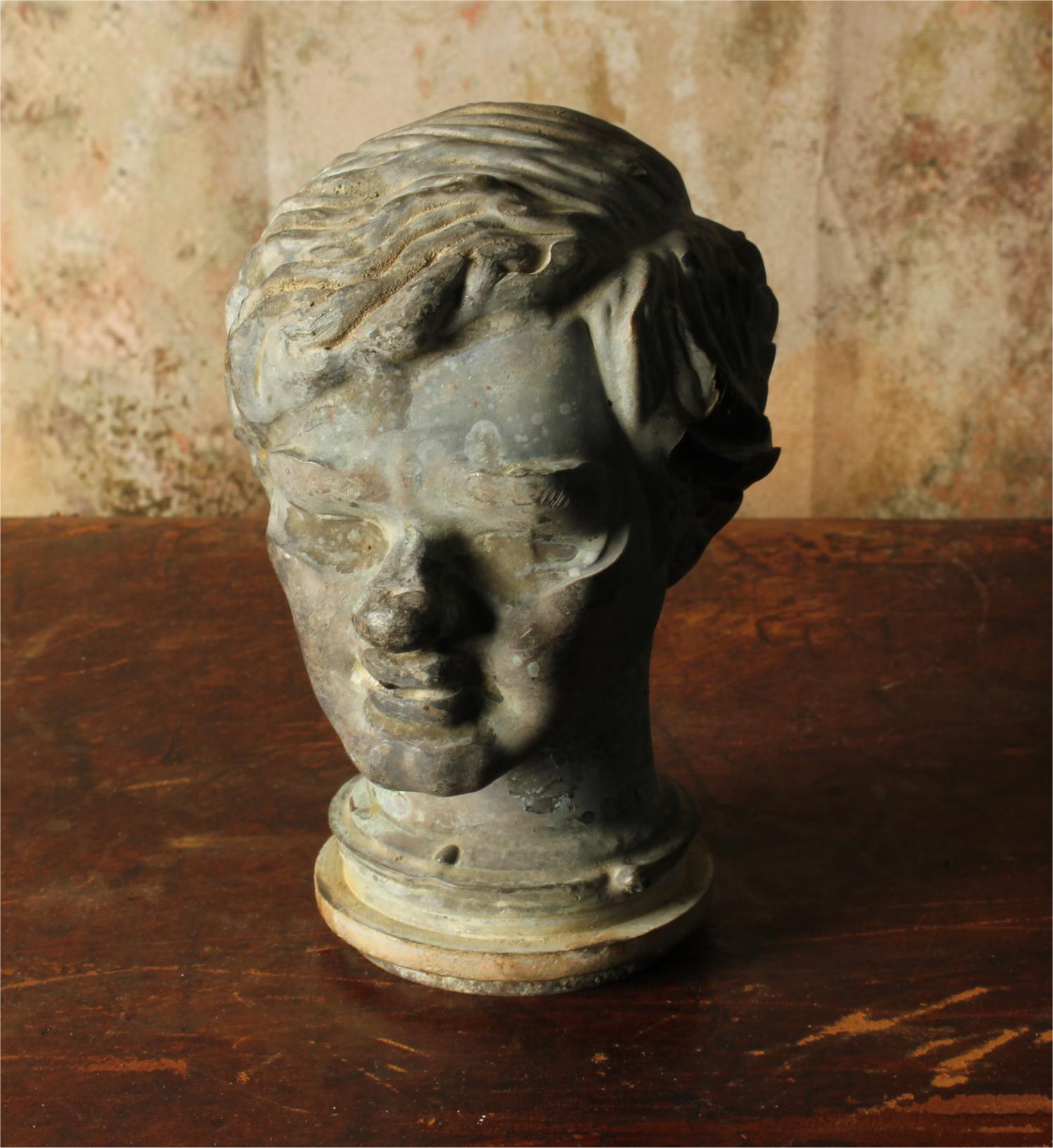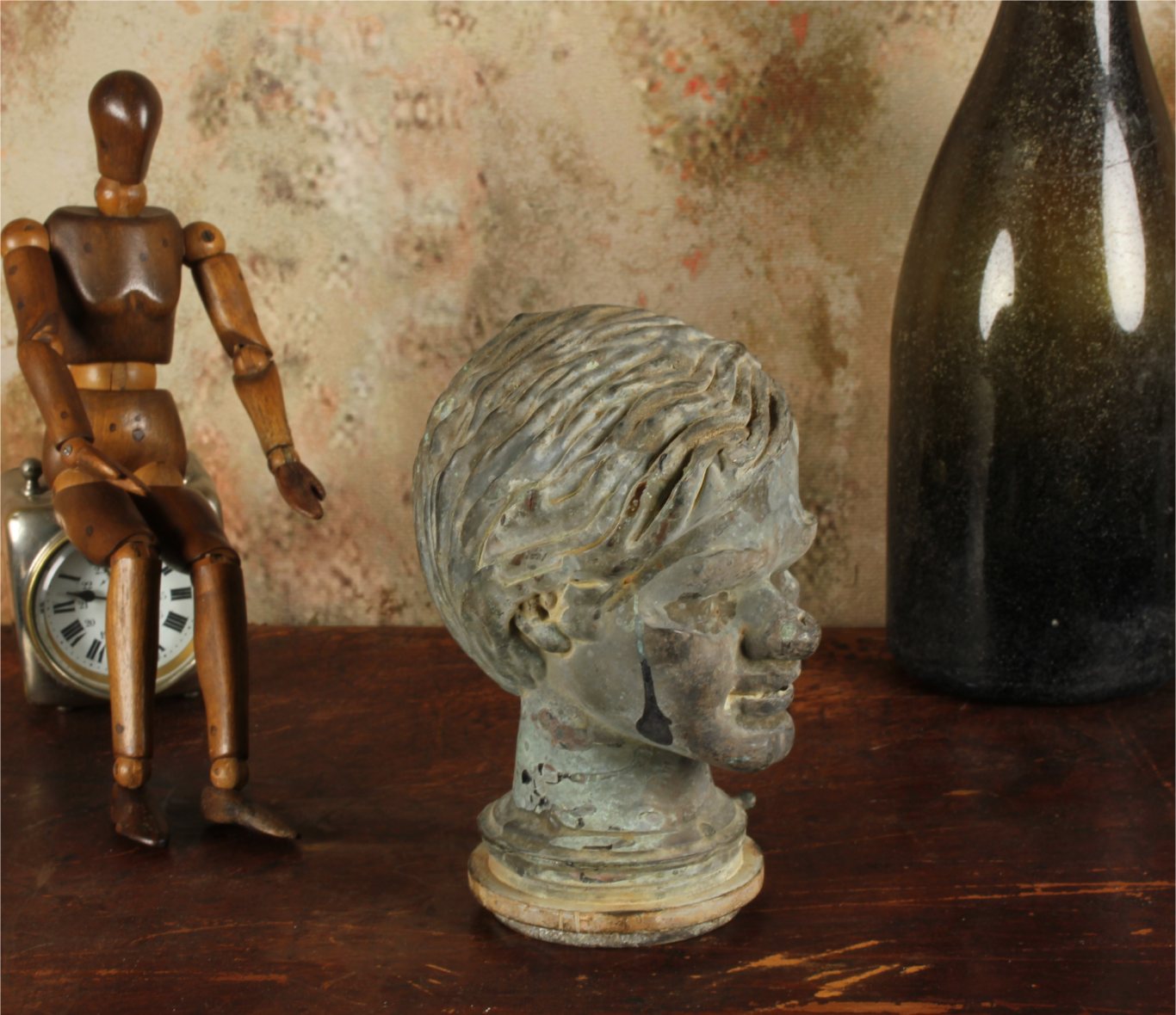 This fascinating vintage head mould which is unusual being of a male dates from the mid 20th century, is made of copper and came from Bella Doll factory in Perpignan, France.