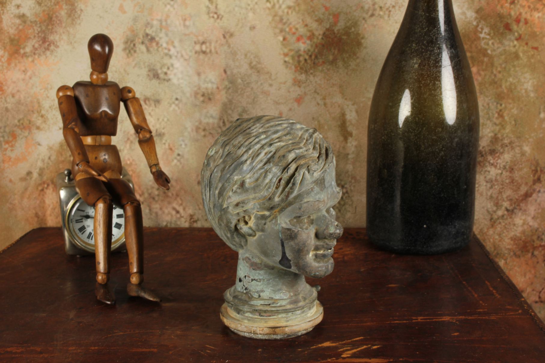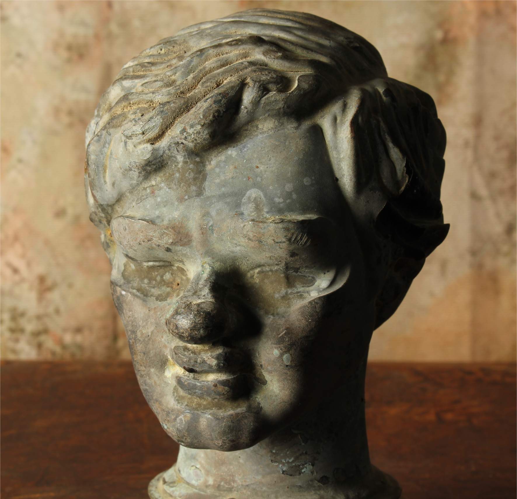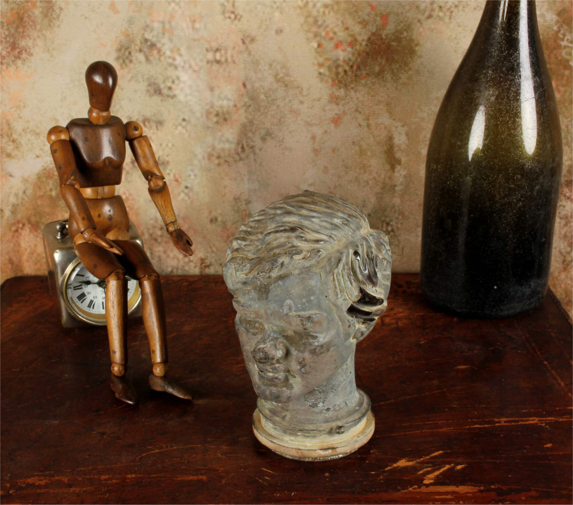This fascinating vintage head mould which is unusual being of a male dates from the mid 20th century, is made of copper and came from Bella Doll factory in Perpignan, France.