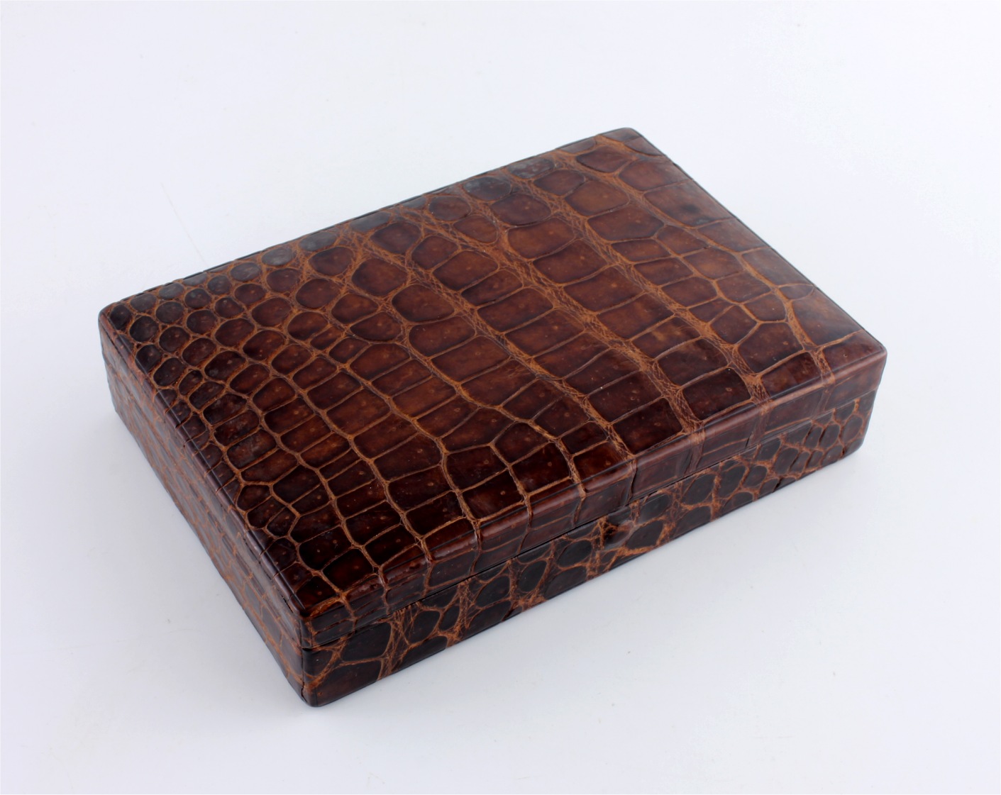 This handsome antique croc leather jewellery case which is by top leather goods maker Drew & Sons of Piccadilly Circus London, dates from c1900 and has a rich brown colour and patina.