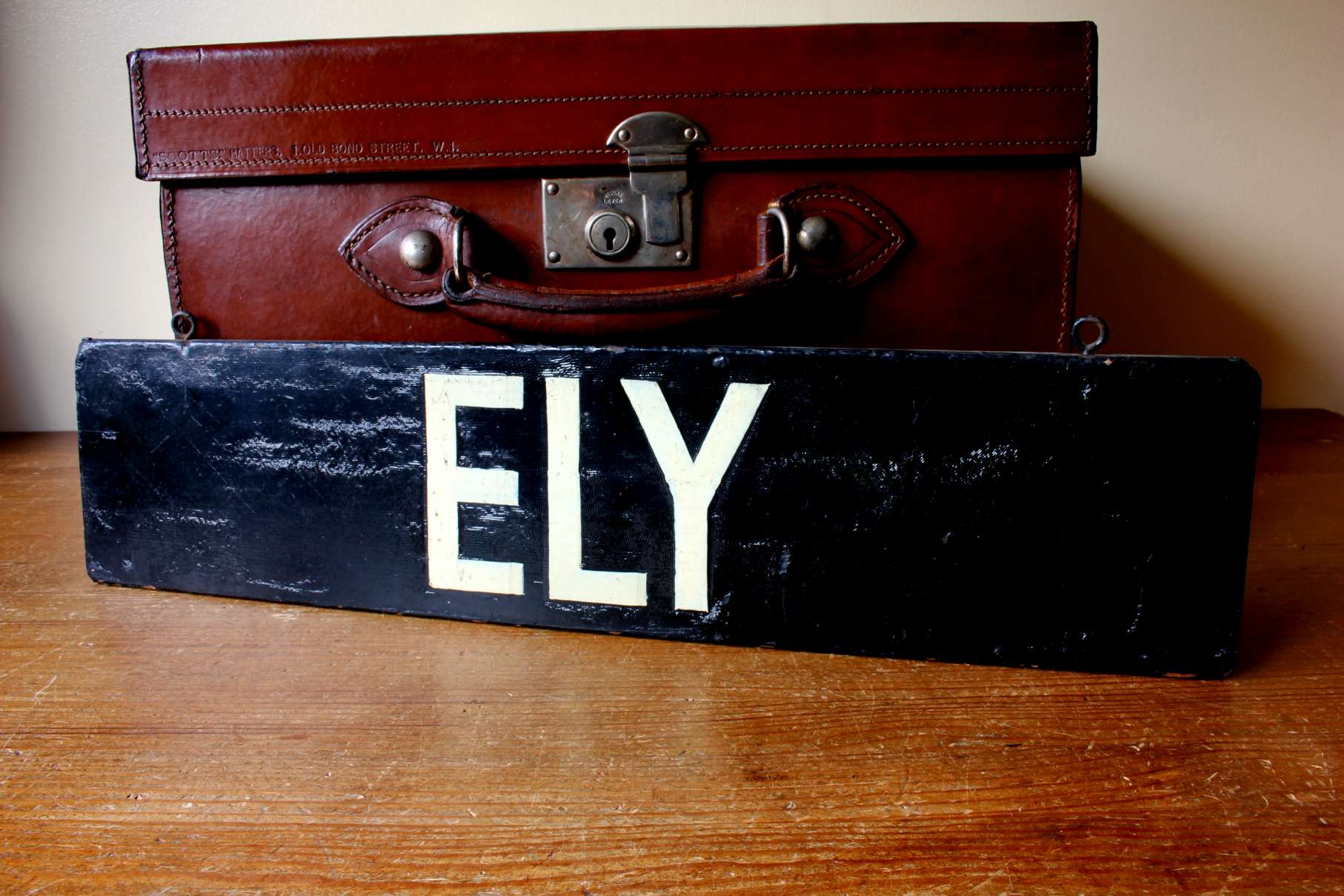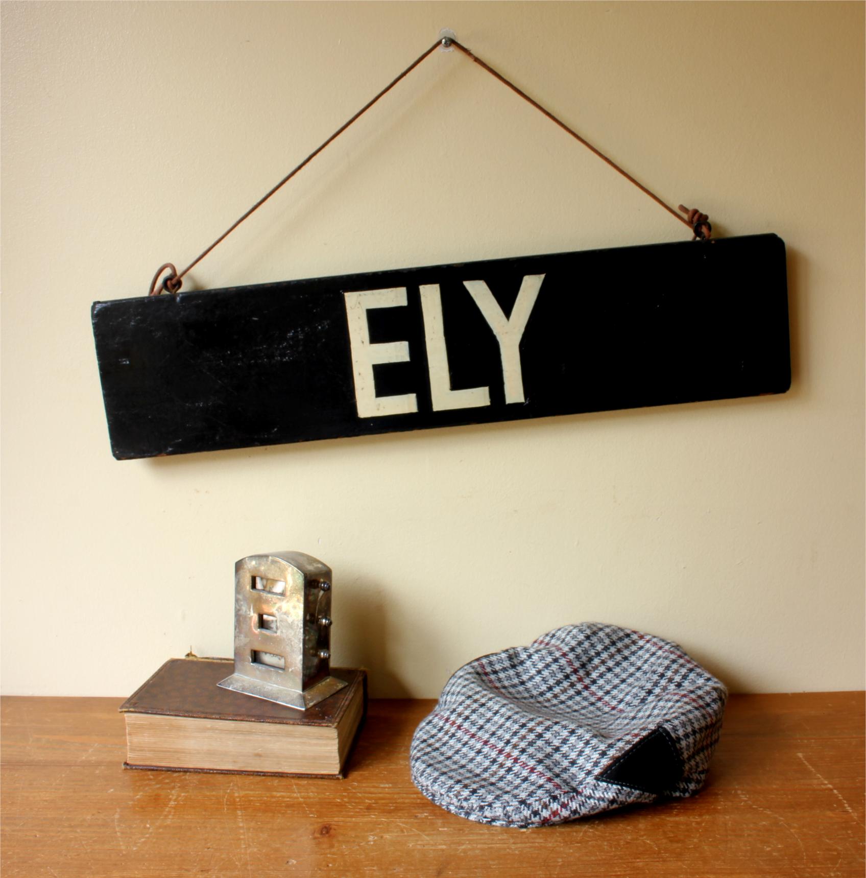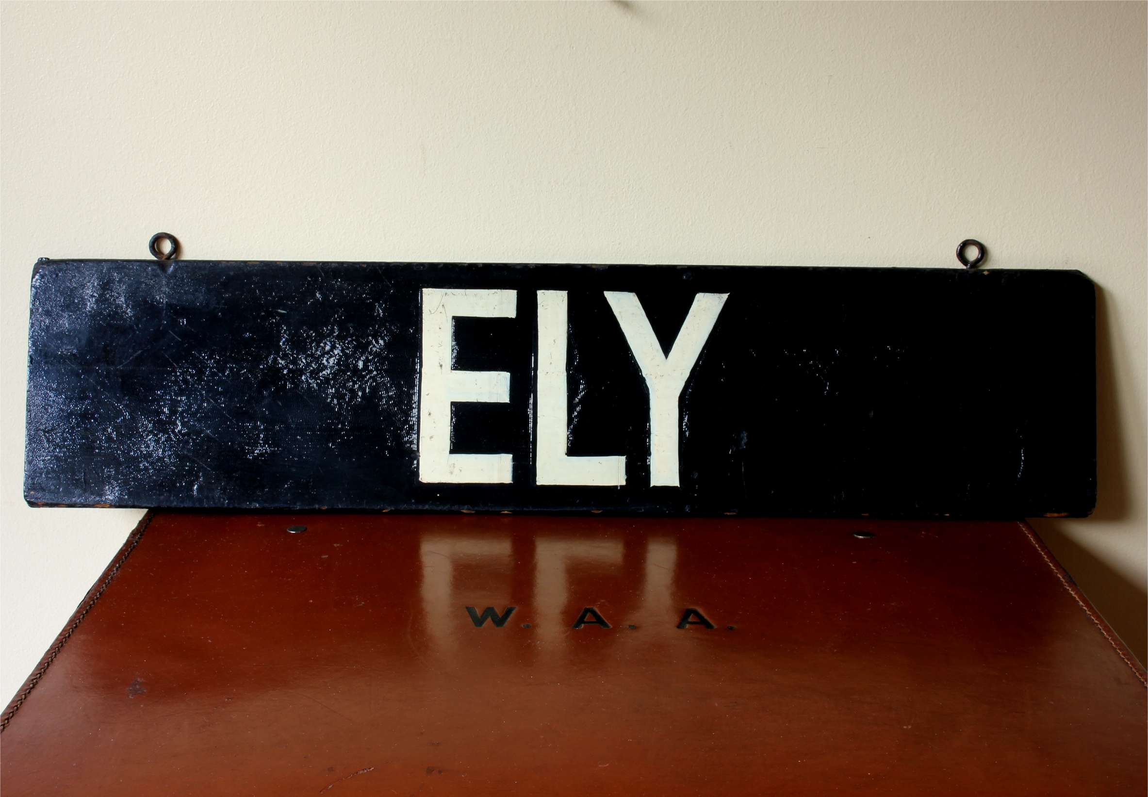 This original train station sign which dates from around the 1930's came from Liverpool Street Station, is made of wood and has a black background with the name of the destination station Ely in hand painted lettering to one side.