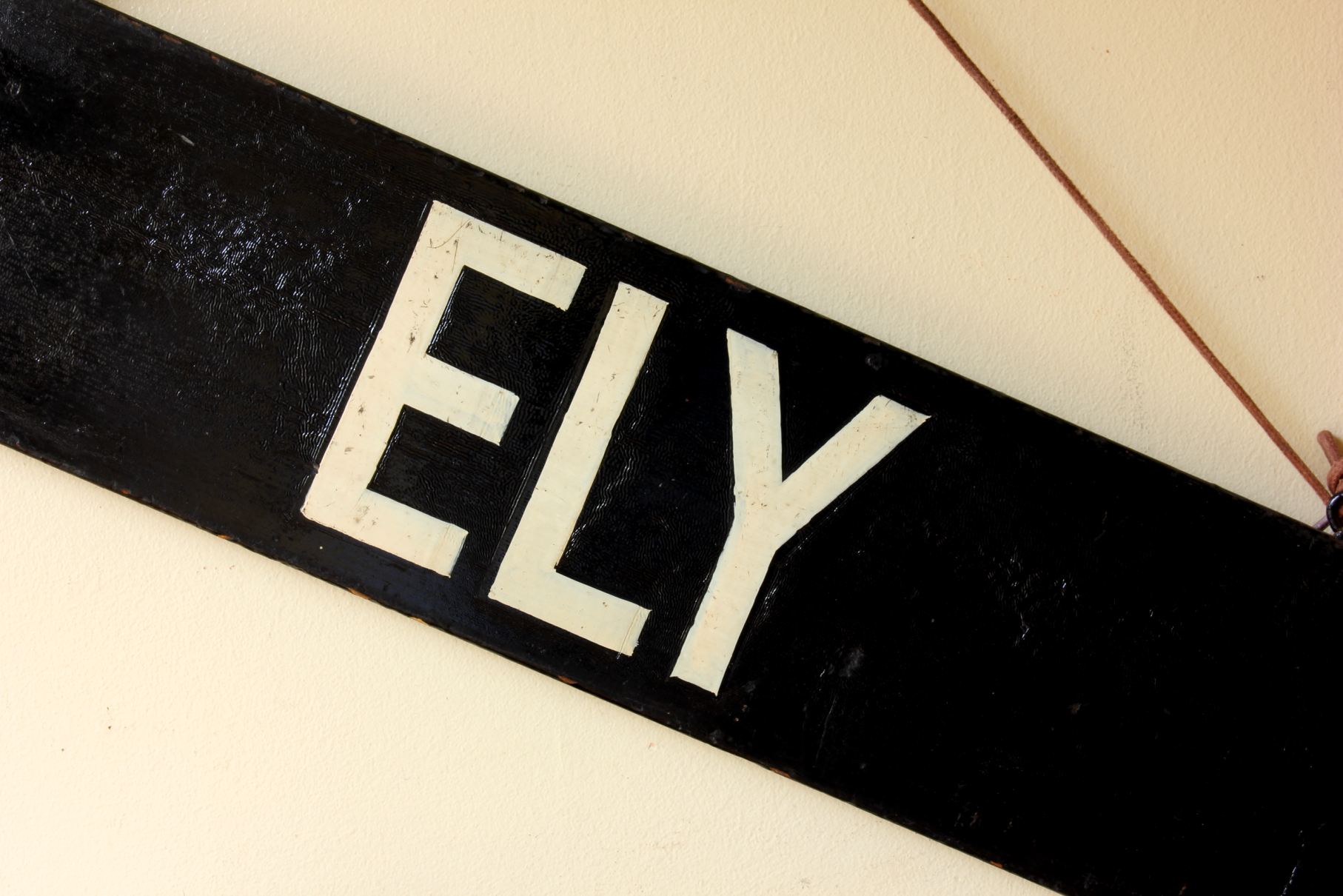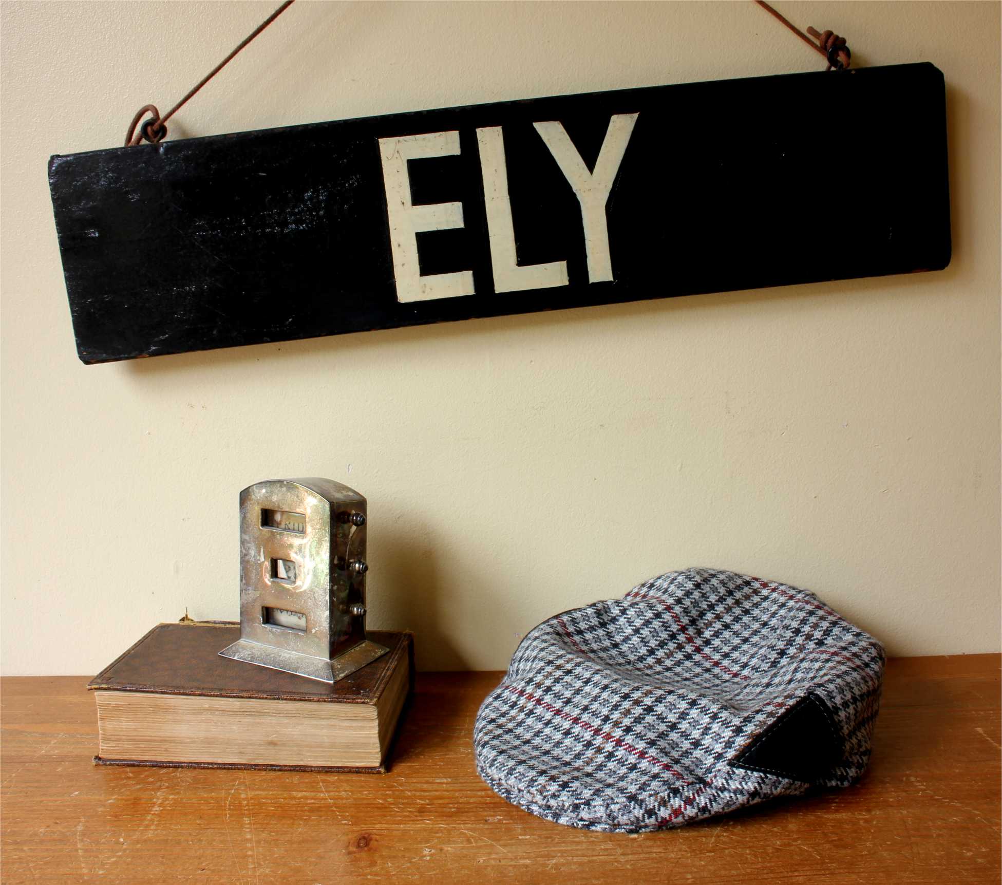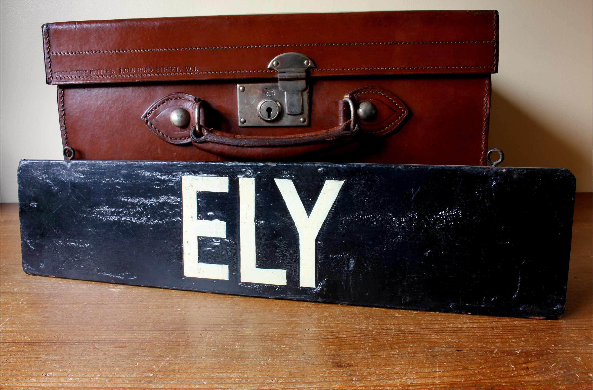 This original train station sign which dates from around the 1930's came from Liverpool Street Station, is made of wood and has a black background with the name of the destination station Ely in hand painted lettering to one side.