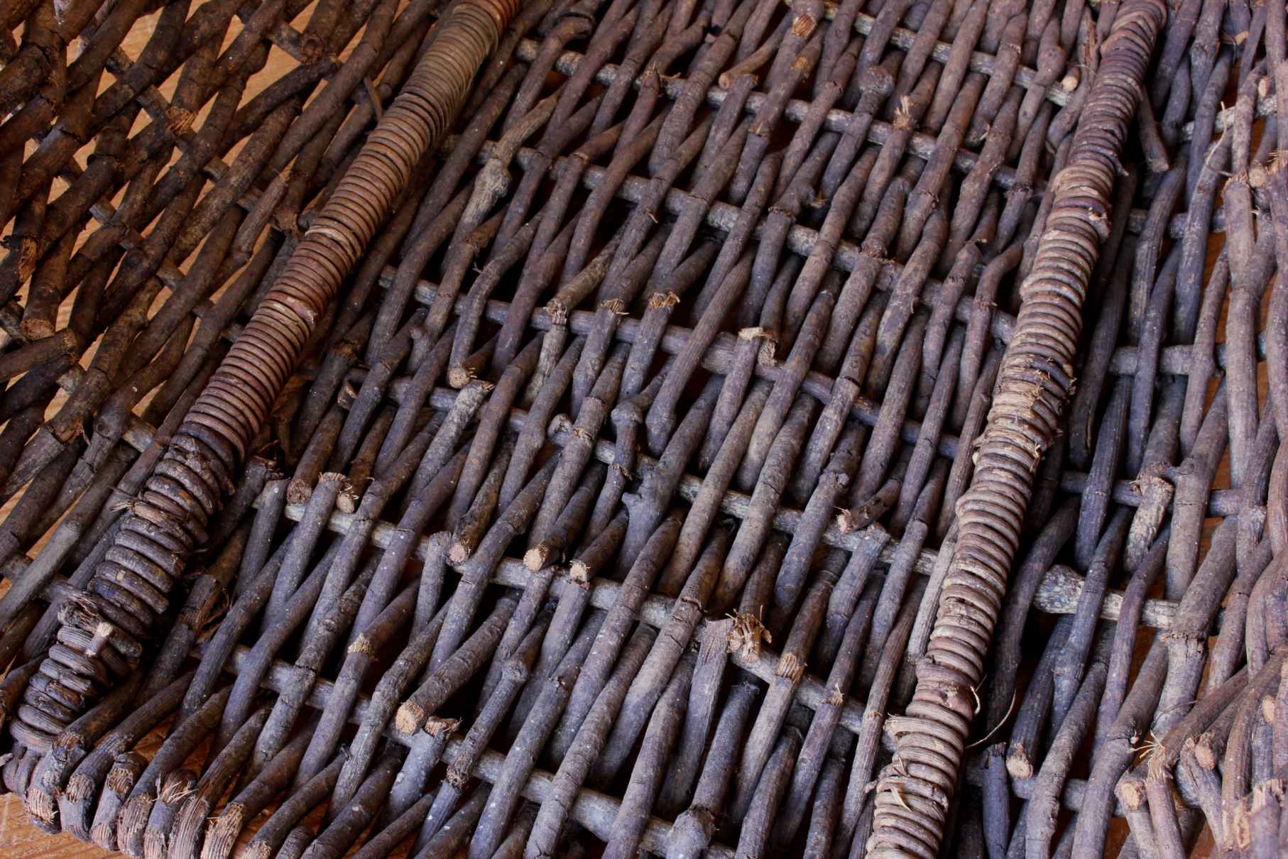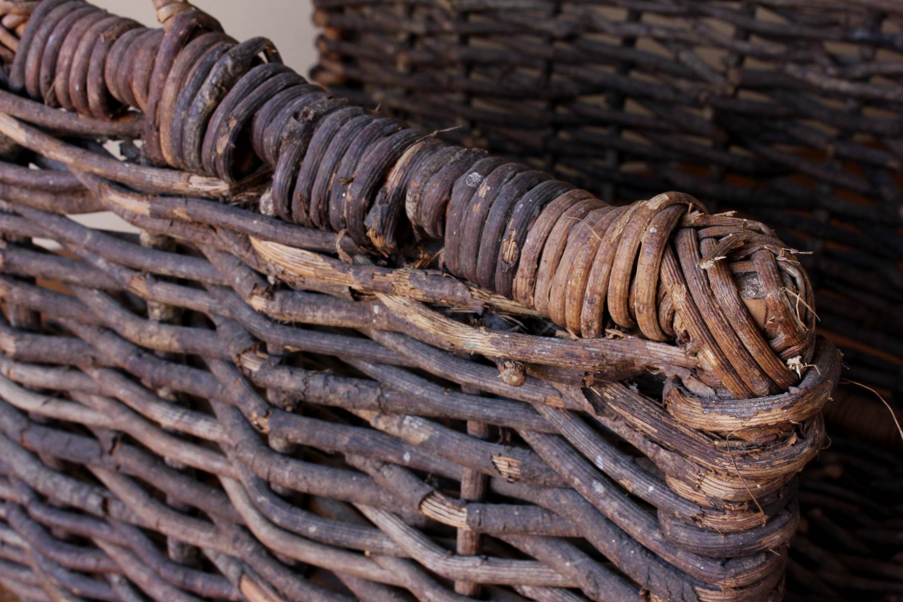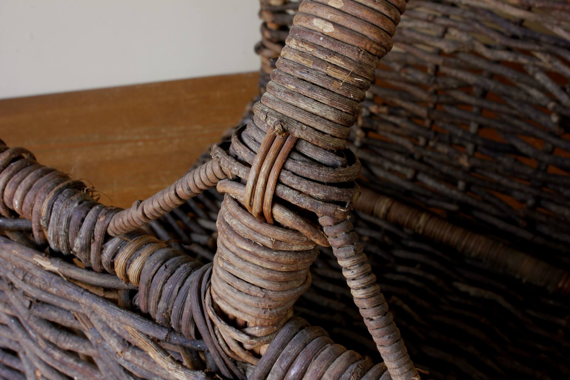 This stunning antique French log harvesting basket which would have been made by hand using locally sourced materials is a large size and has a beautiful rustic patina.