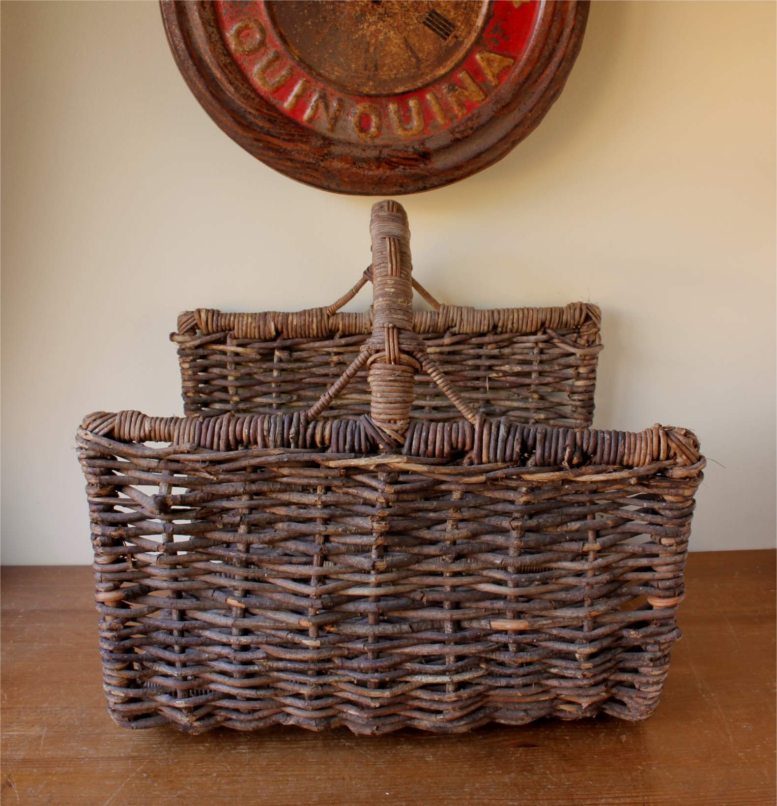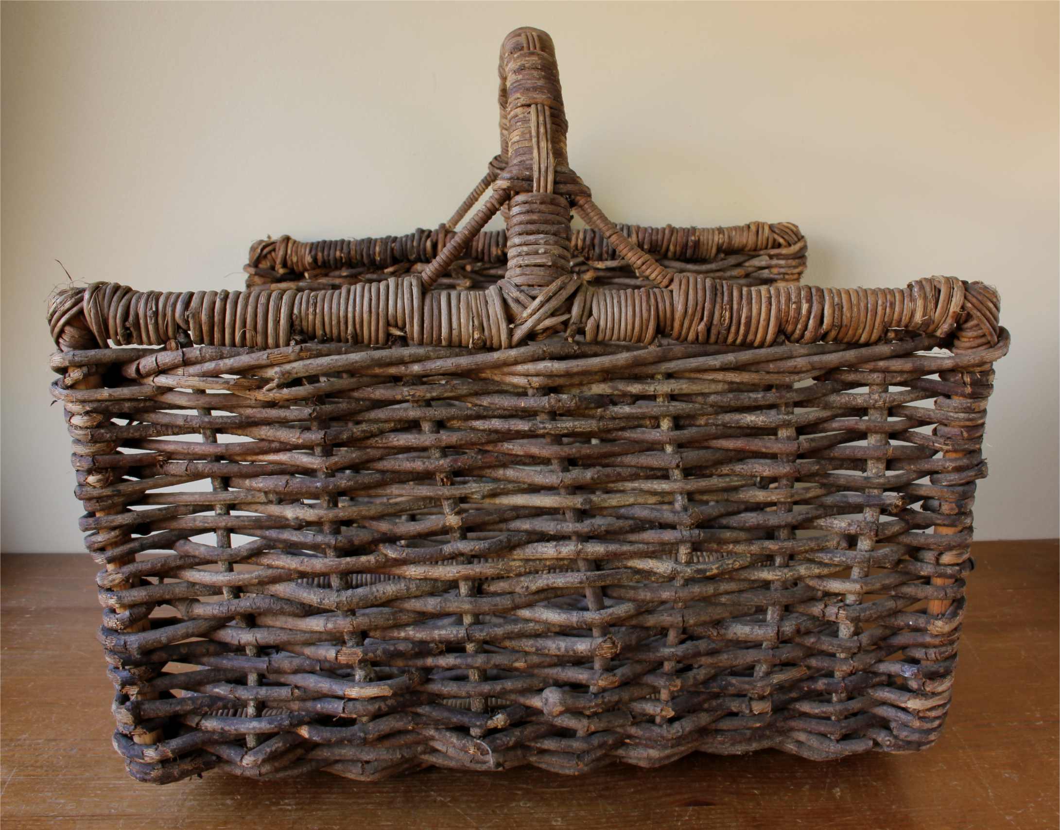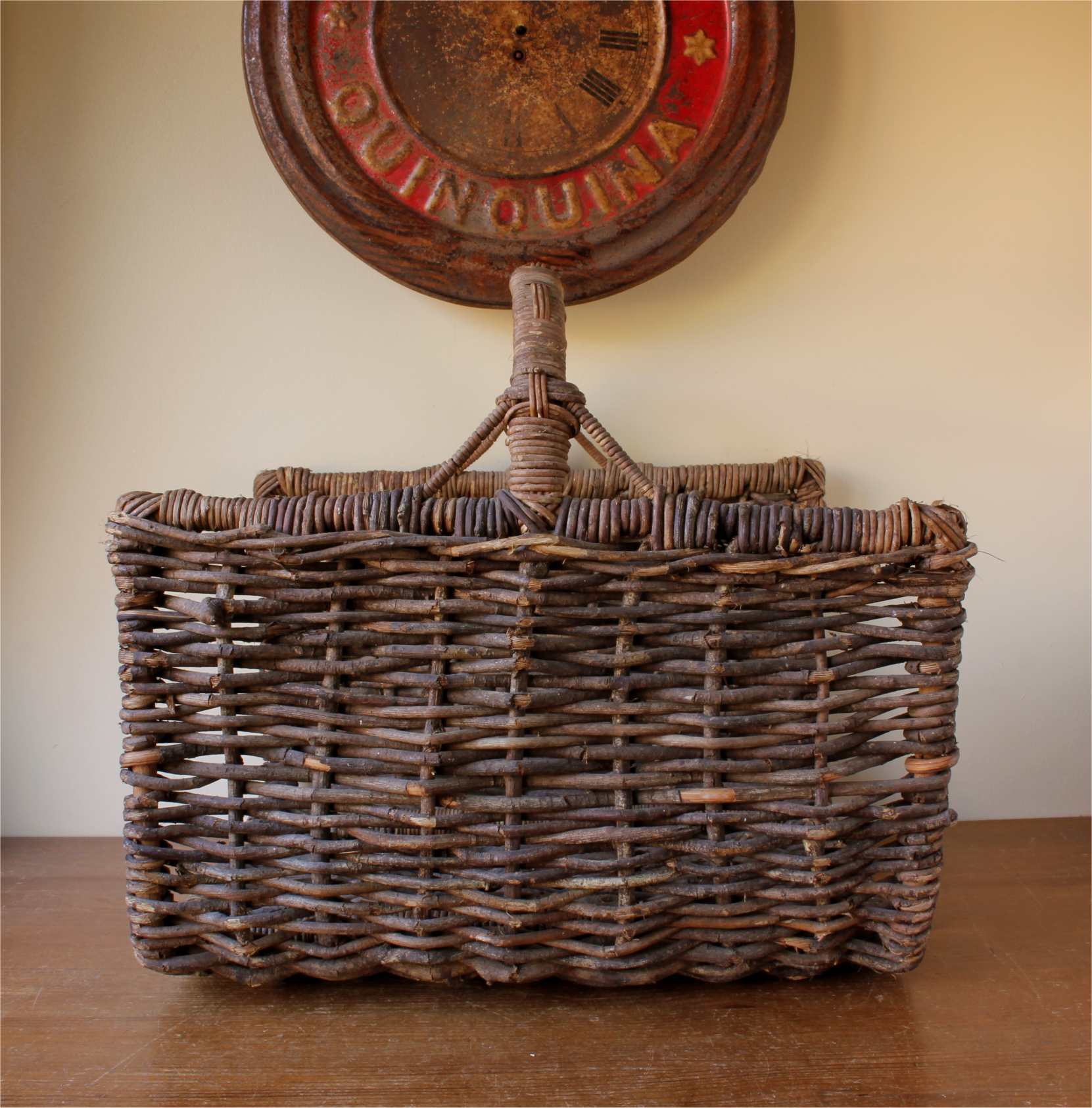 A usable antique basket that has a fantastic look and would make a wonderful log basket.