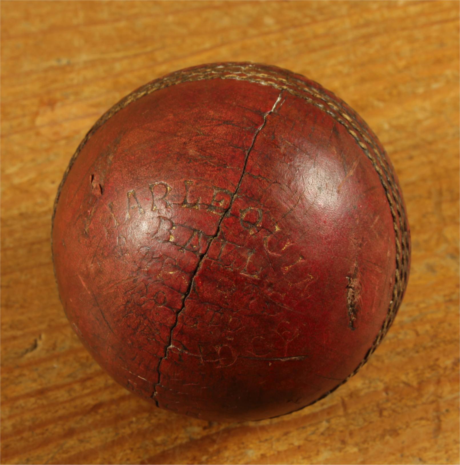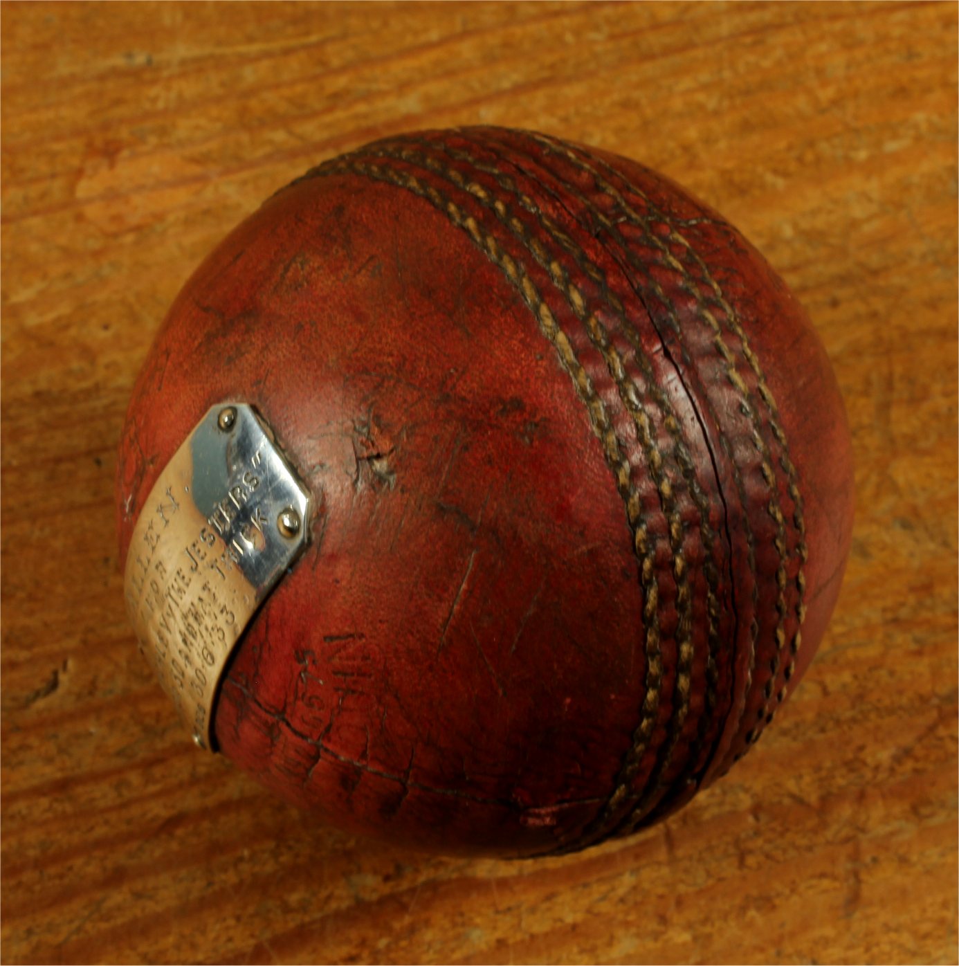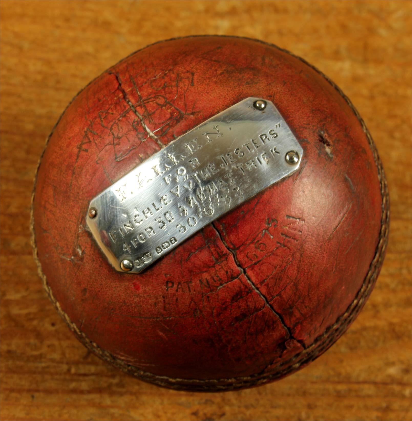 Material: Cricket Ball. Sterling silver plaque.