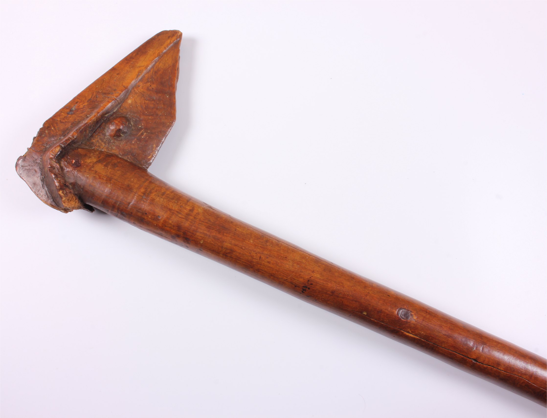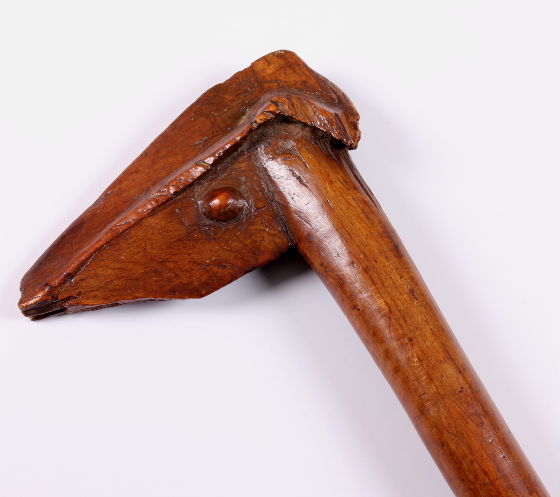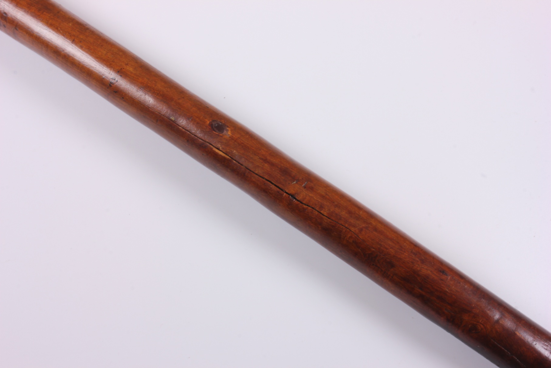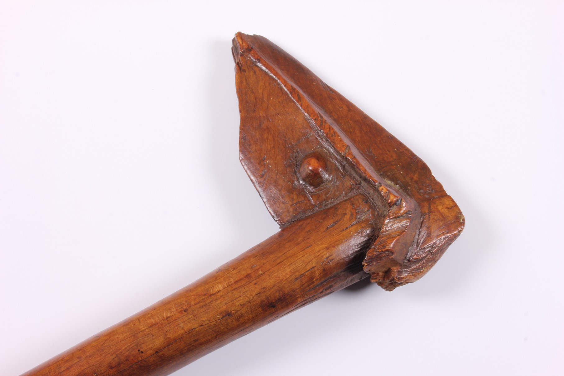 This antique Go Porowa Ra Maru club which is hand carved with a pointed head to resemble a bird's head / beak also has the usual stepped handle and has a rich patina.
