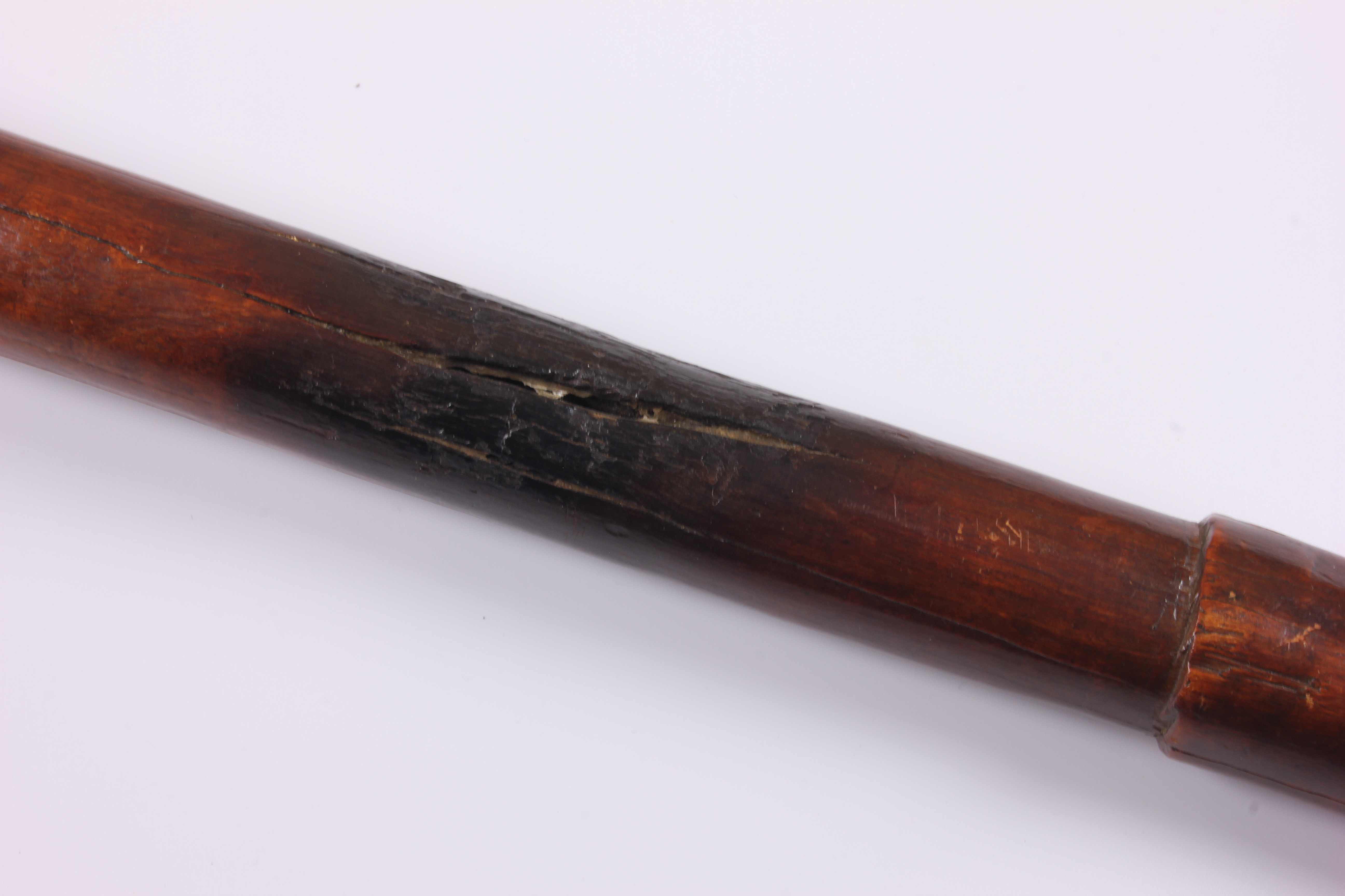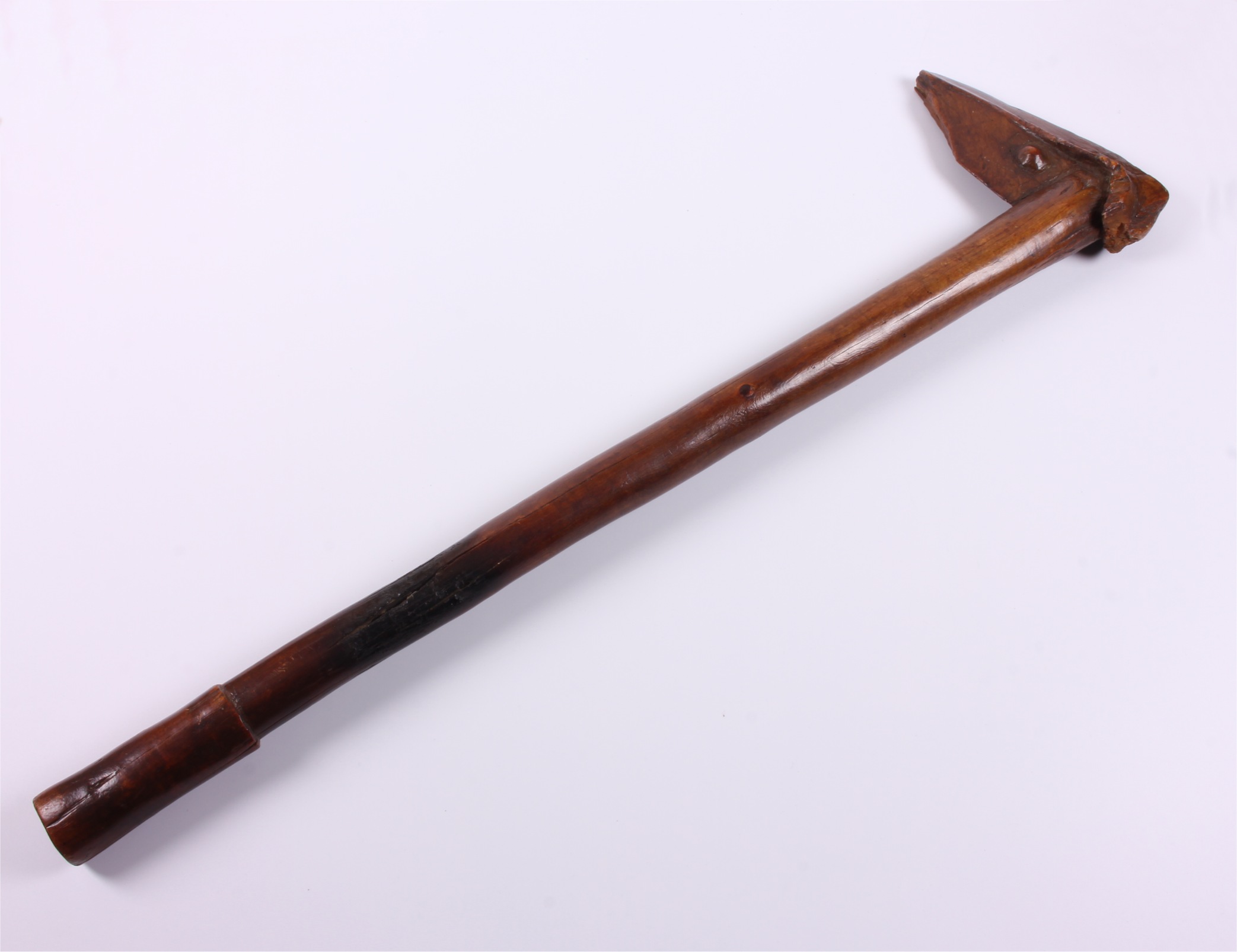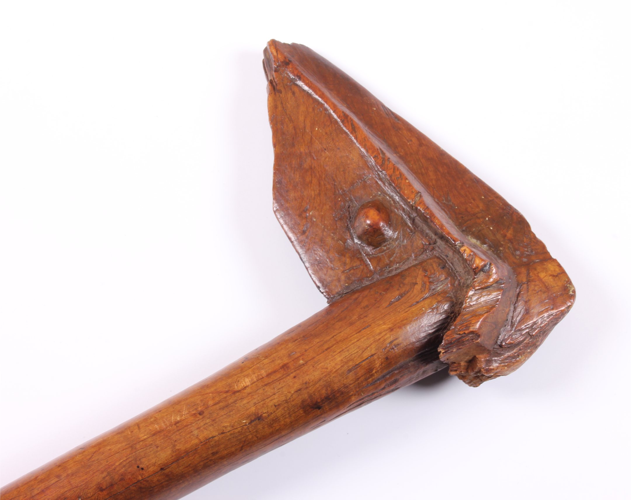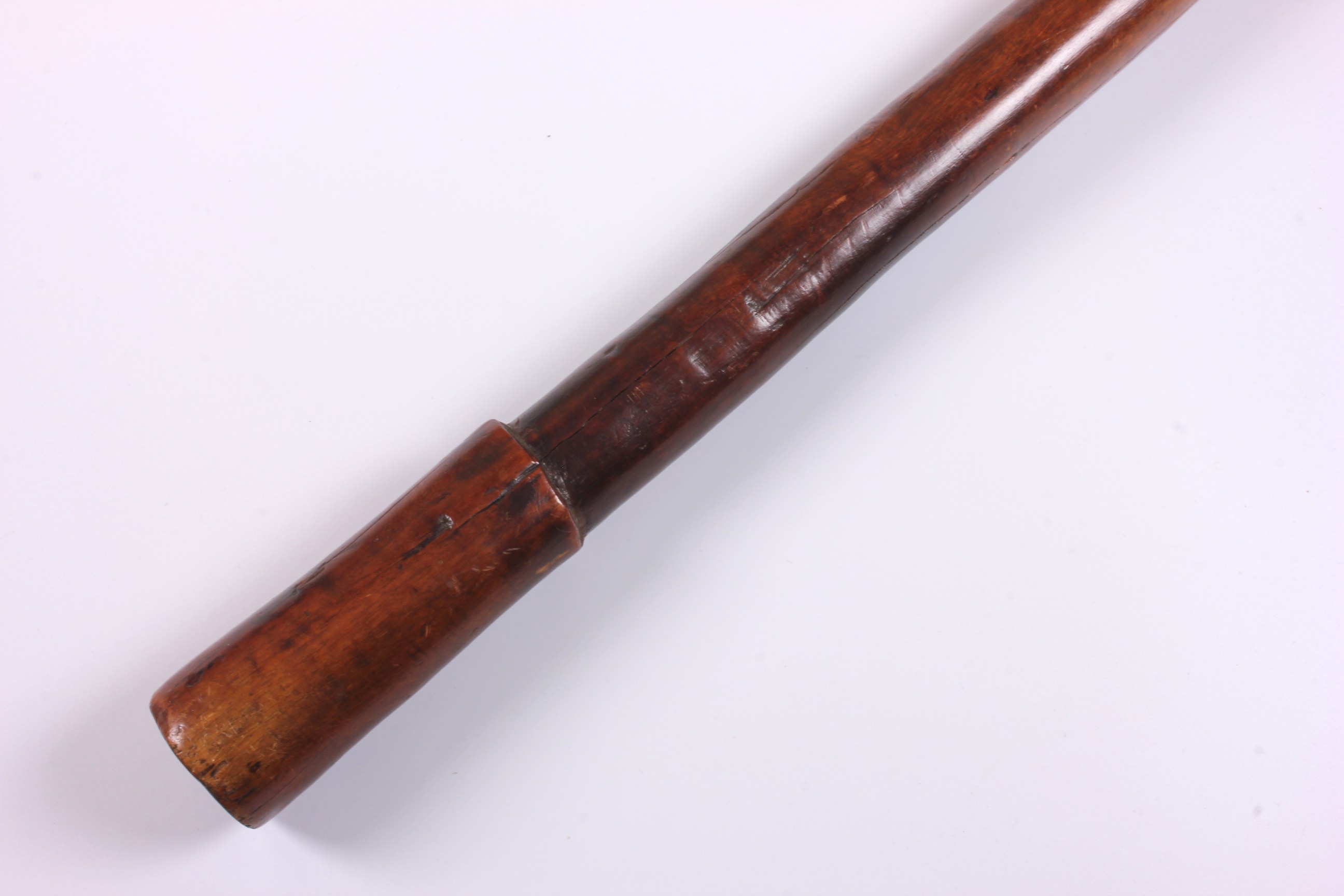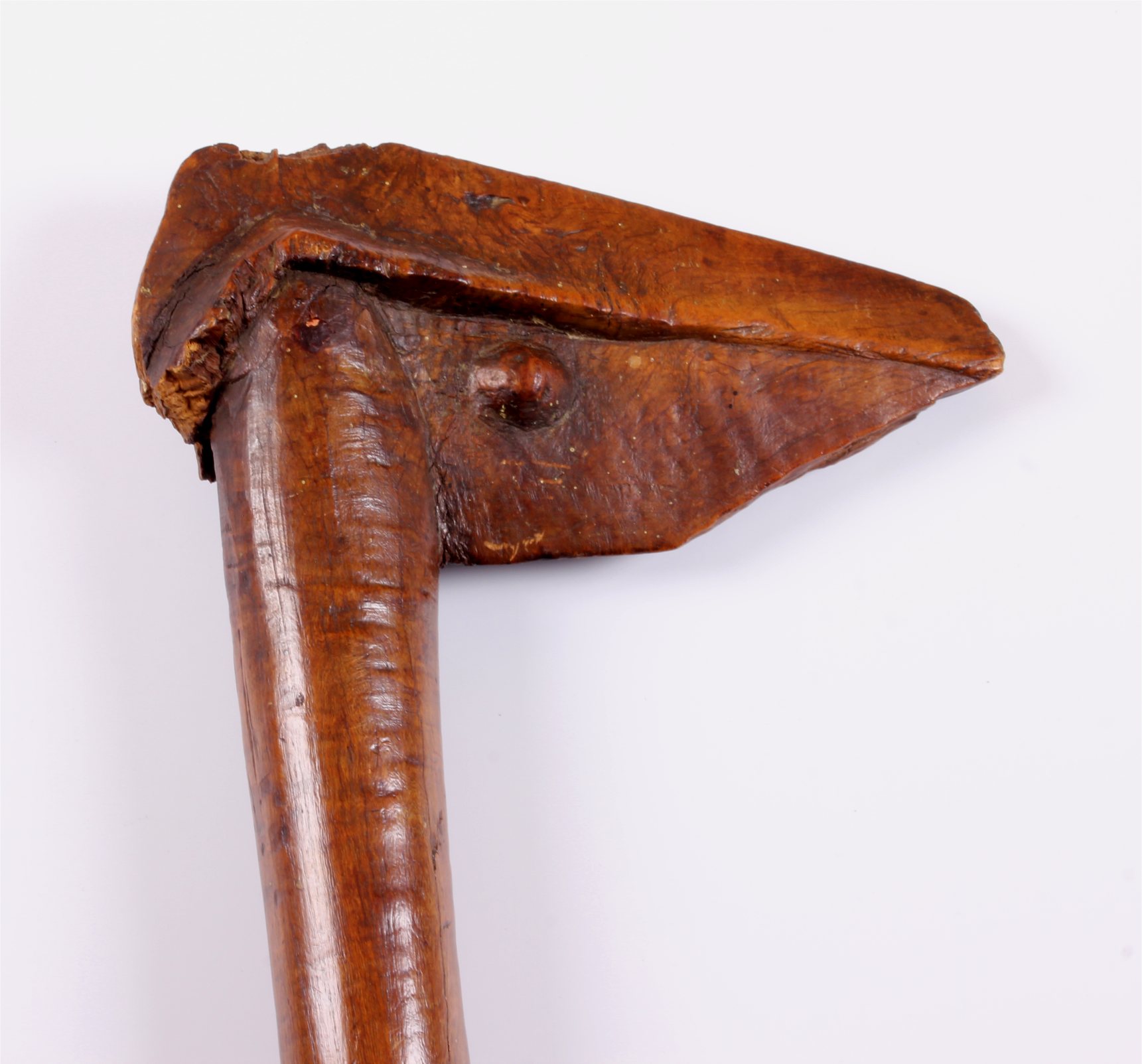 This antique Go Porowa Ra Maru club which is hand carved with a pointed head to resemble a bird's head / beak also has the usual stepped handle and has a rich patina.