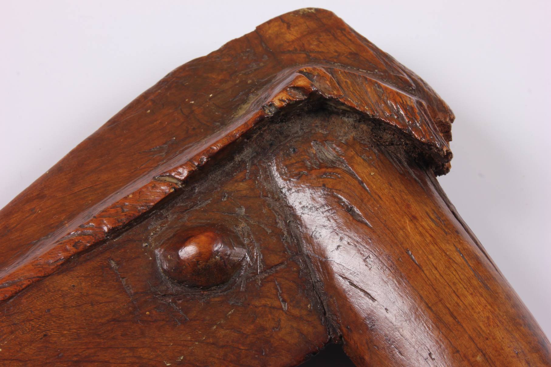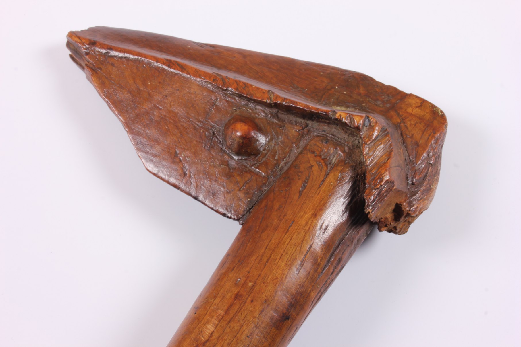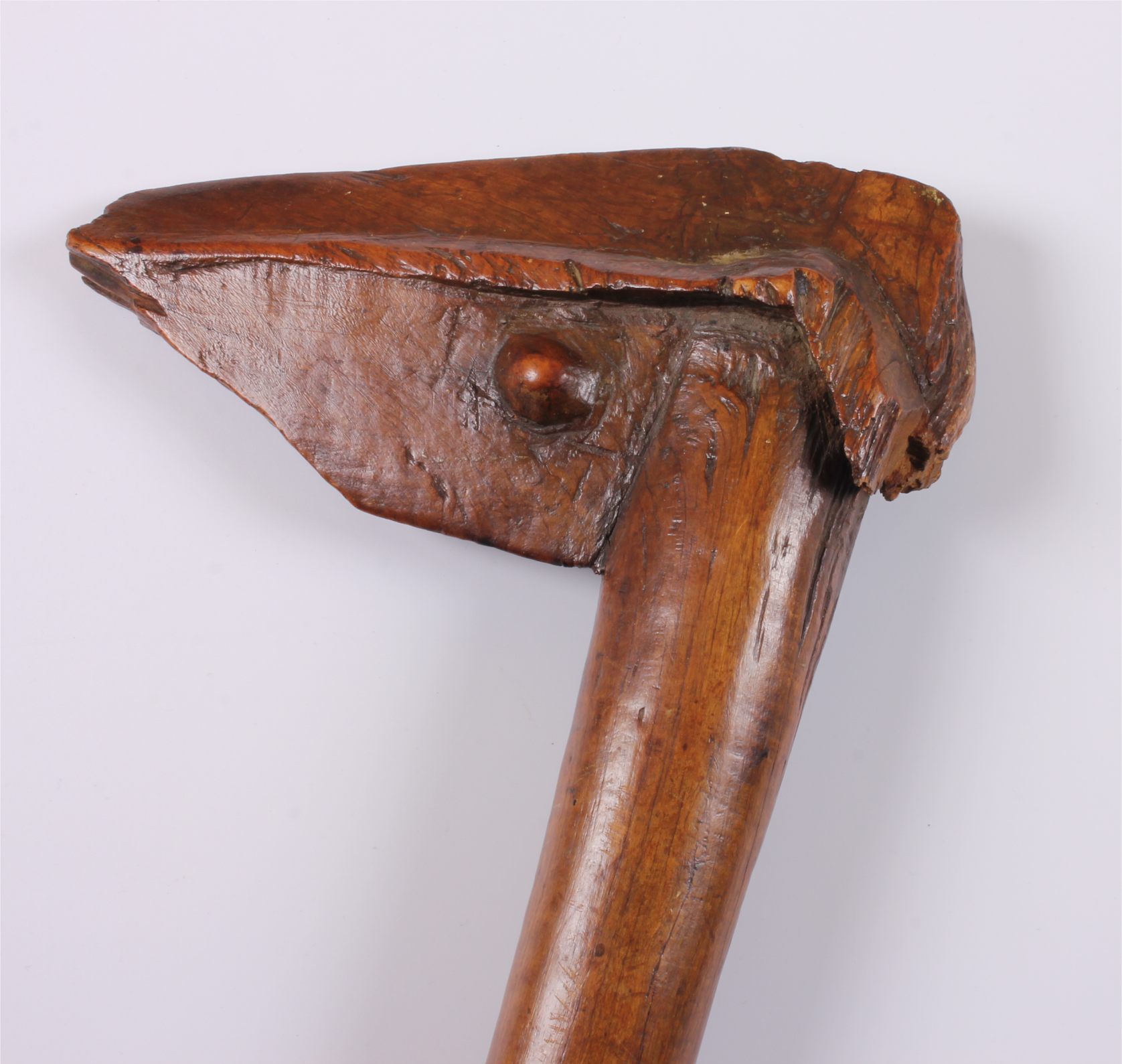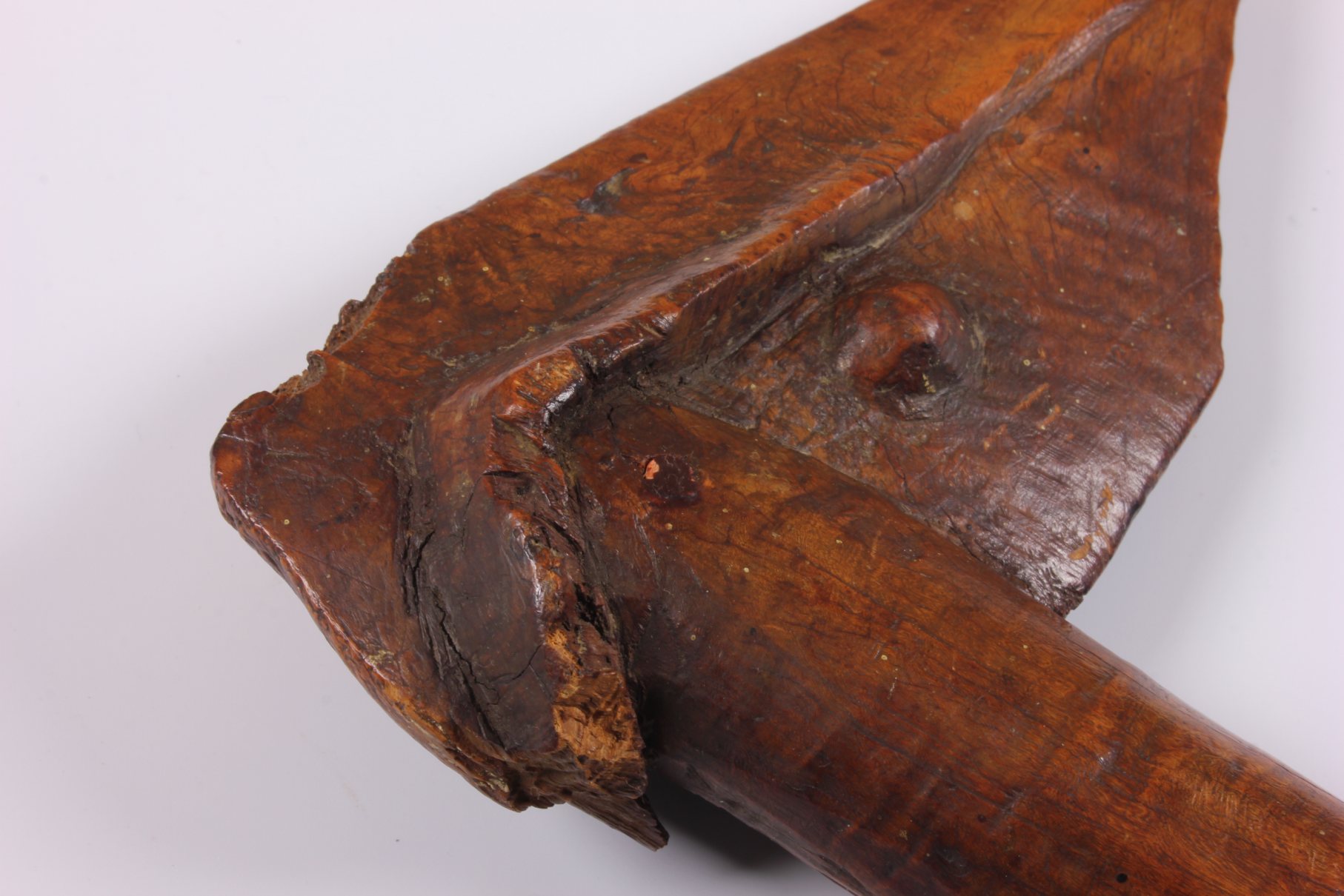 This antique Go Porowa Ra Maru club which is hand carved with a pointed head to resemble a bird's head / beak also has the usual stepped handle and has a rich patina.