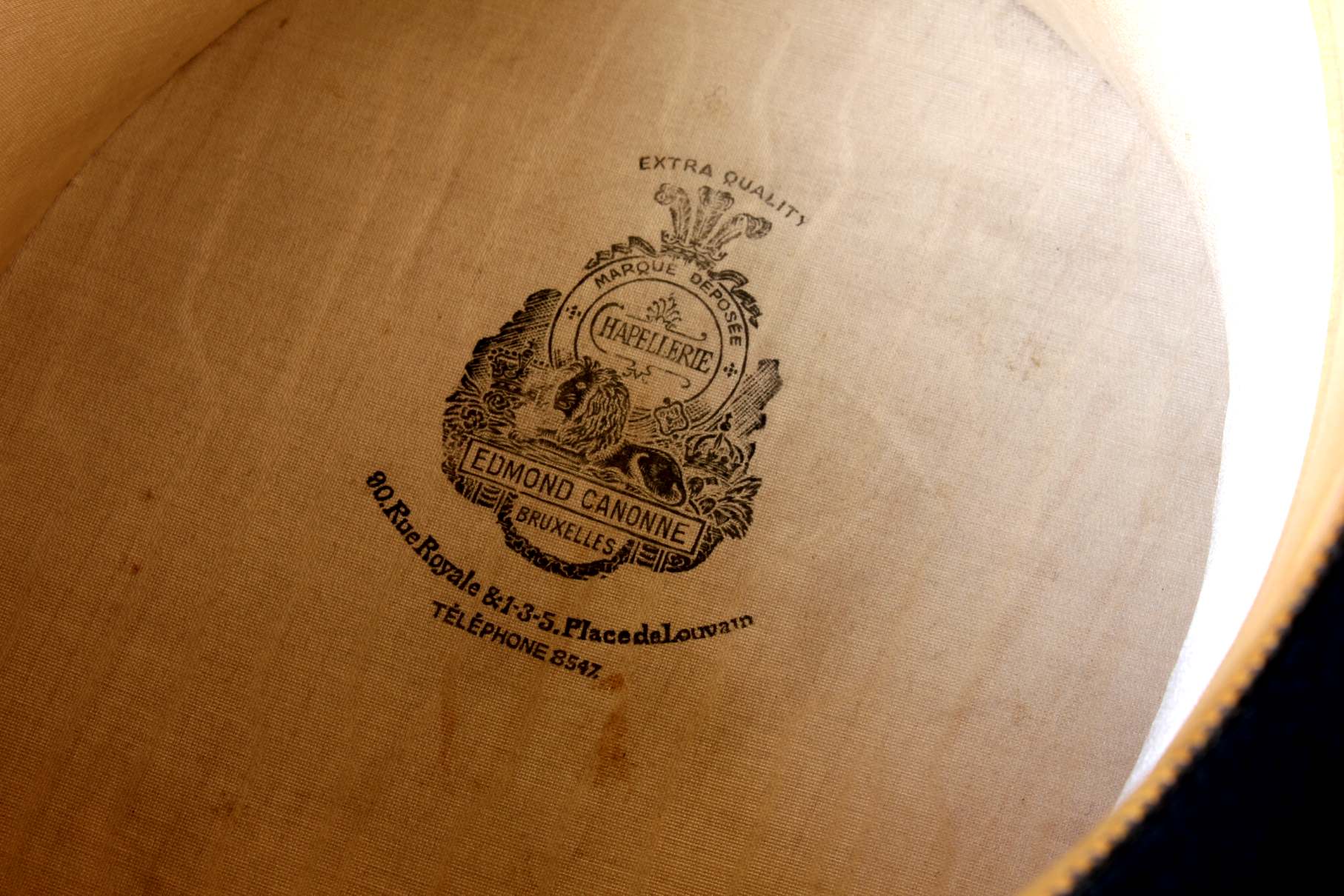 Makers details as shown inside hat: Edmond Canonne. 90 Rue Royale, Bruxelles, Belgium and 1-3-5 Place de Louvain. Telephone 8547. Marque Deposee. Extra Quality and Chapellerie.