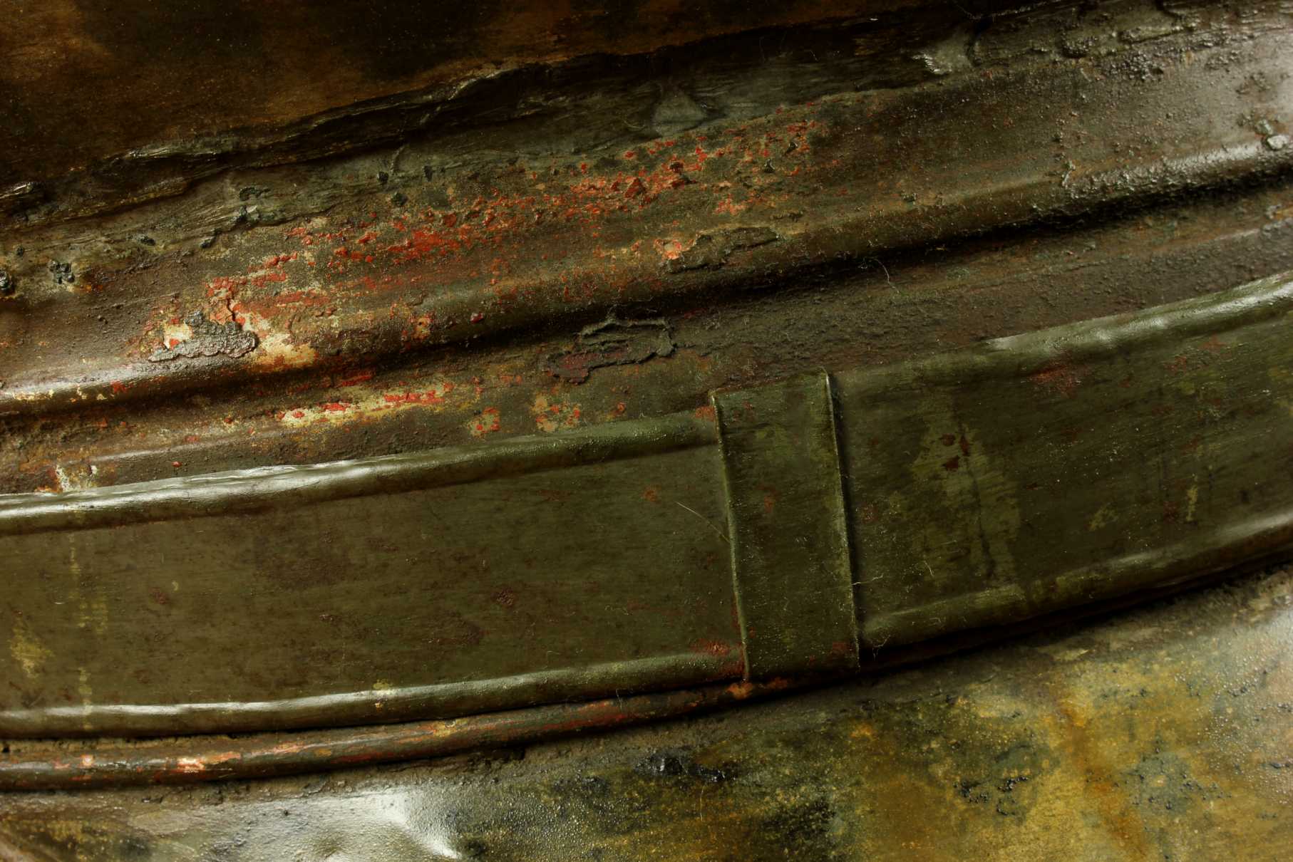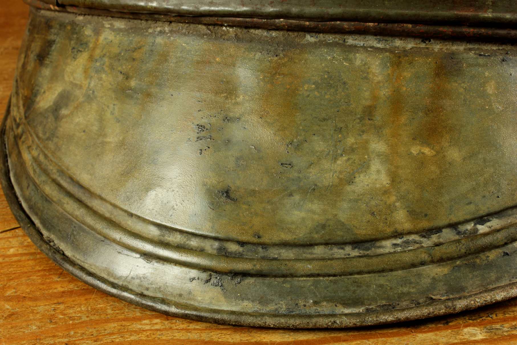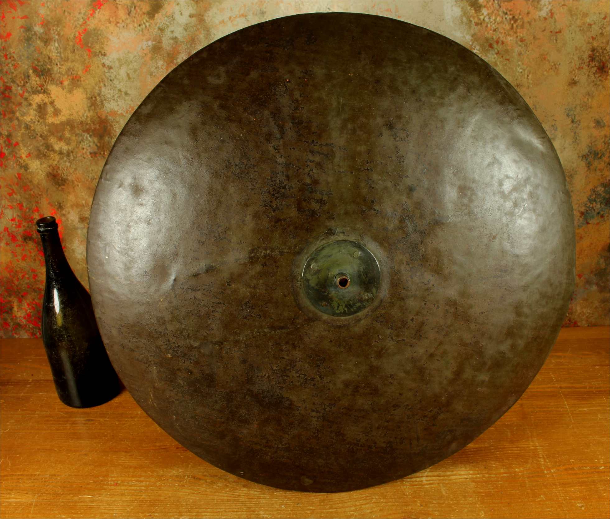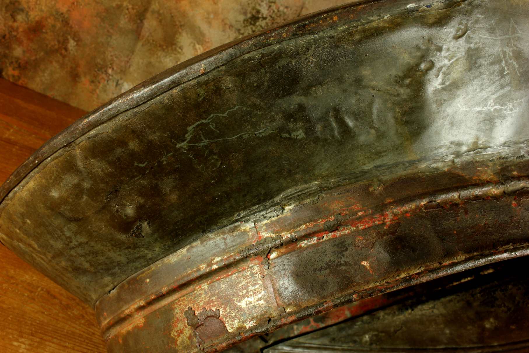Condition: Very good used antique condition with signs of use and wear in keeping with age. Has a wonderful weathered look. Some wear, dents and splits. Can be hung from a chain using the later hook. Please see pictures.