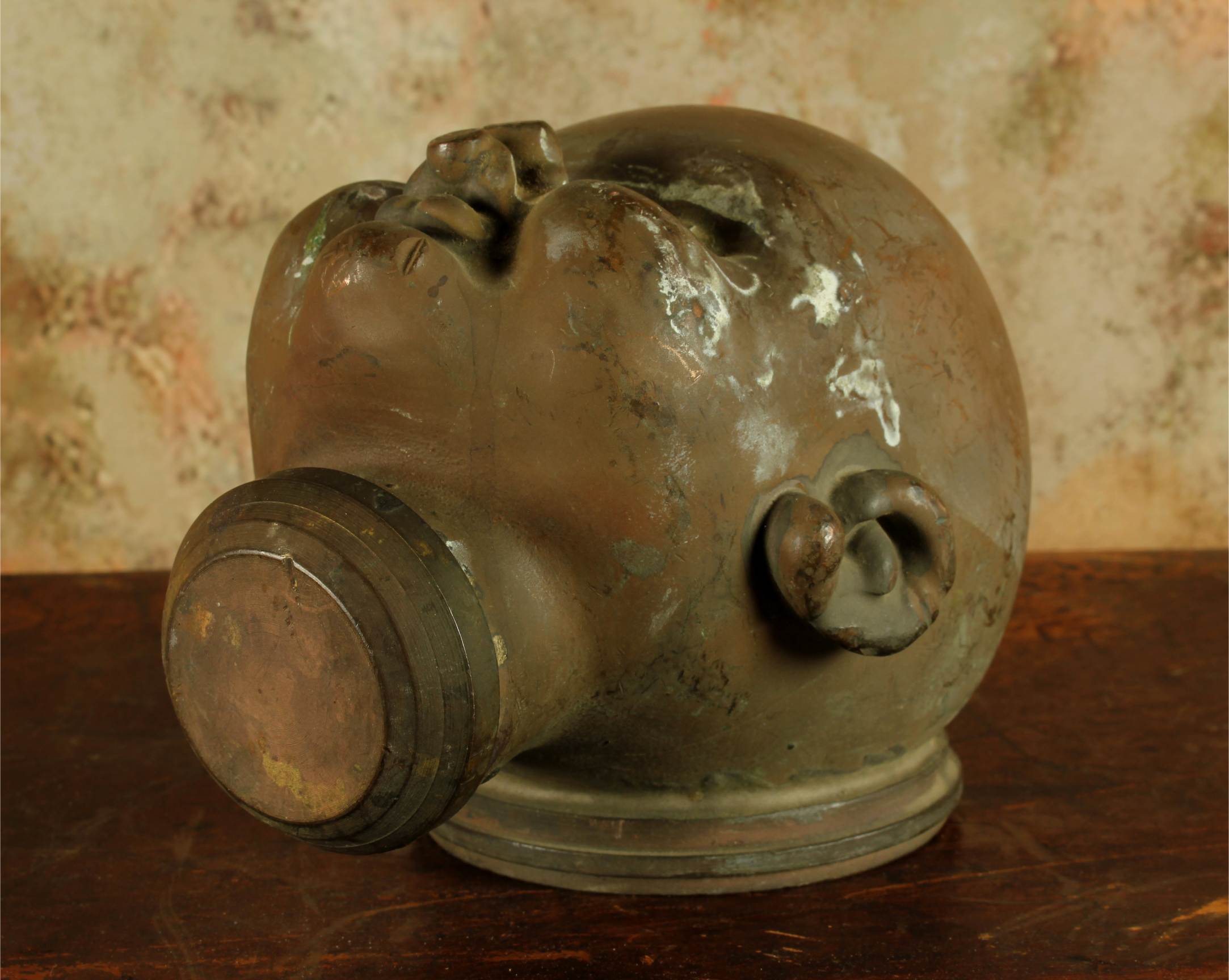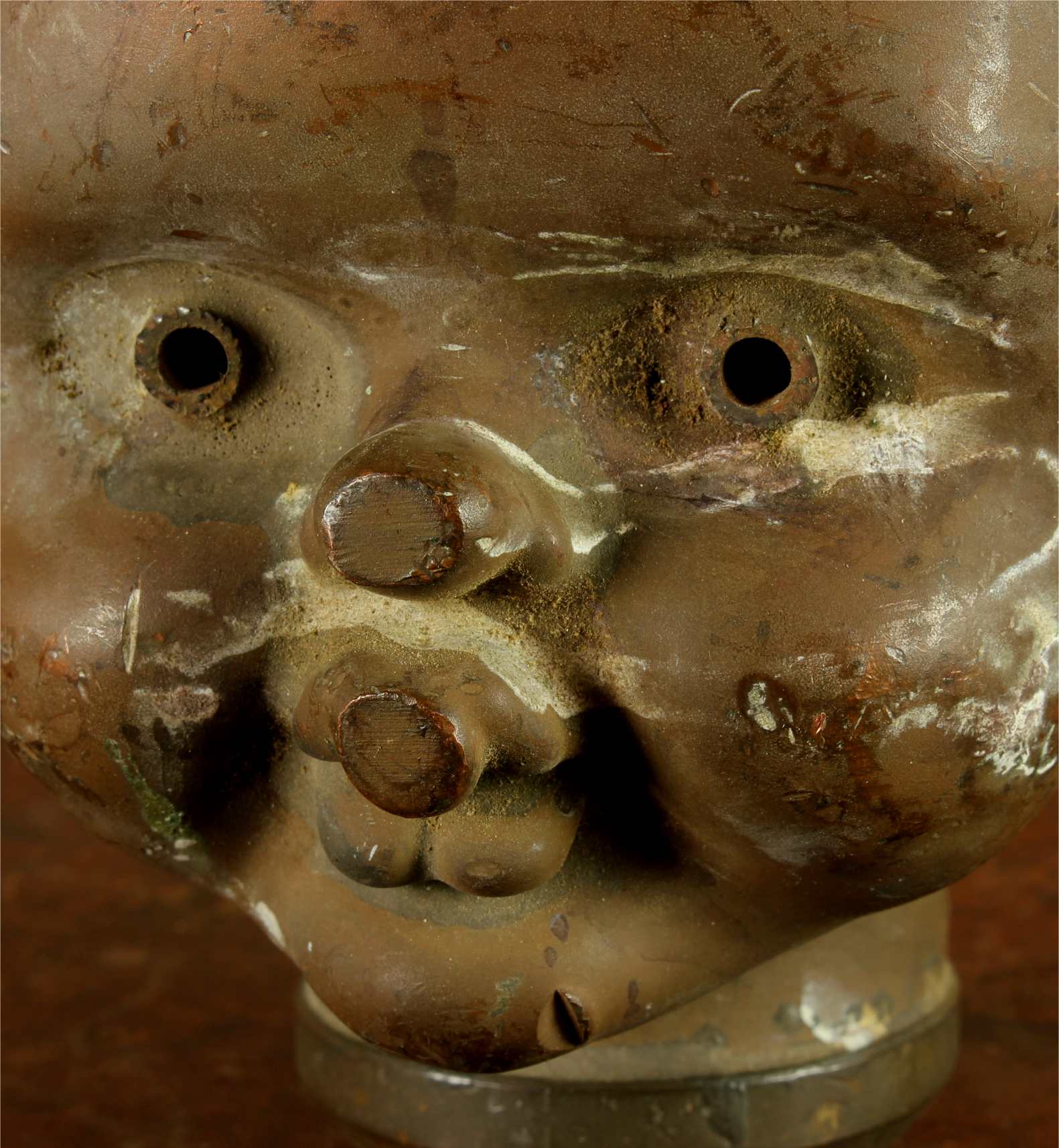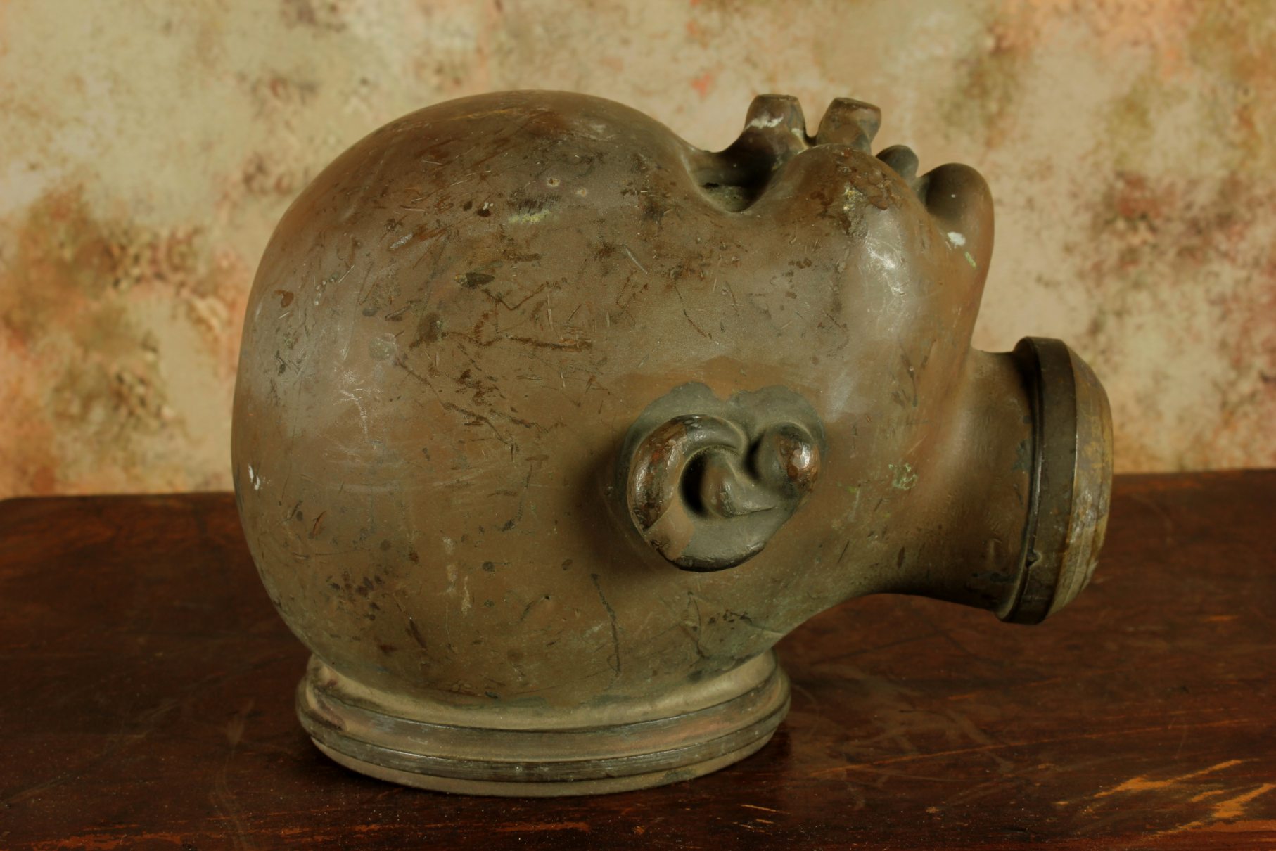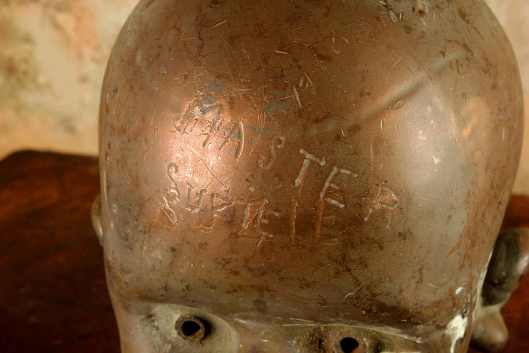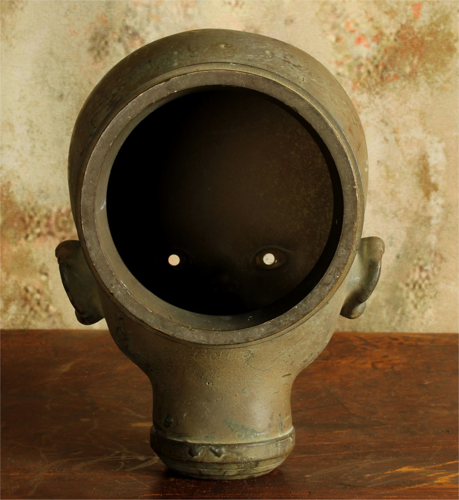 This large size doll head mould which dates from the mid 20th century is made of heavy copper and came from Bella Doll factory in Perpignan, France.