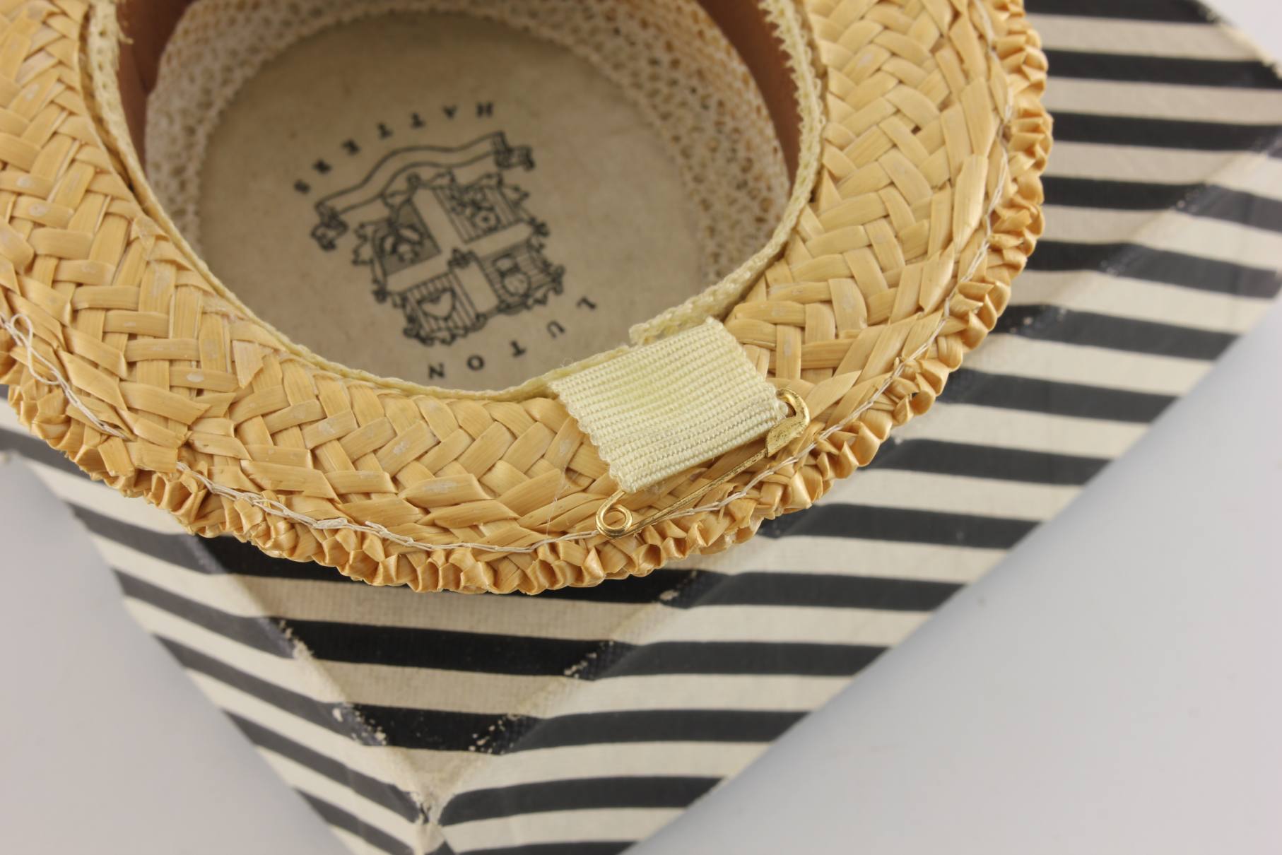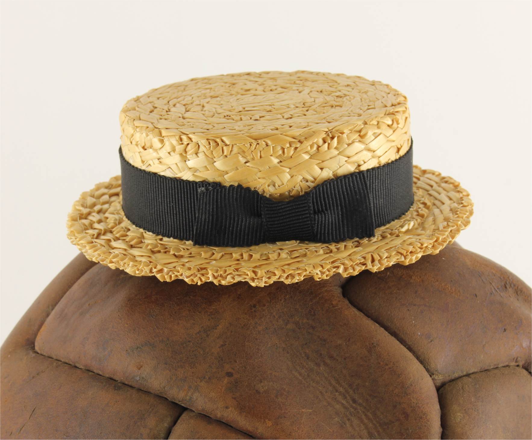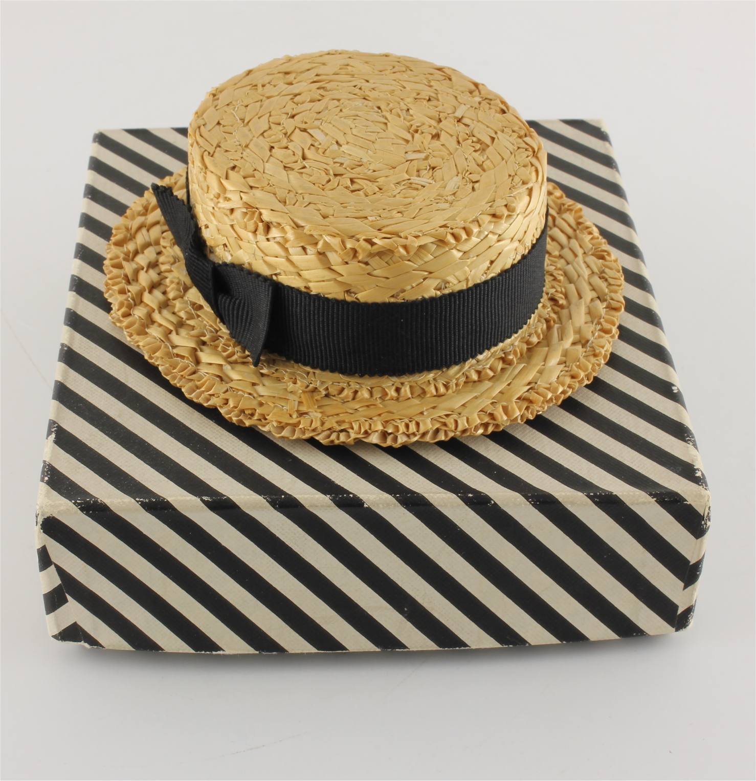 This vintage miniature straw boater which is marked Luton Hatters to the inside silk lining is nicely made using real straw, has a leather head band and comes in it's original box.