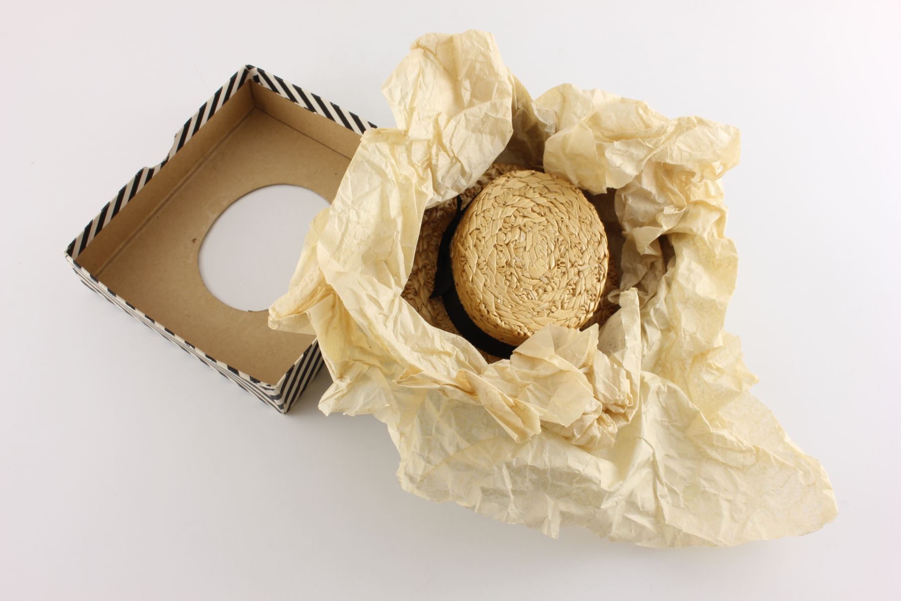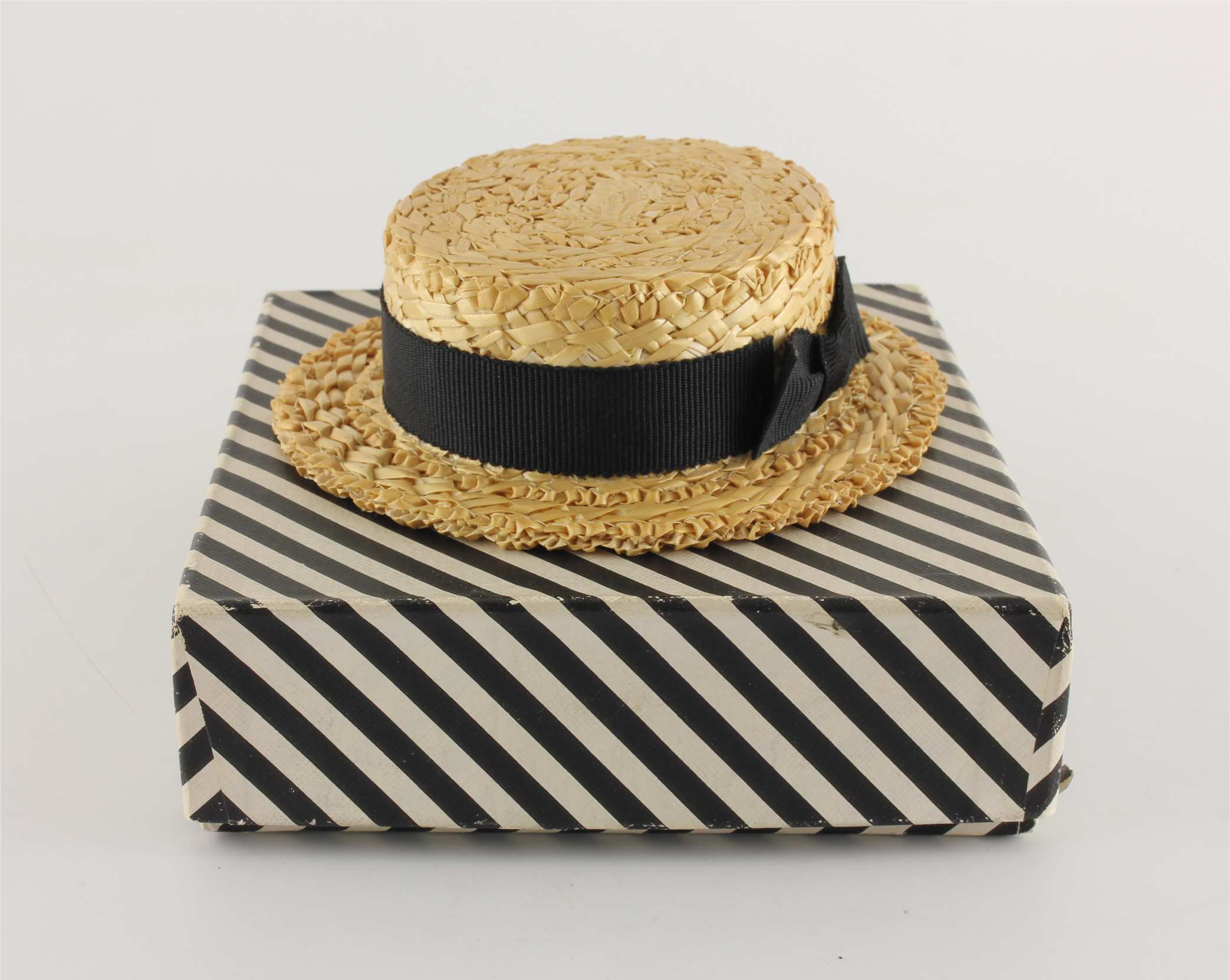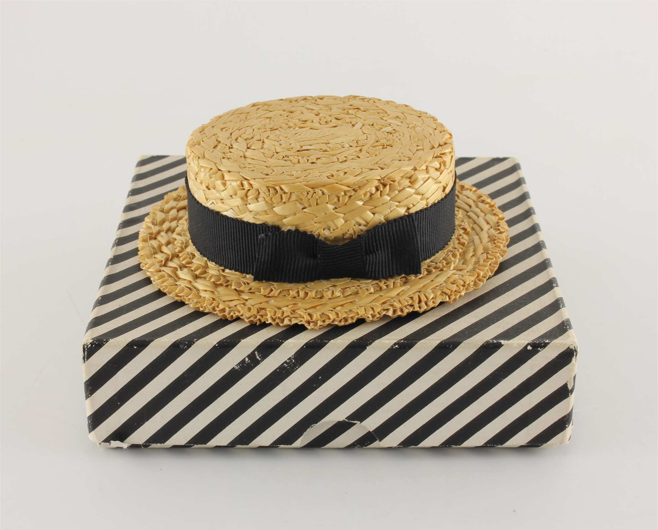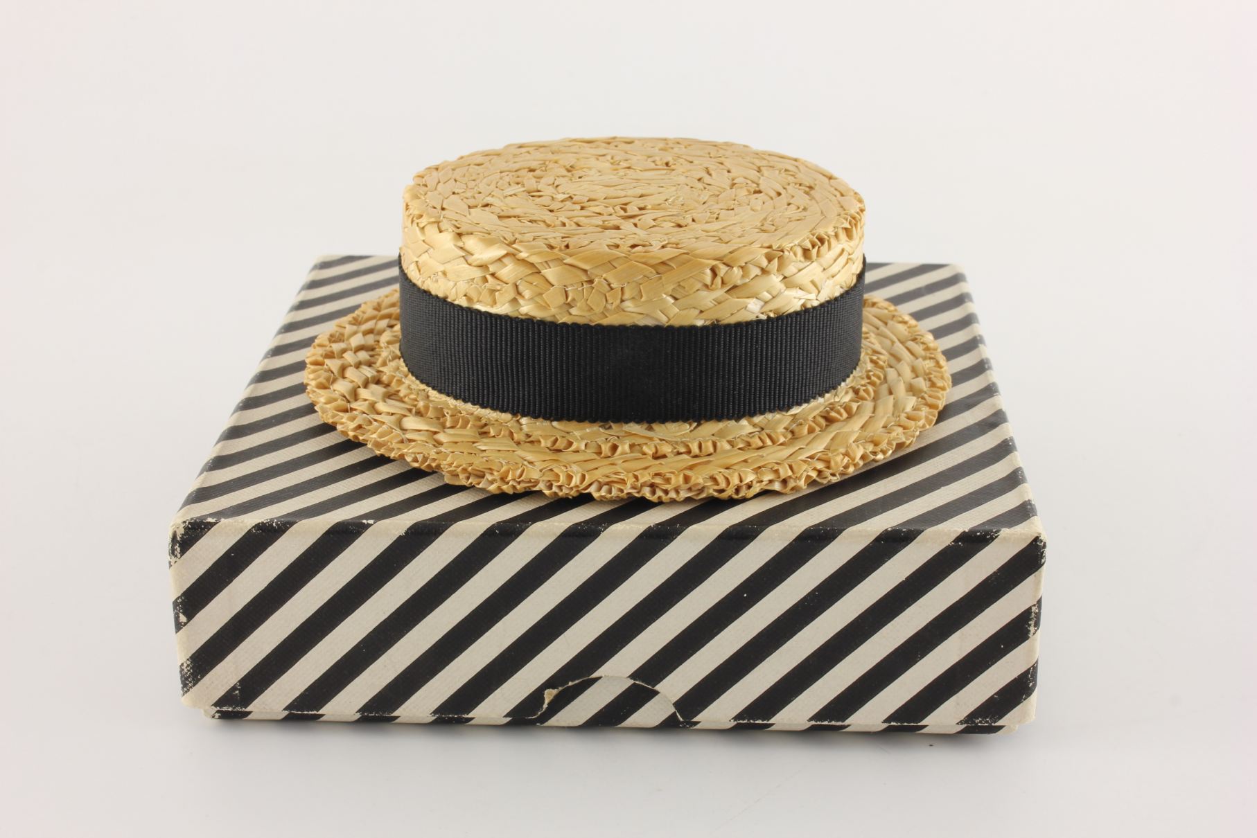 This vintage miniature straw boater which is marked Luton Hatters to the inside silk lining is nicely made using real straw, has a leather head band and comes in it's original box.