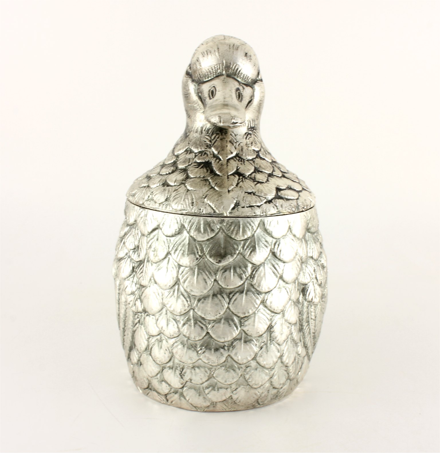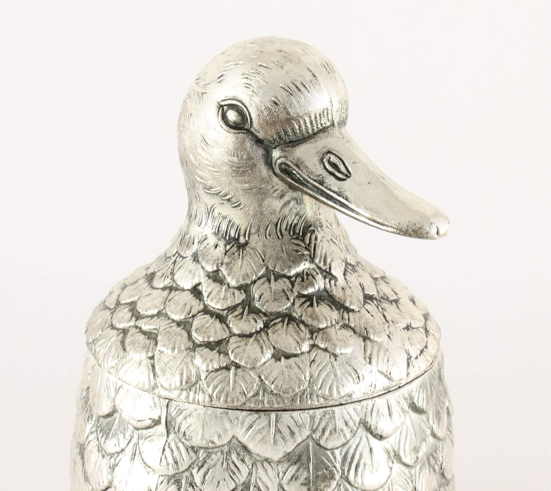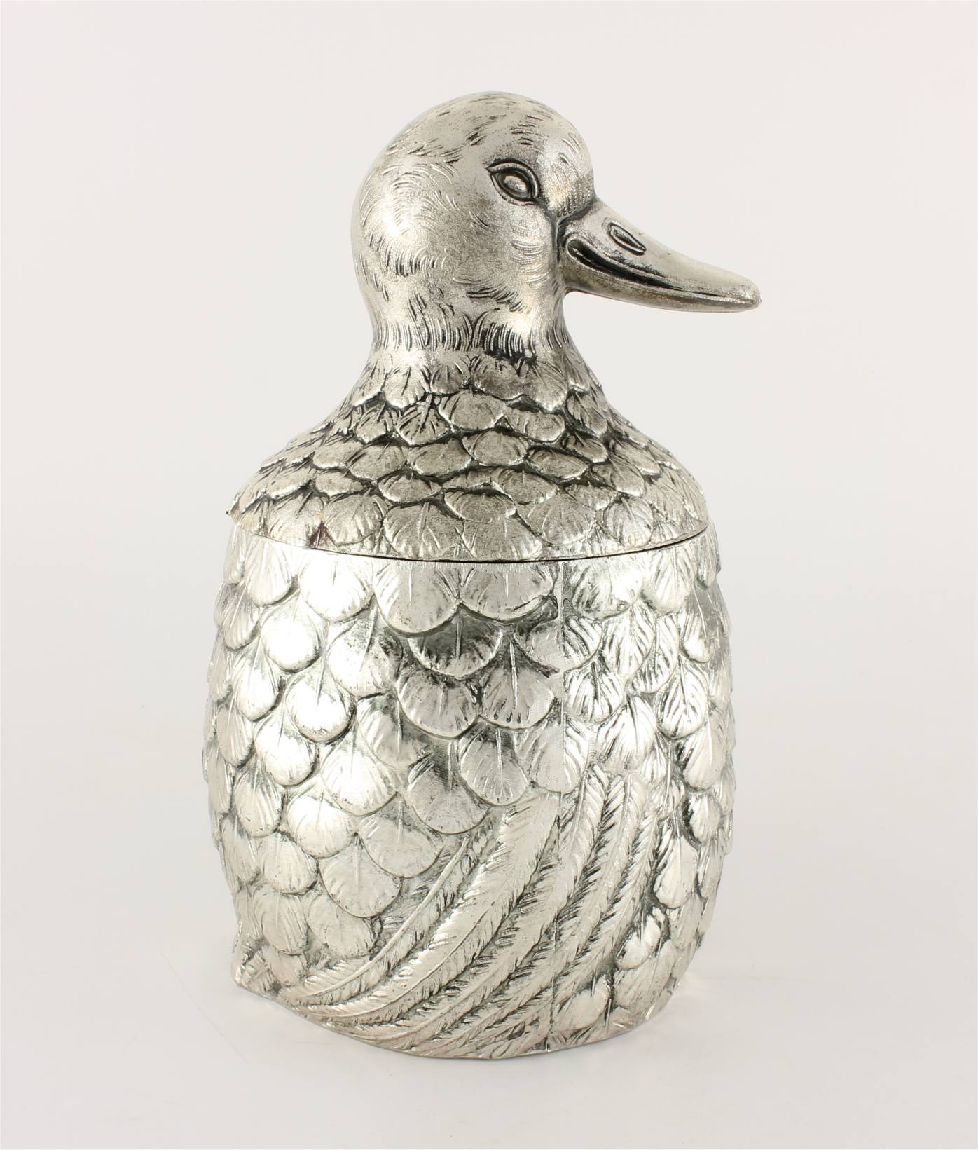 This vintage Italian duck ice bucket which is by designer Mauro Manetti is made of silver plated metal and dates from the 1960's.