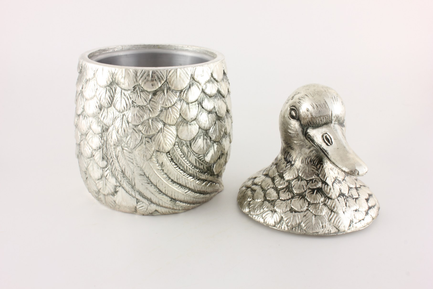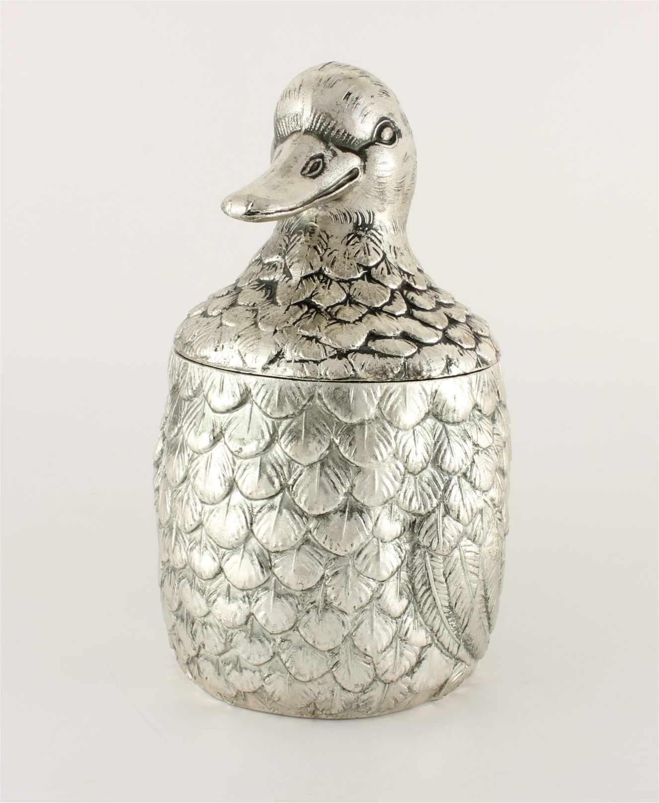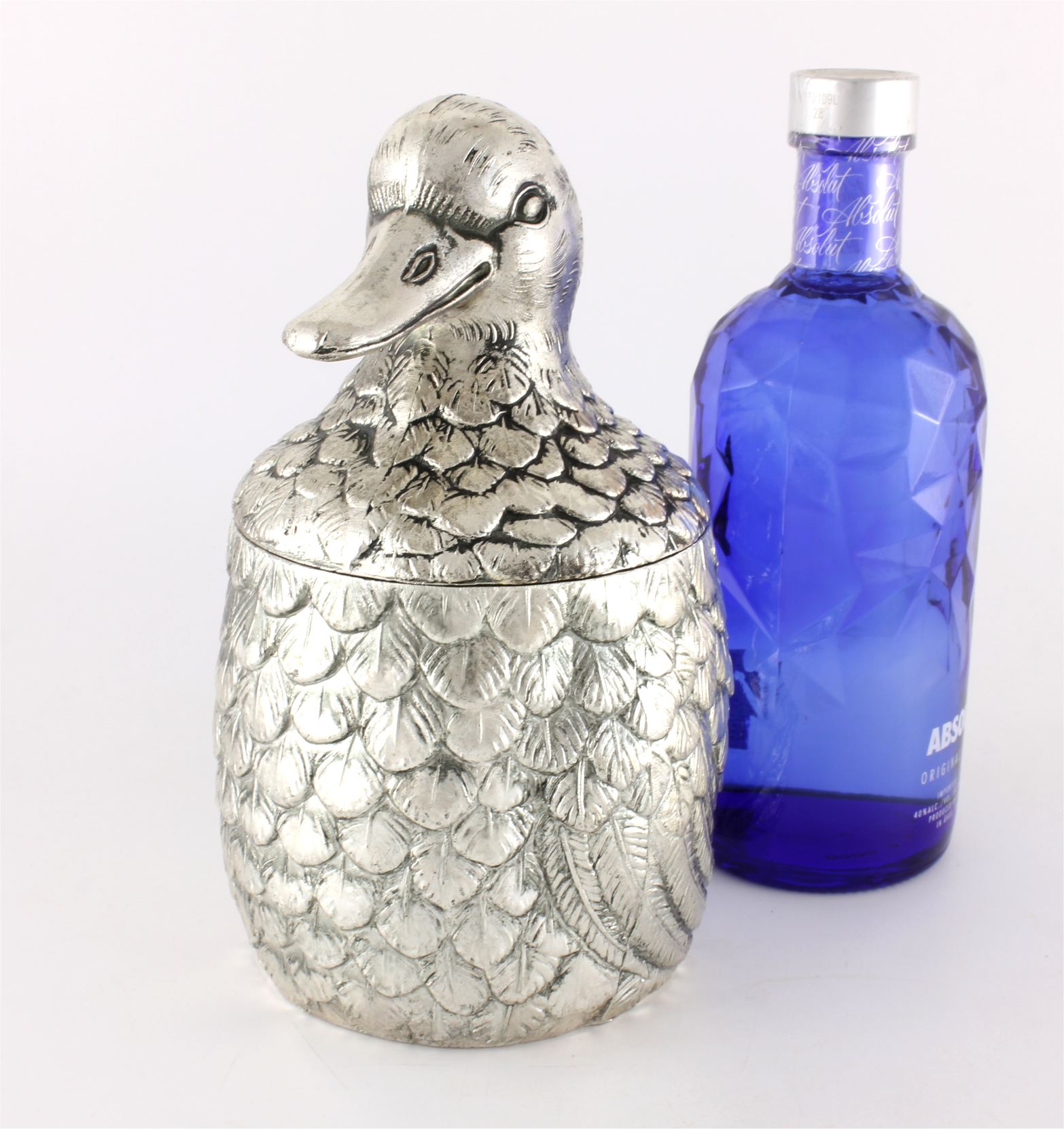This vintage Italian duck ice bucket which is by designer Mauro Manetti is made of silver plated metal and dates from the 1960's.