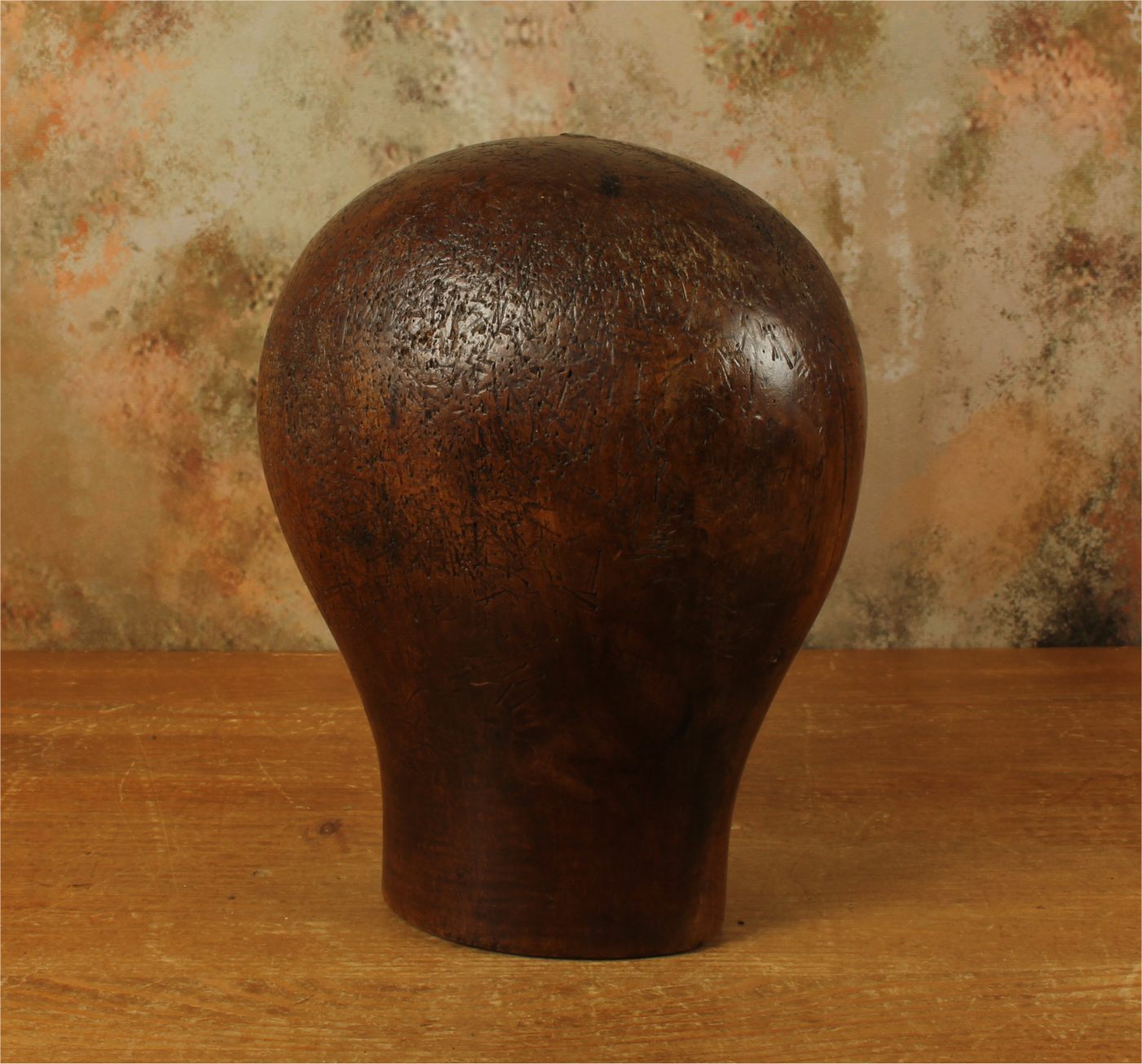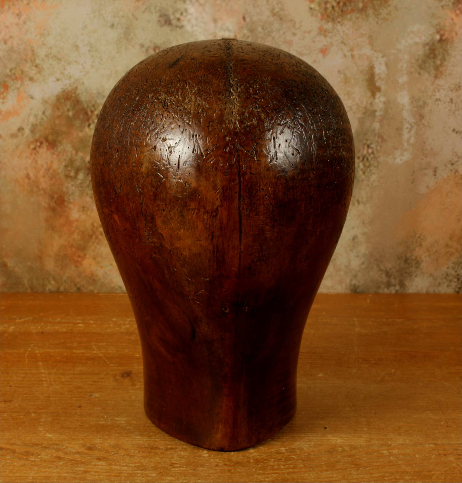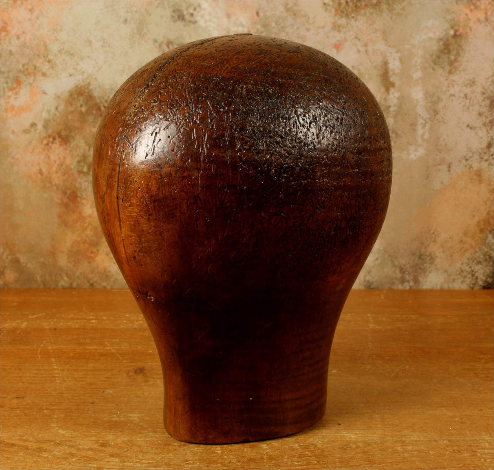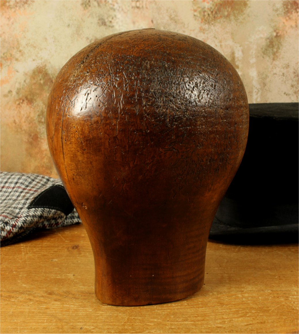 This hat block has accumulated lots of pin holes and wear over the years leaving a wonderful look and would be ideal for displaying hats, wigs and other headwear.