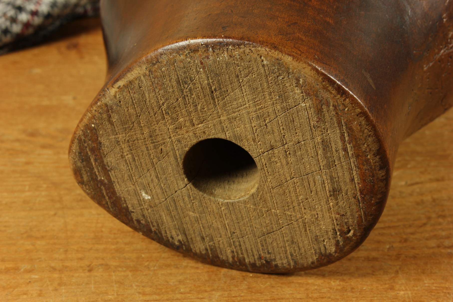 This tactile wooden display stand is a good heavy weight and would have originally been used to make and shape hats or wigs.