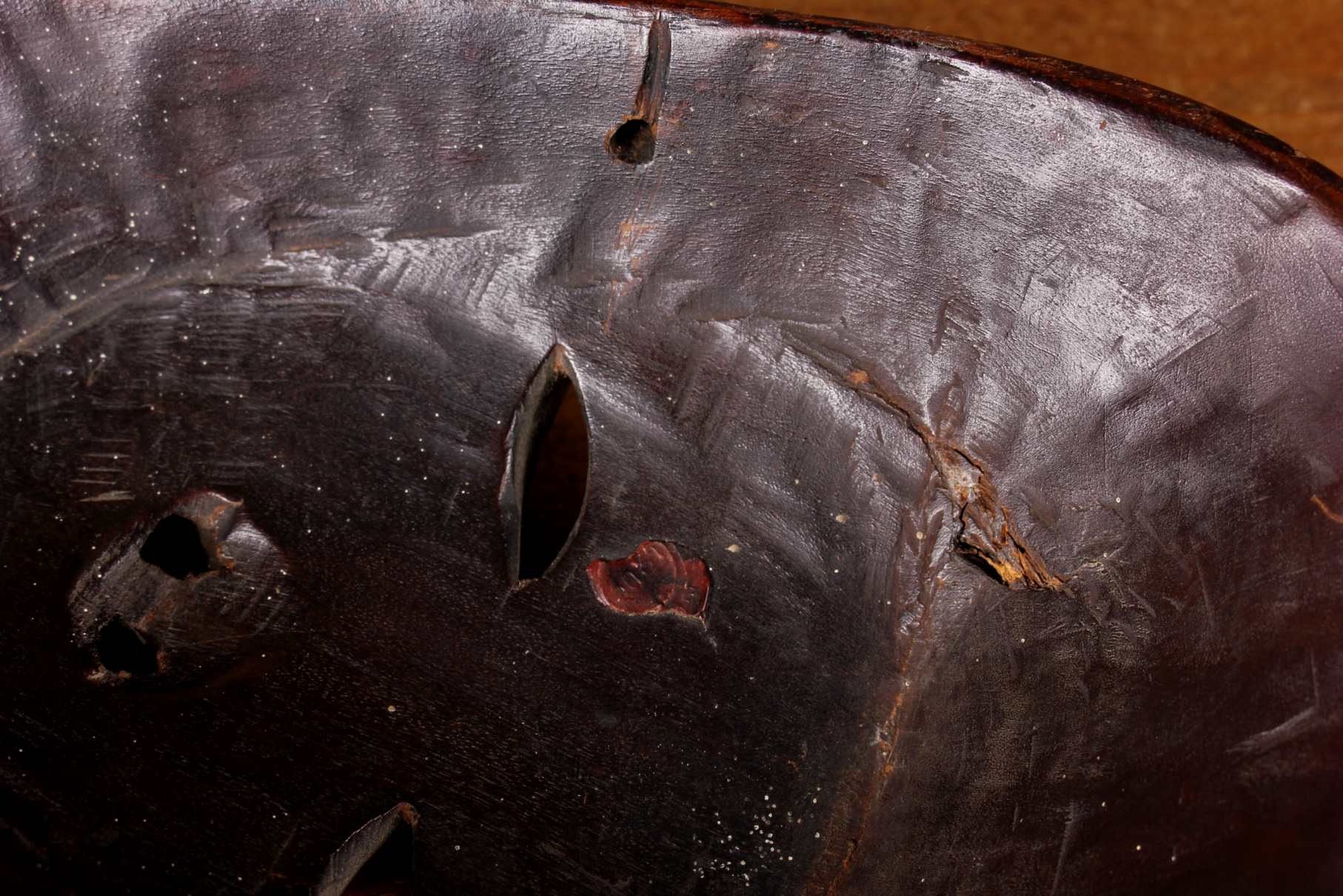 This fabulous Himalayan demon mask which dates from around the end of the 19th century originates from Nepal and has it's red wax seal which shows that this was legally inspected and cleared for export.
