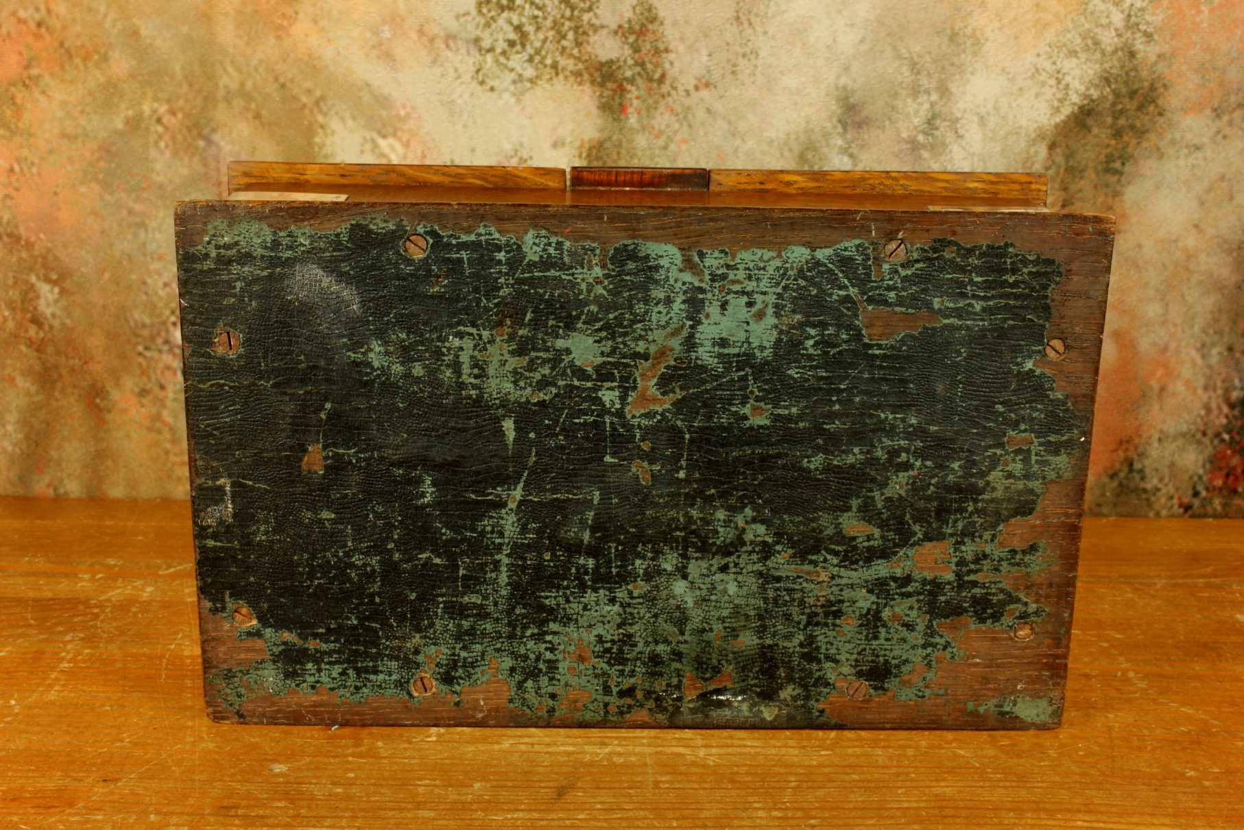 This unusual box sits nicely on a desk or table and can also be carried using the top silver plated handle.