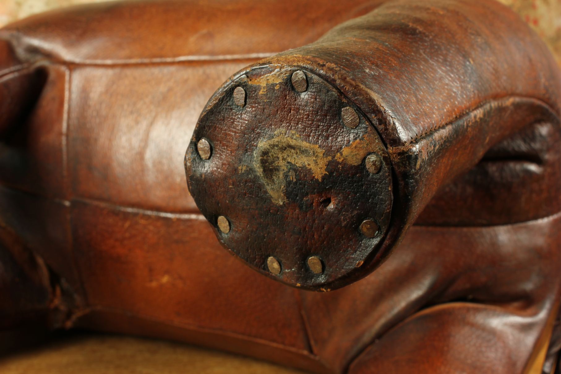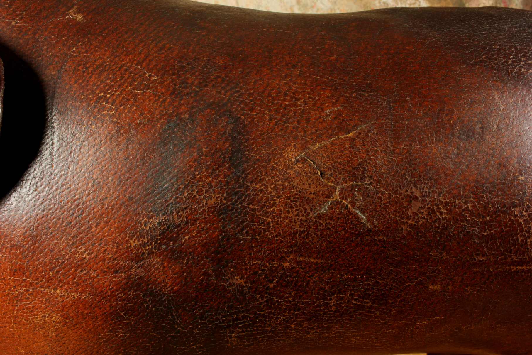 Condition: Nice pre-loved vintage condition with signs of use. There is some damage to the leather and legs. One leg is loose and the other is bent. Some marks, scuffs, rips and wear. Some repairs and restoration. Has a wonderful aged patina. Please see pictures.