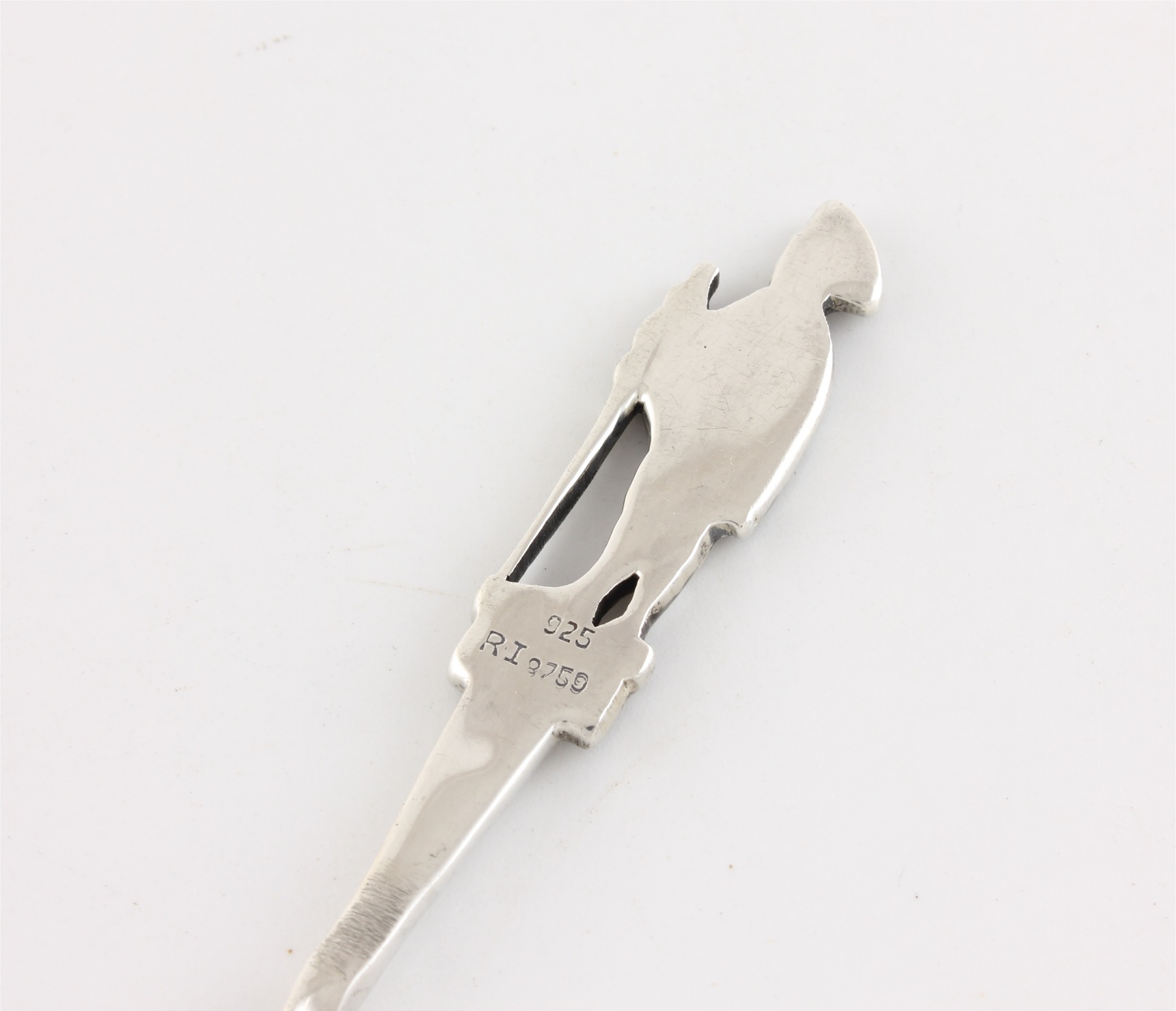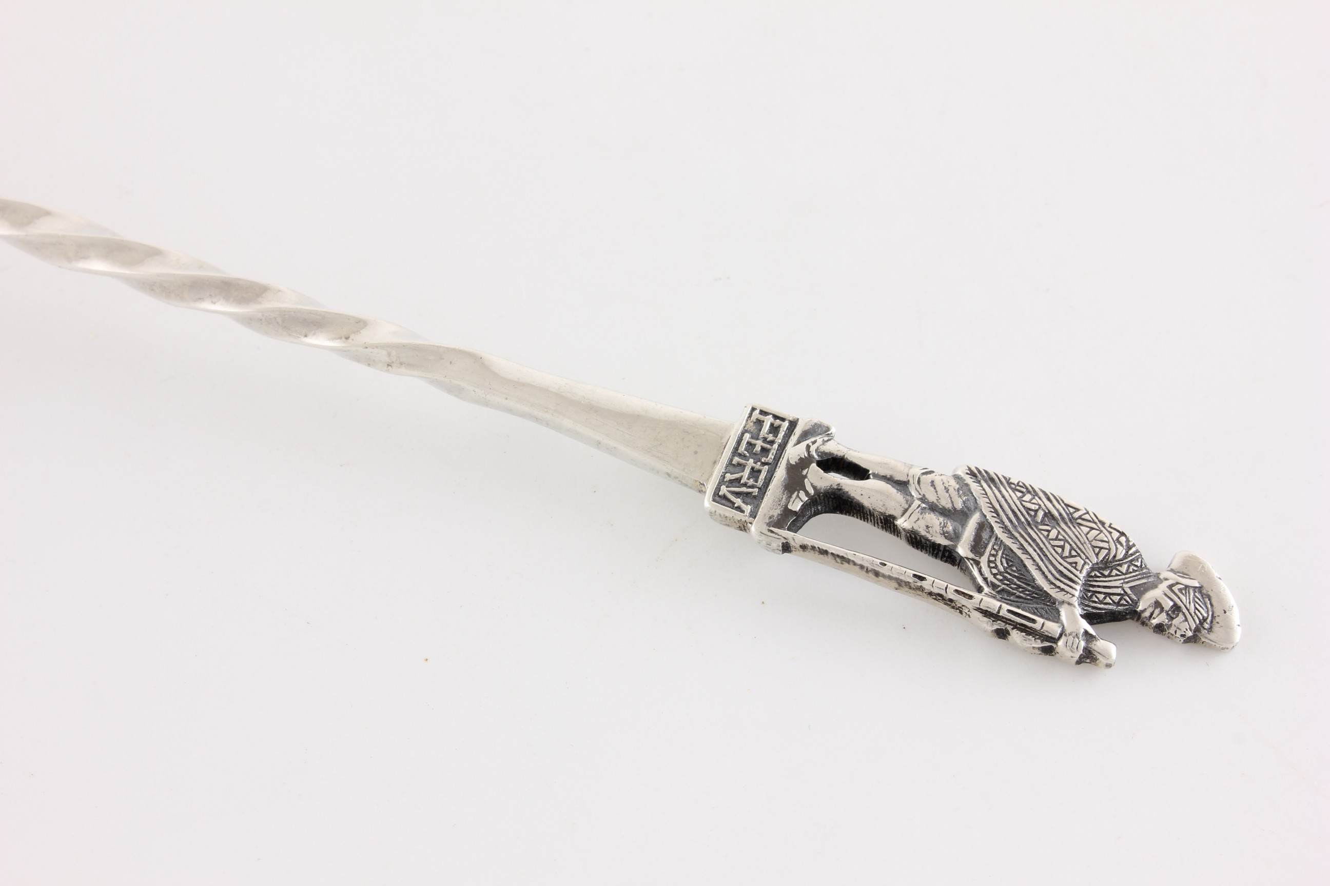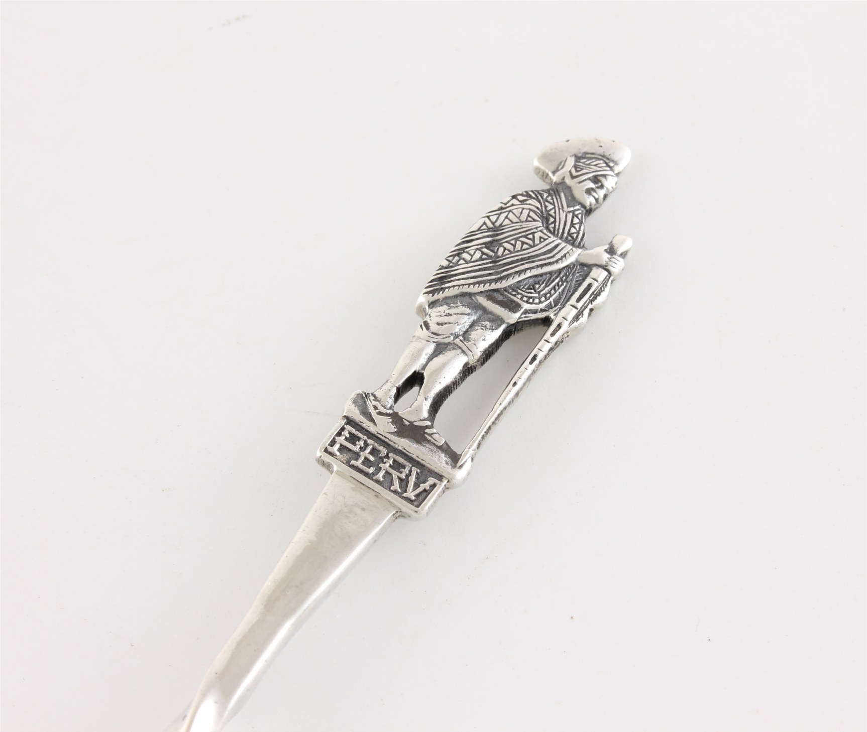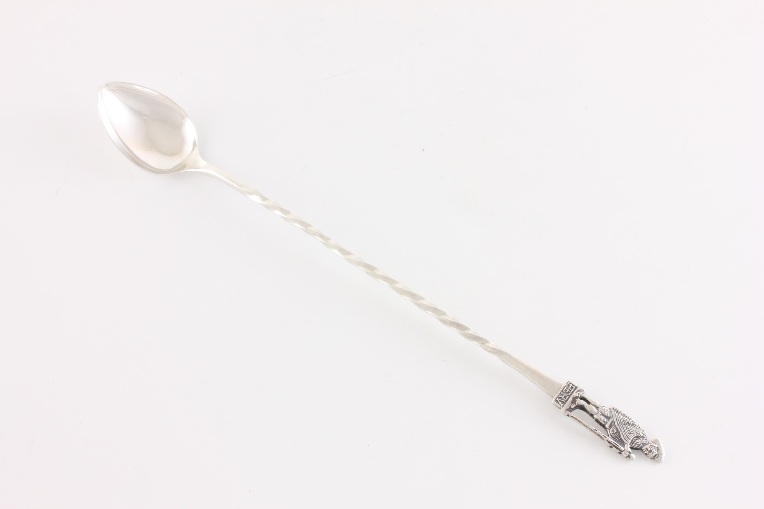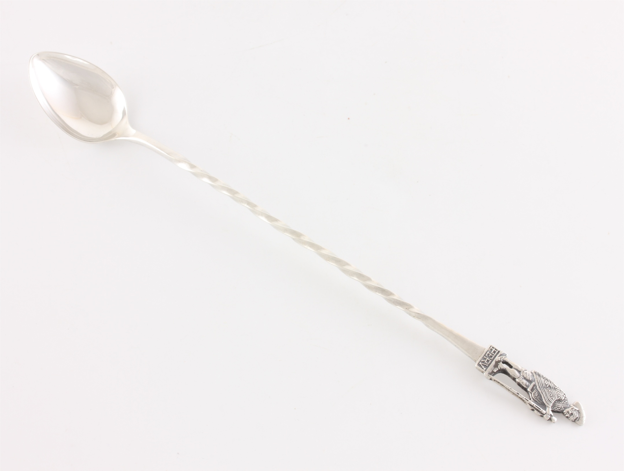 This vintage Peru 925 Silver long cocktail stirrer spoon which is stamped 925 for 925 silver has a Peruvian male figure finial and is marked PERV.