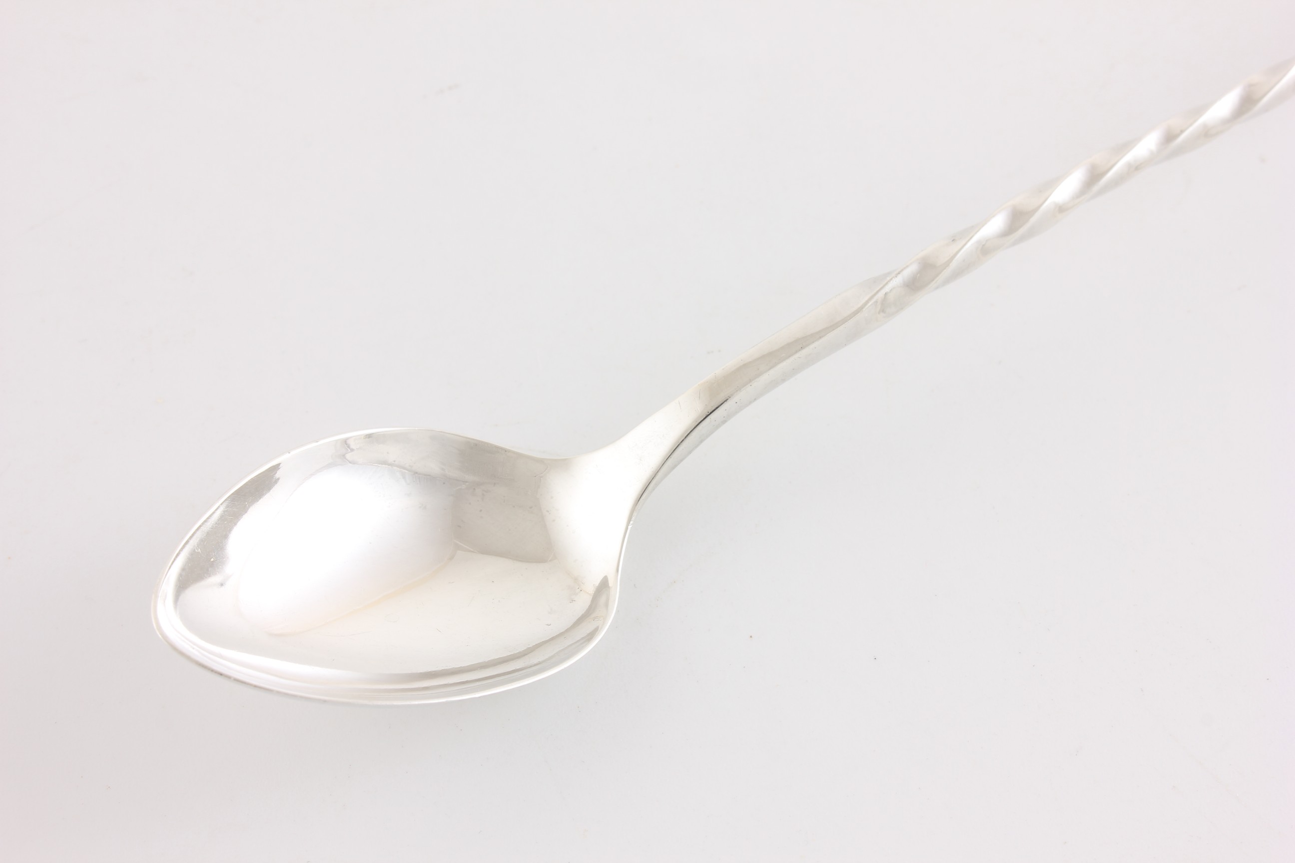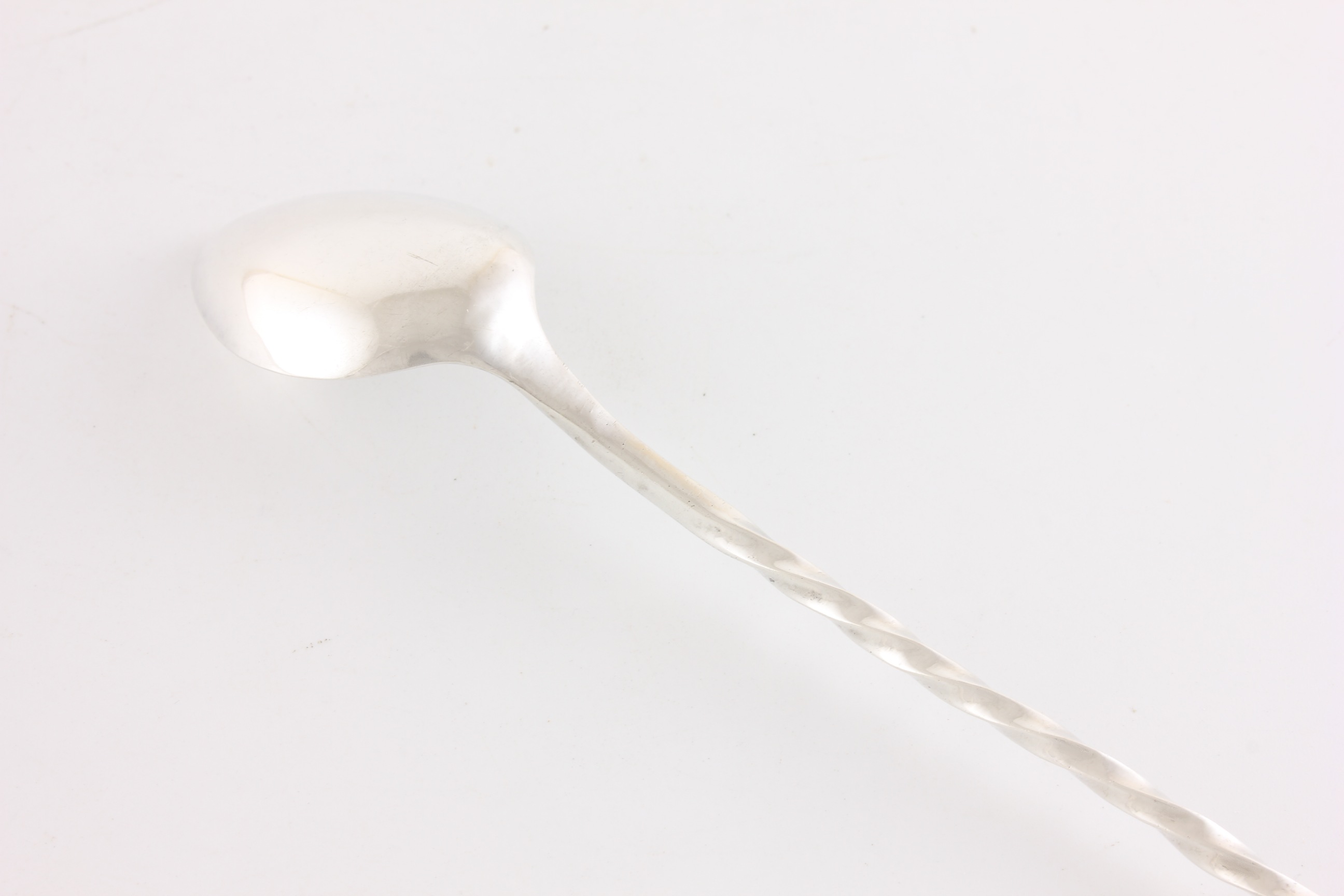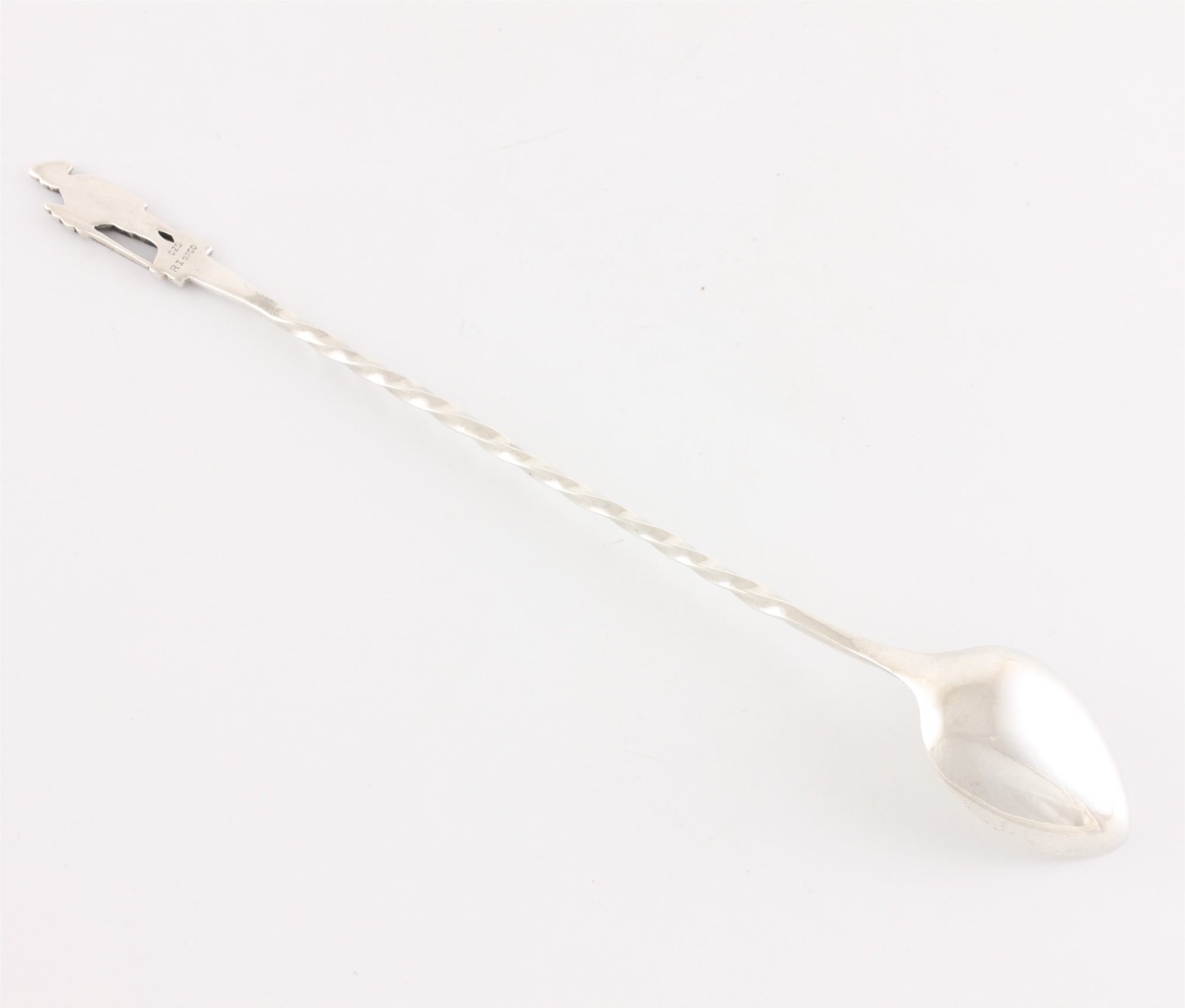 This collectible cocktail spoon originates from Peru (PERV is an archaic spelling of Peru) and has a twisted design with a large spoon at the other end.