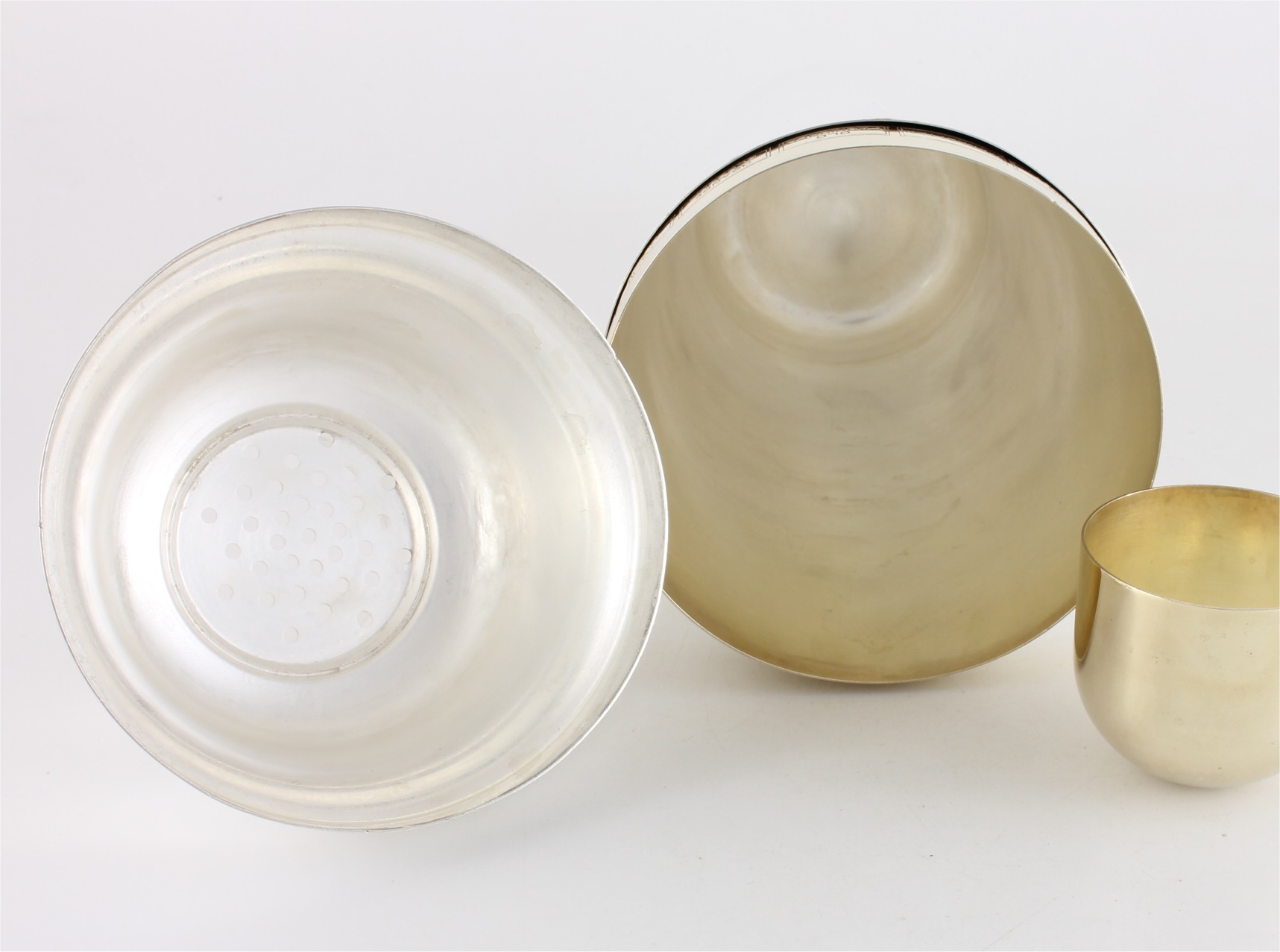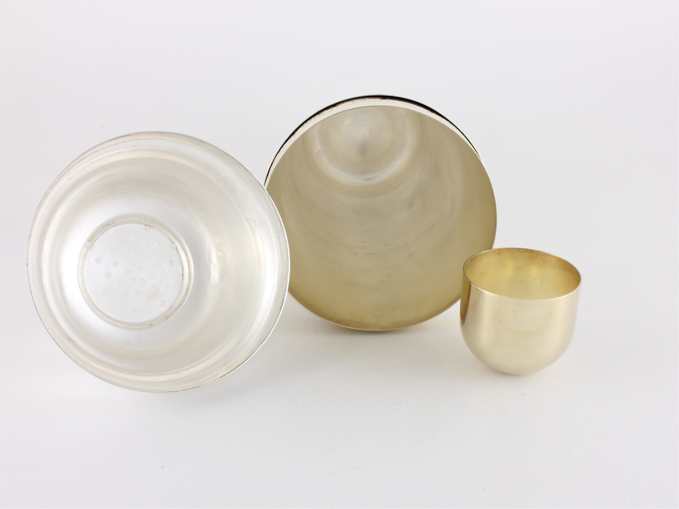 The underside is marked with the maker's details of Napier which is an American company and with US Patents 2013618. 2013616 and also Foreign Patents. The top strainer section is silver plated and has a gilt lid.