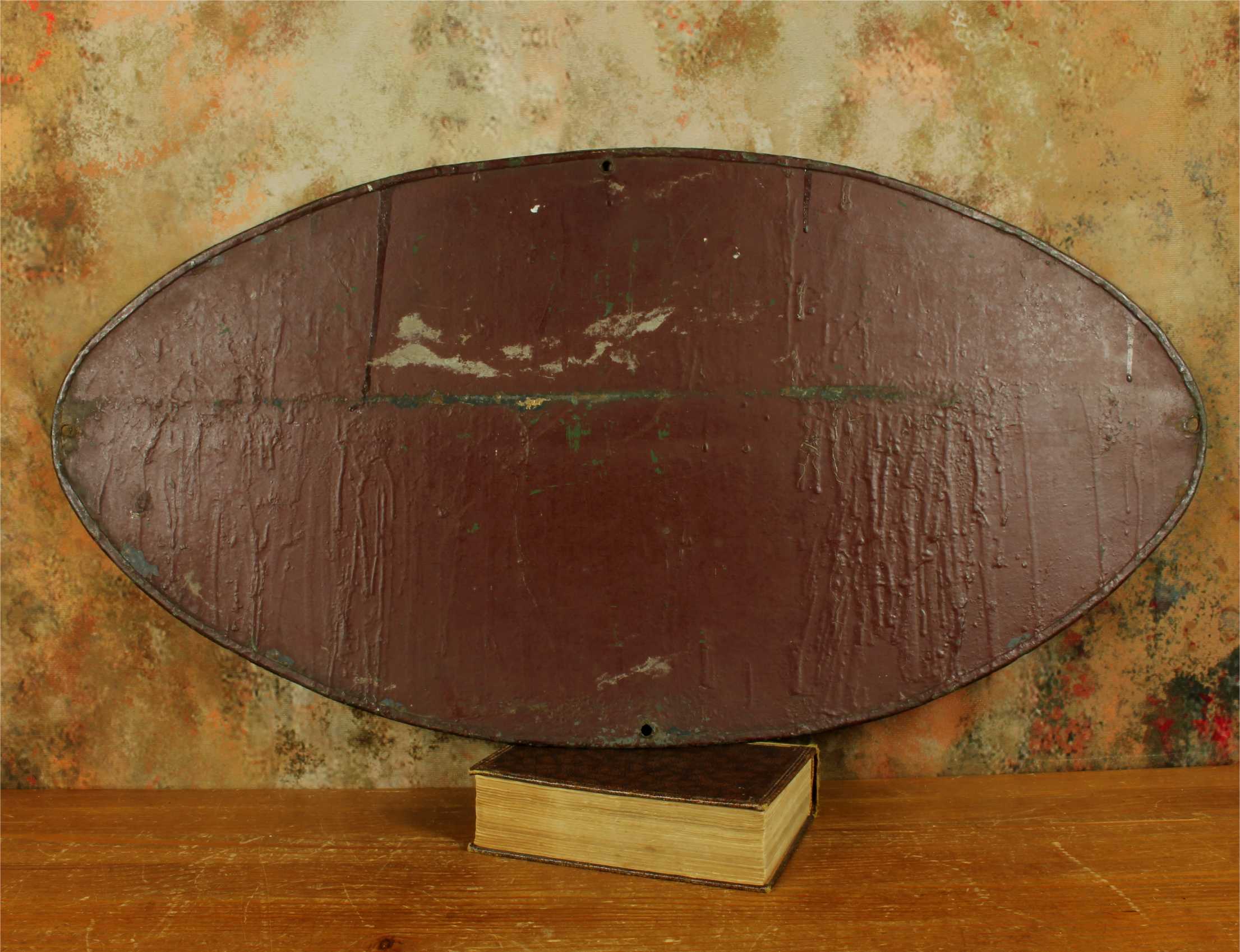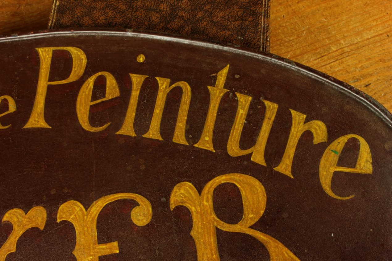 This antique trade sign that dates from the late 19th / early 20th century would have been fixed to a wall to advertise a French painter's business. The oval shape and wonderful rustic charm with flaky paint that shows years of aging and wear all add to the decorative look.