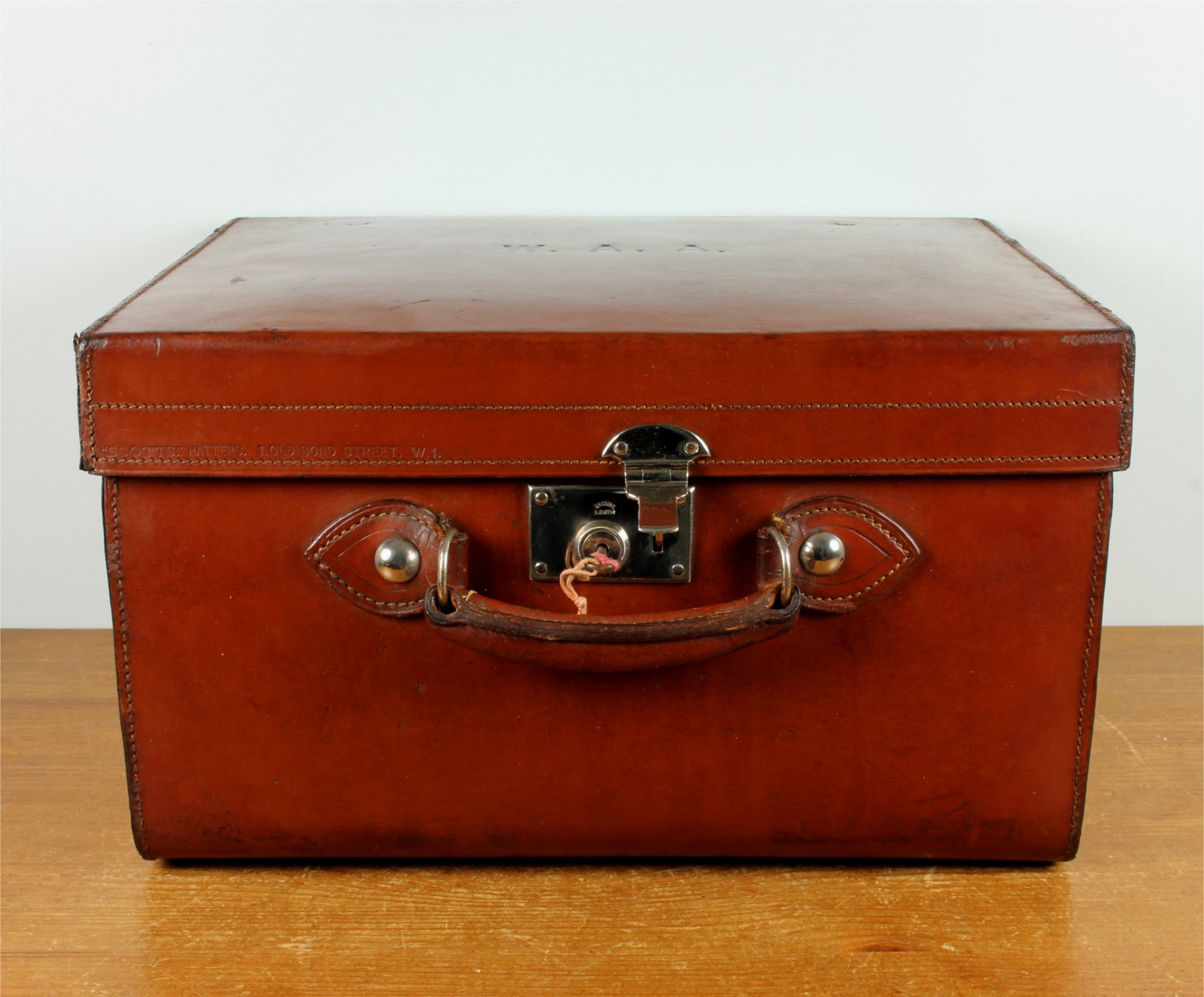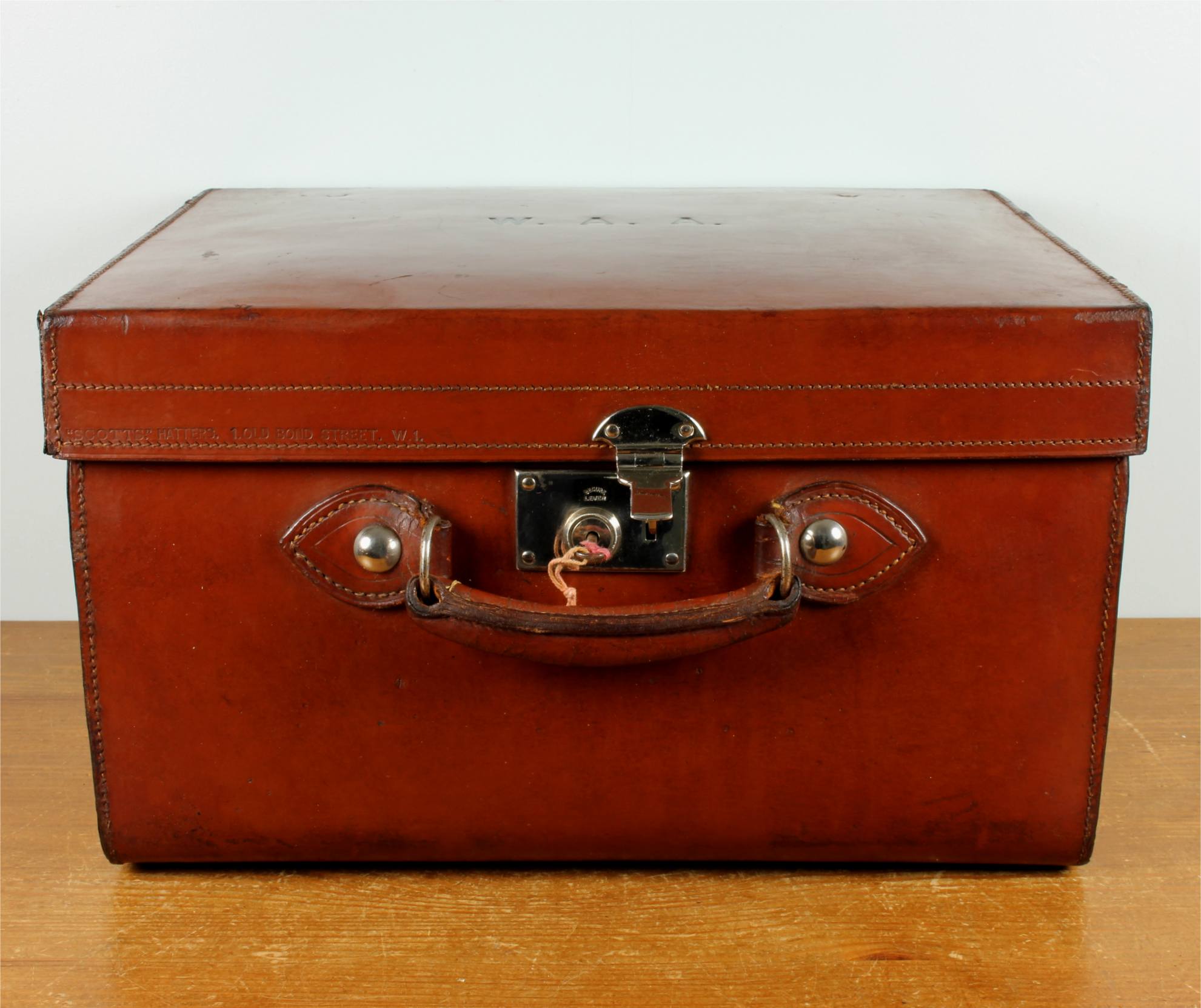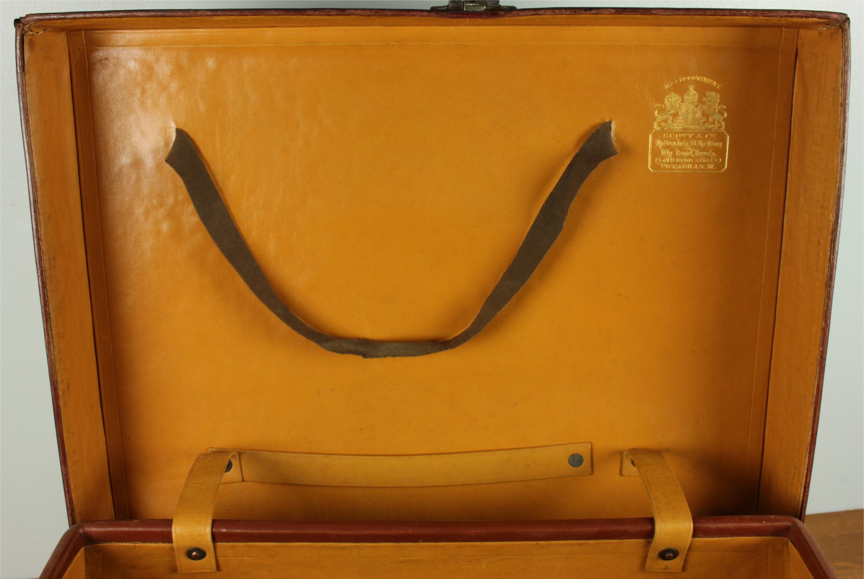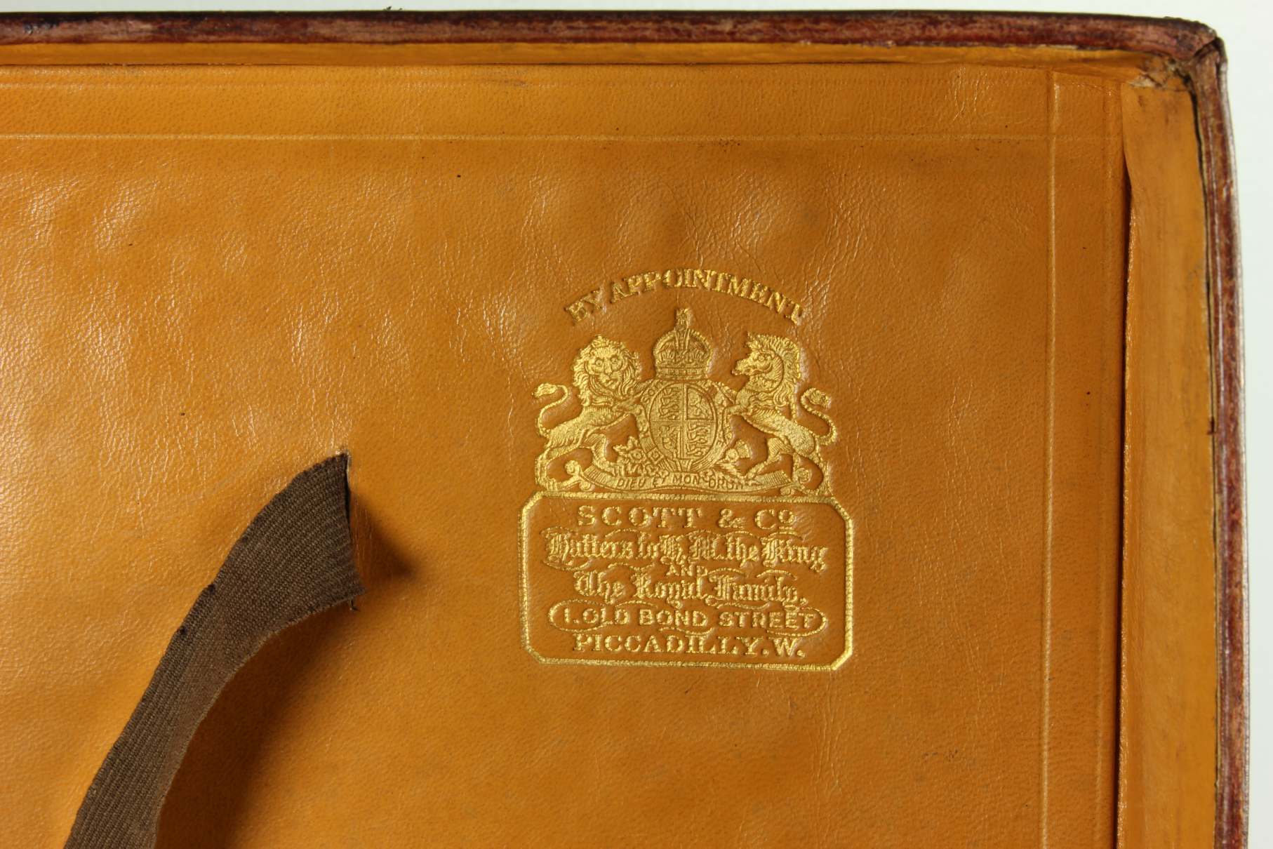 Marked: Embossed in gilt lettering By Appointment Scott & Co. Hatters to HM The King and The Royal Family. 1 Old Bond Street, Piccadilly W. Also embossed to the outside lid edge.