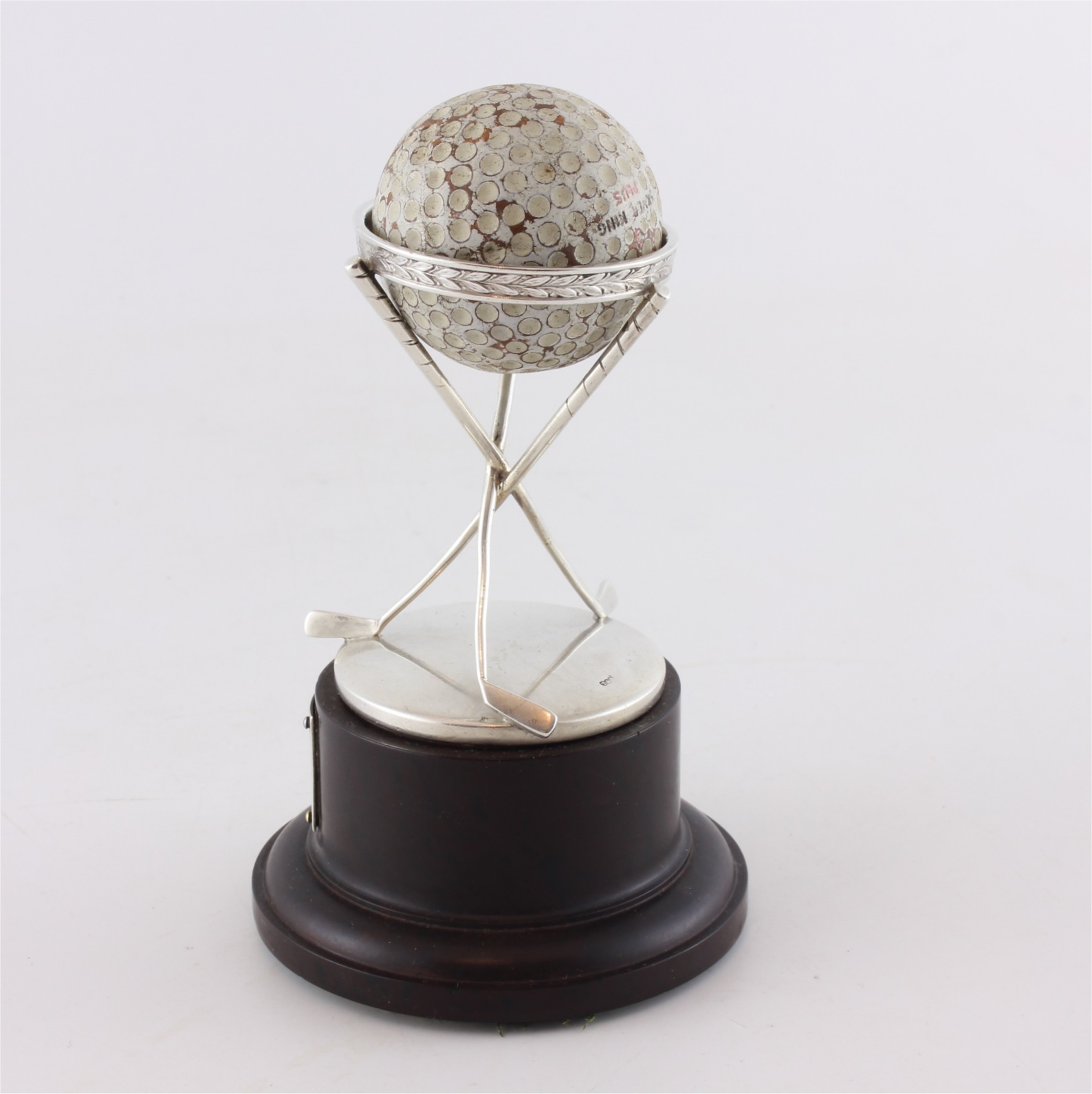 Material: Solid silver trophy. Golf ball. Black bakelite base.