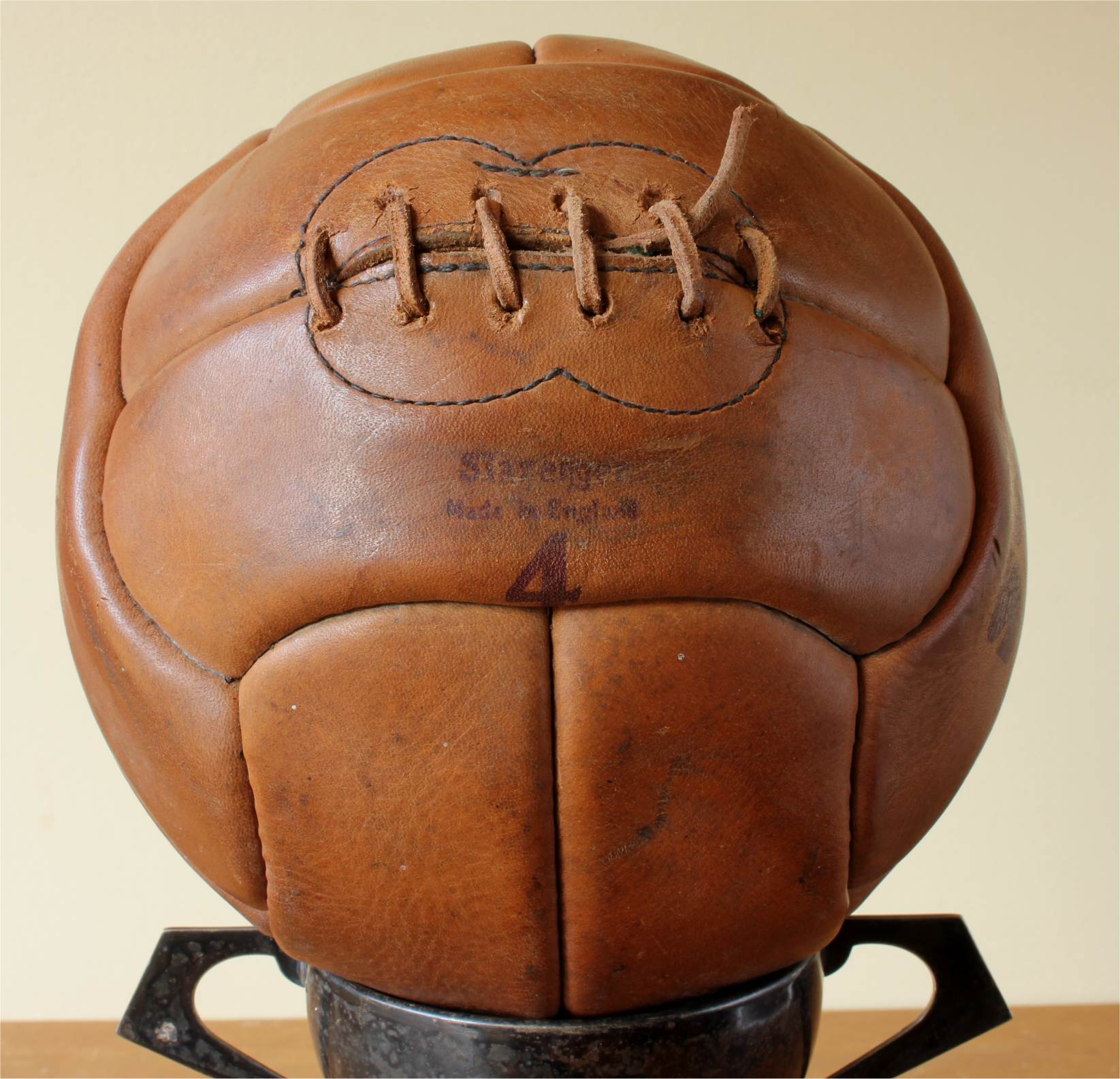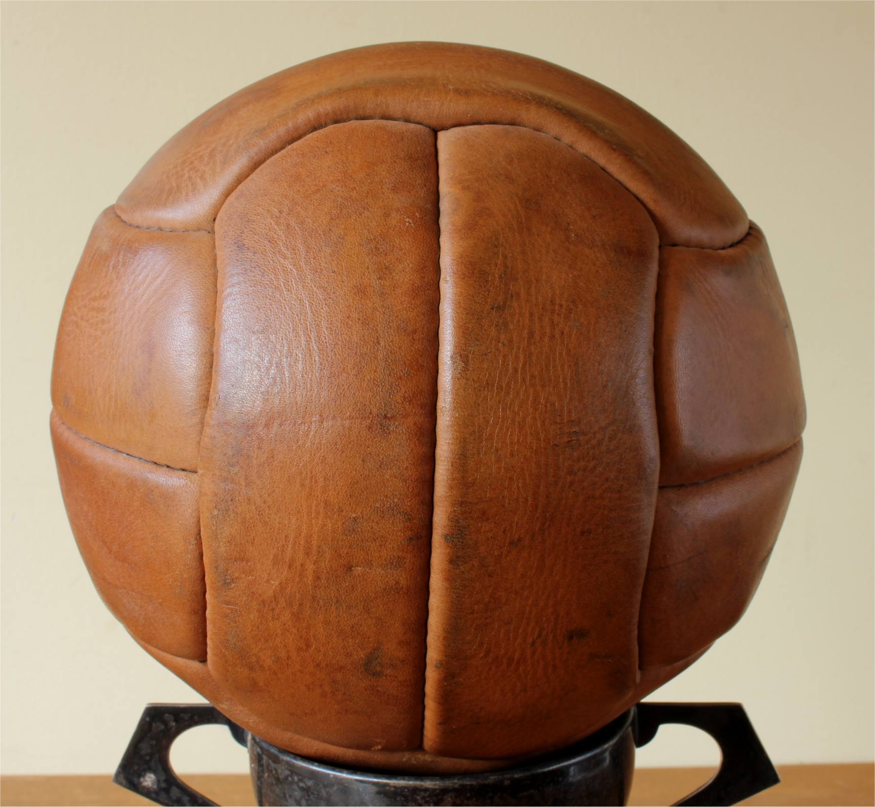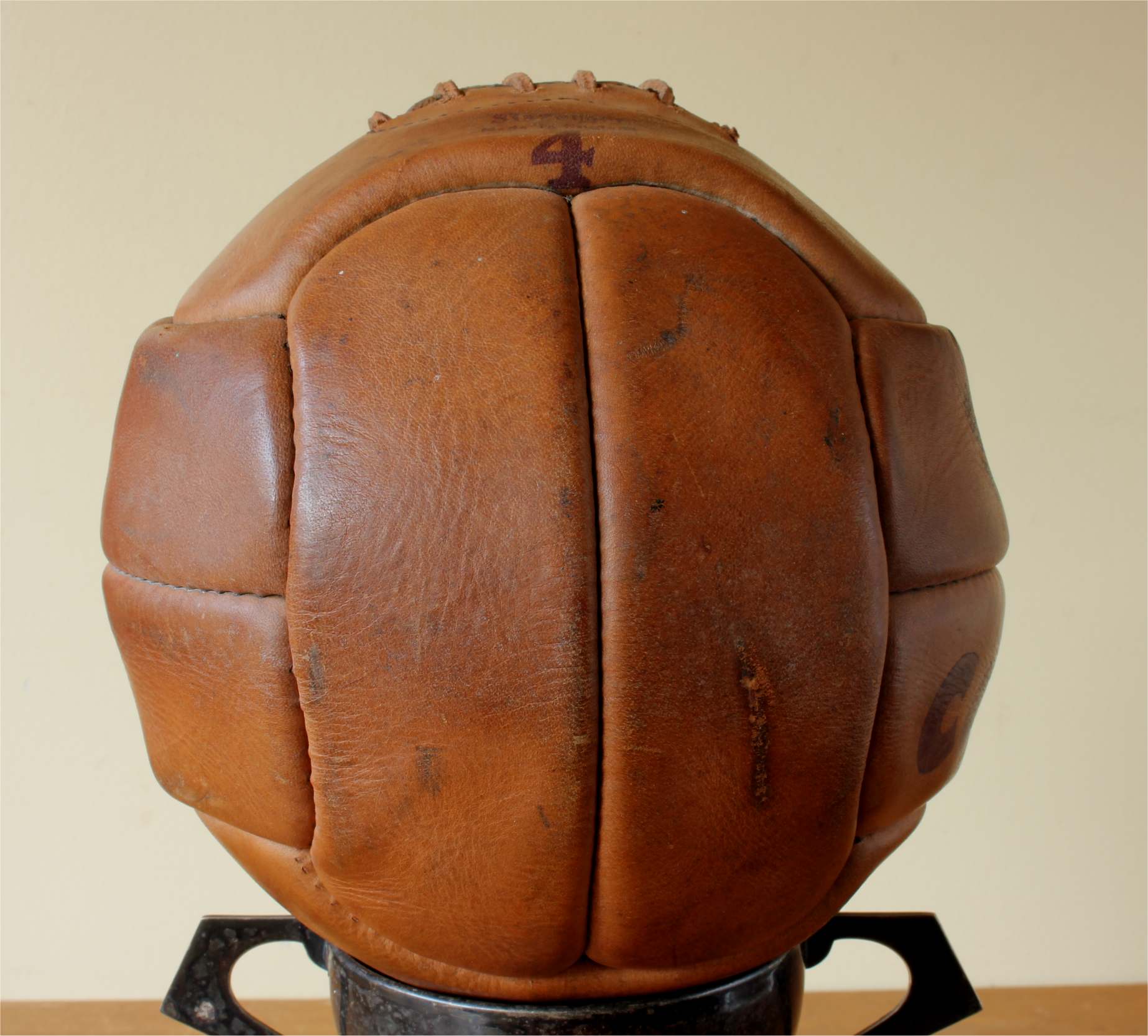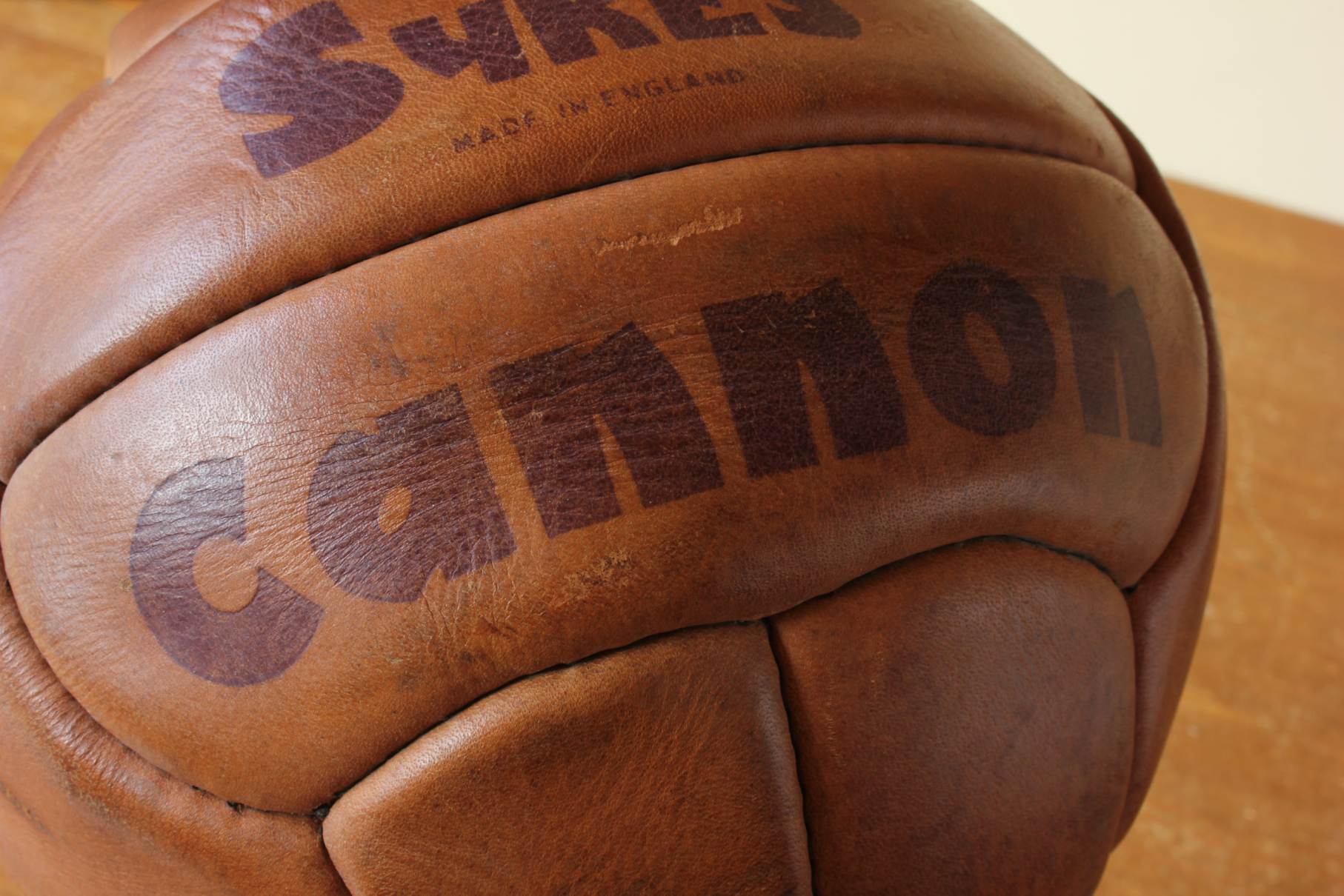 This great looking soccer ball which is made of thick tan leather has leather laces, is marked with a 4. This is a nice vintage English leather ball dating from c1940 and is by a top maker.