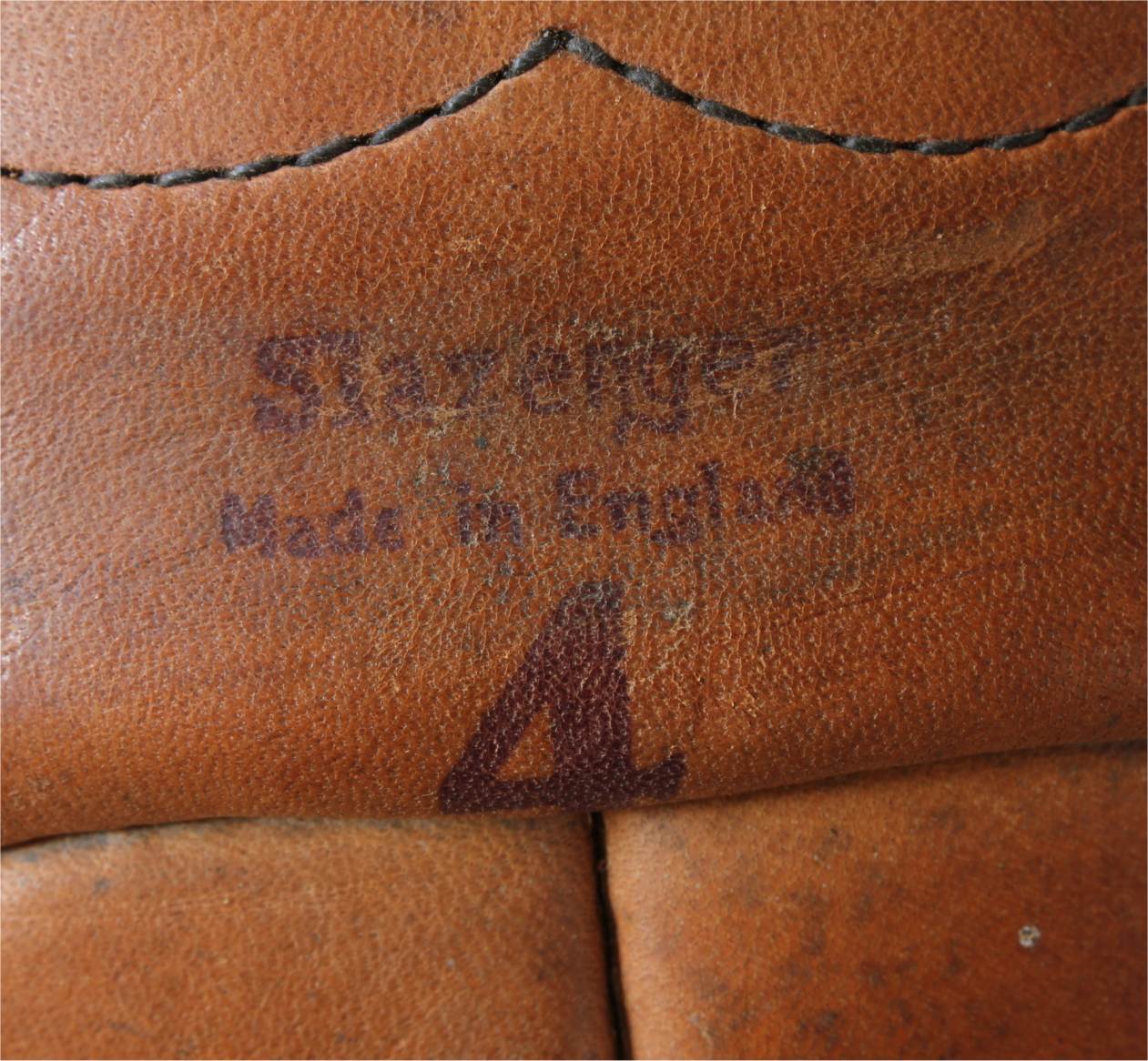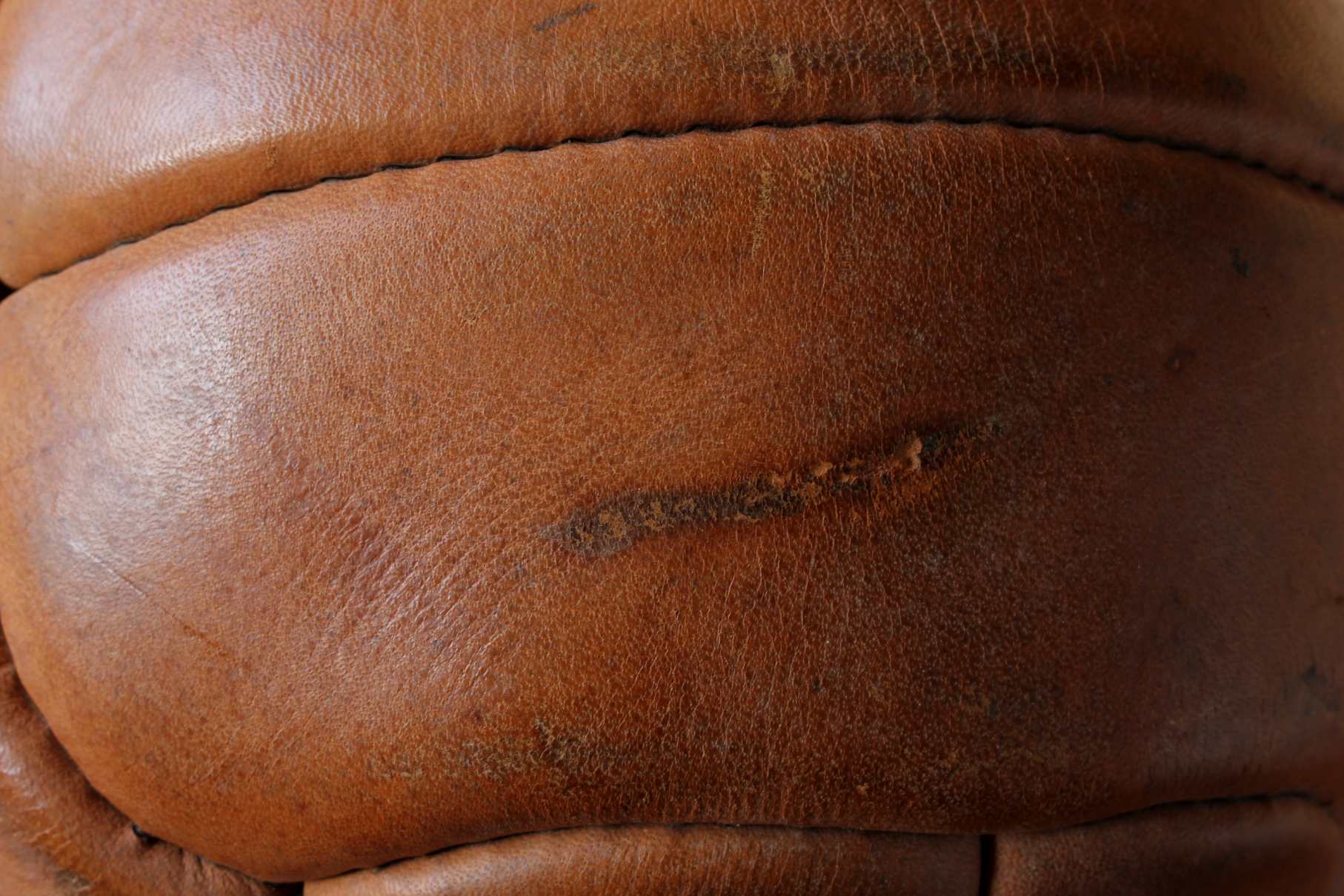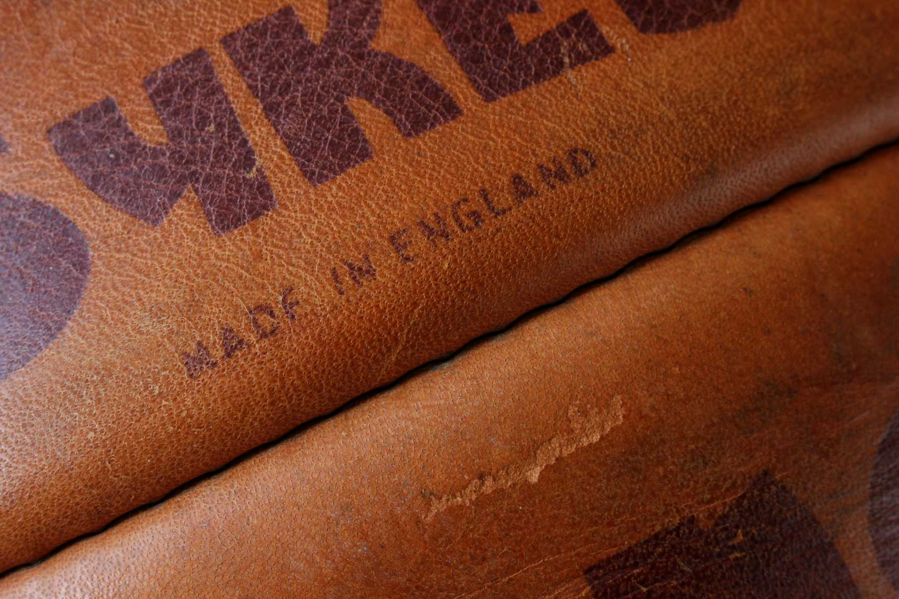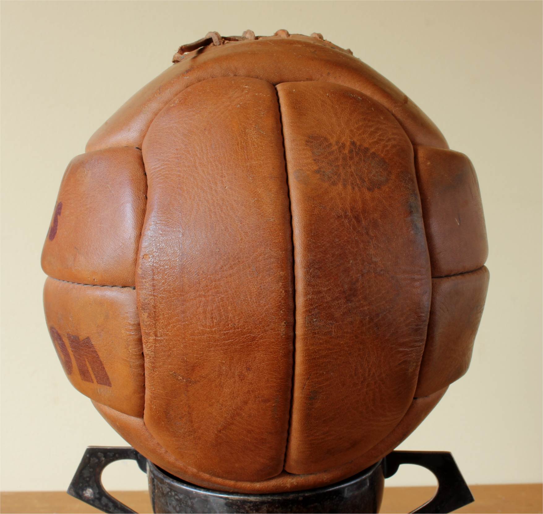 This great looking soccer ball which is made of thick tan leather has leather laces, is marked with a 4. This is a nice vintage English leather ball dating from c1940 and is by a top maker.