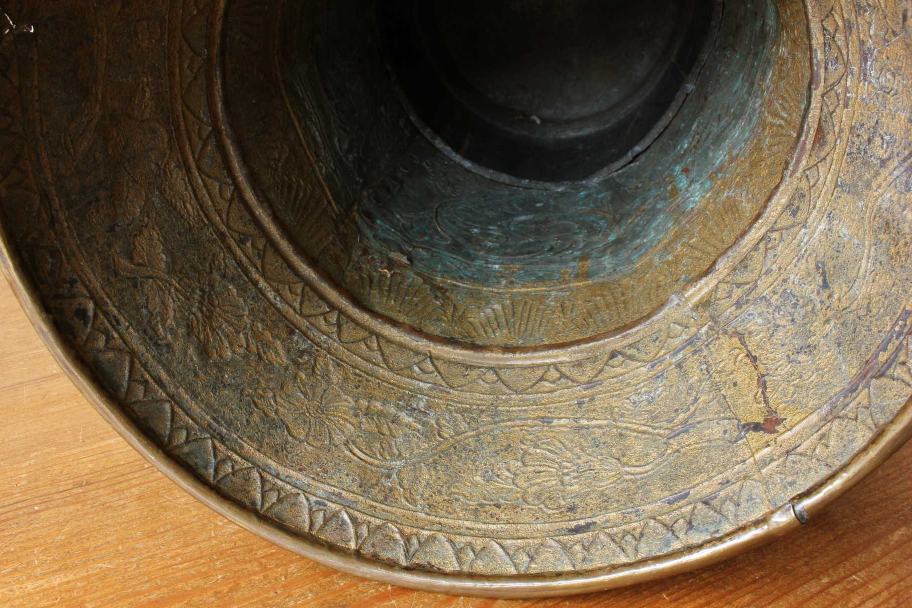 This large handsome antique brass umbrella / stick stand which was made in Netherlands dates from the beginning of the 20th century.