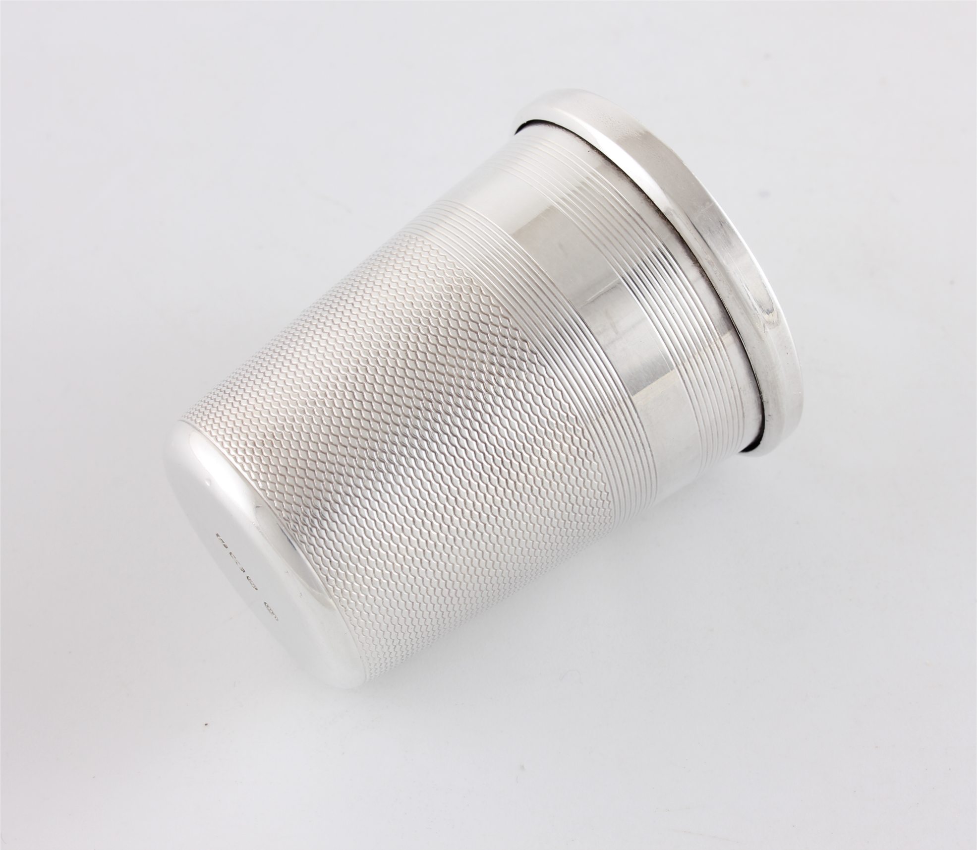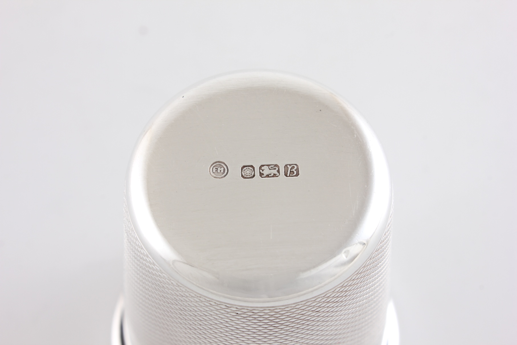 This handsome solid silver drinks spirit measure which is in the form of a large thimble is made by Francis Howard and is nicely hallmarked on the base for Sterling Silver Sheffield 1976.