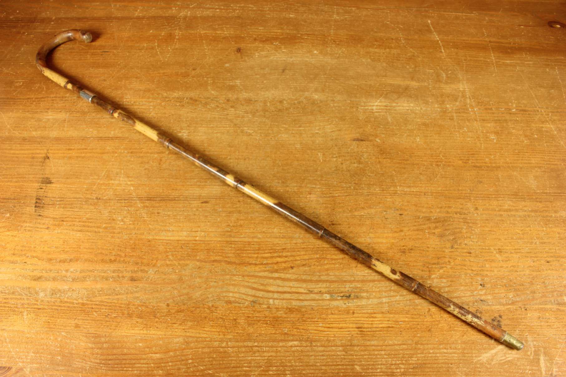 This Victorian walking cane has a crook handle, monogrammed silver collar, brass ferrule and is a good usable stick being 88.5 cm in length.