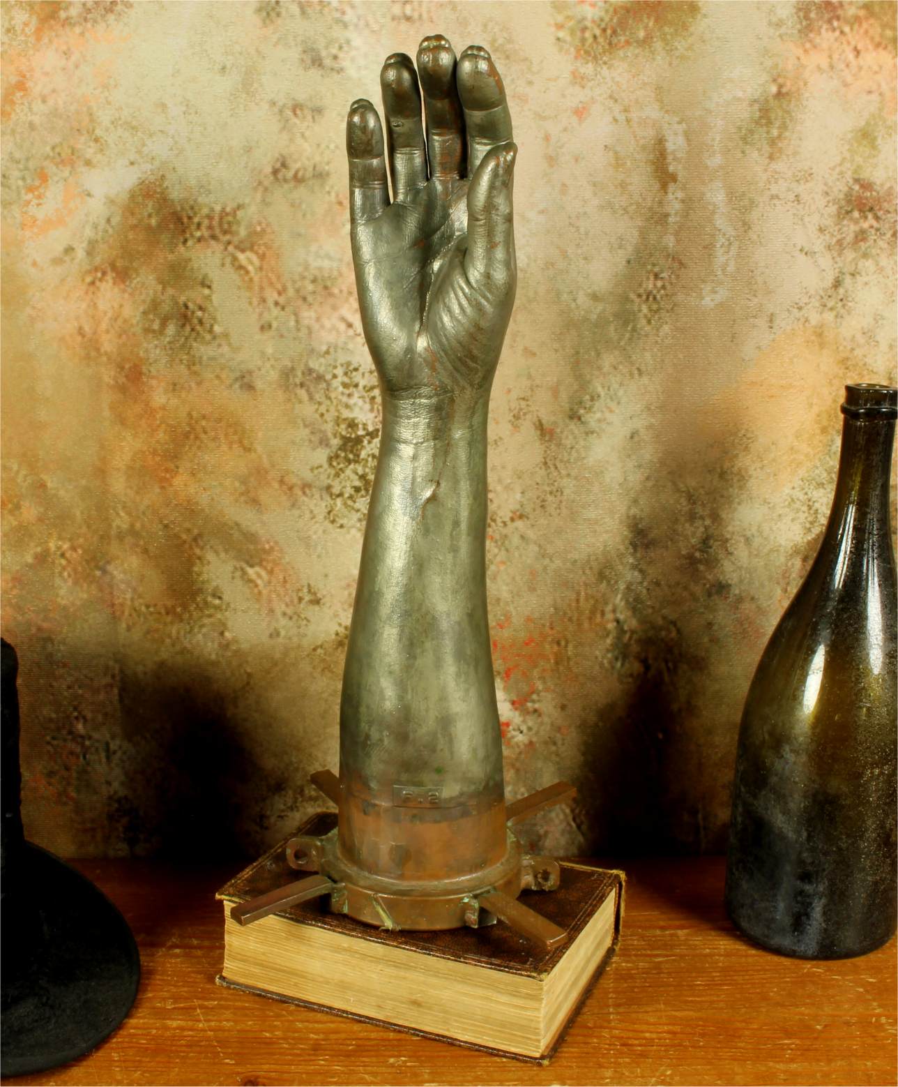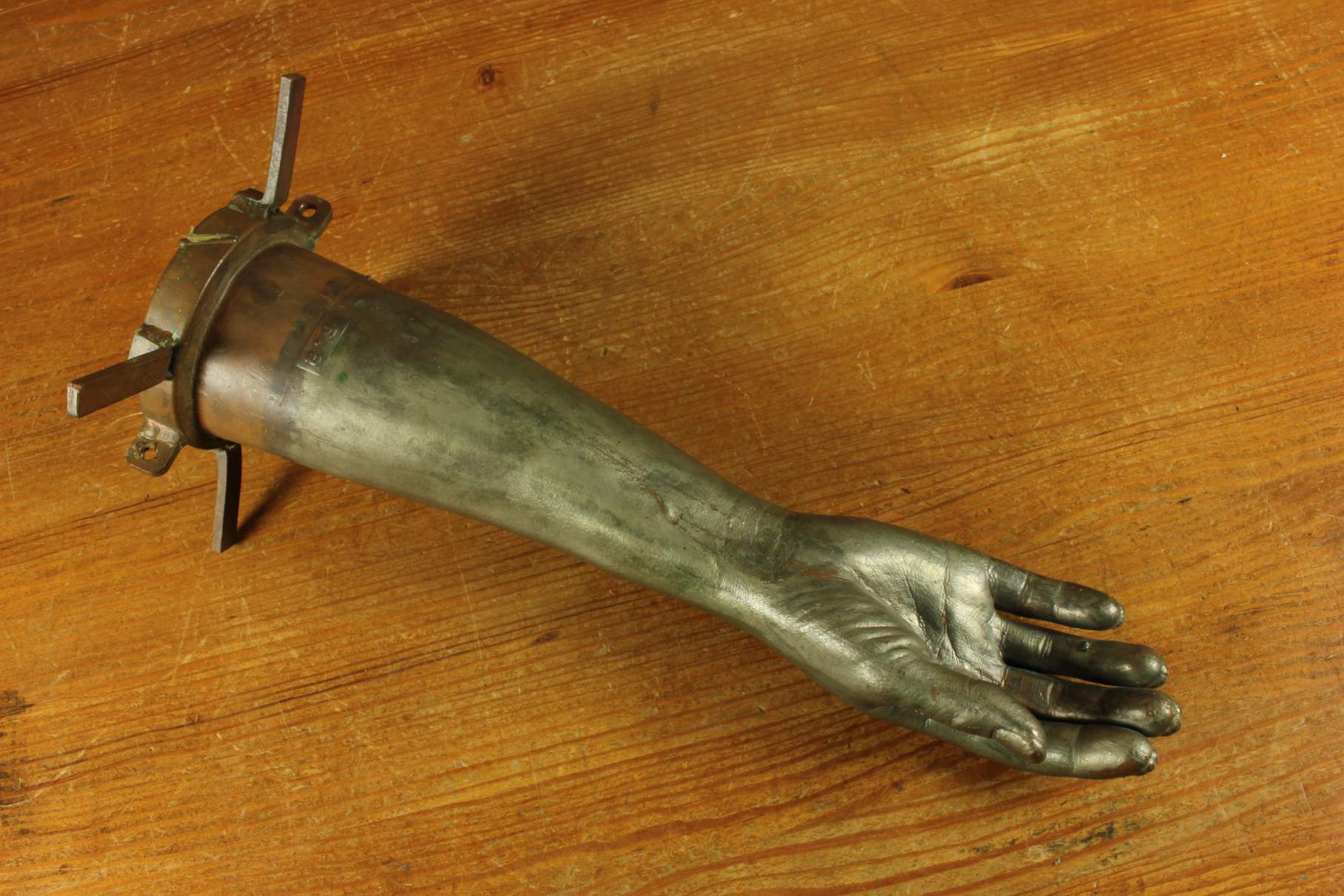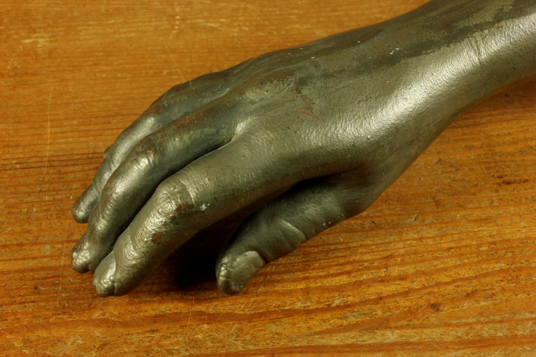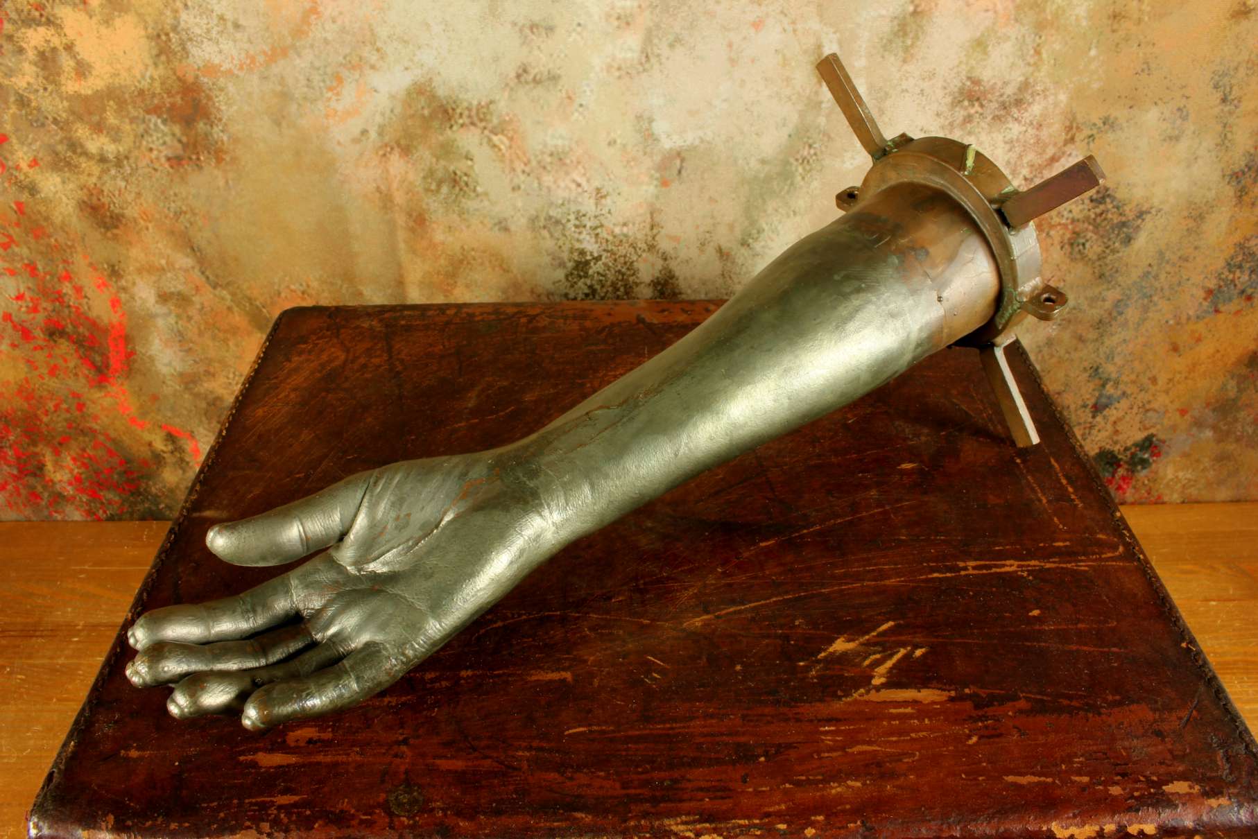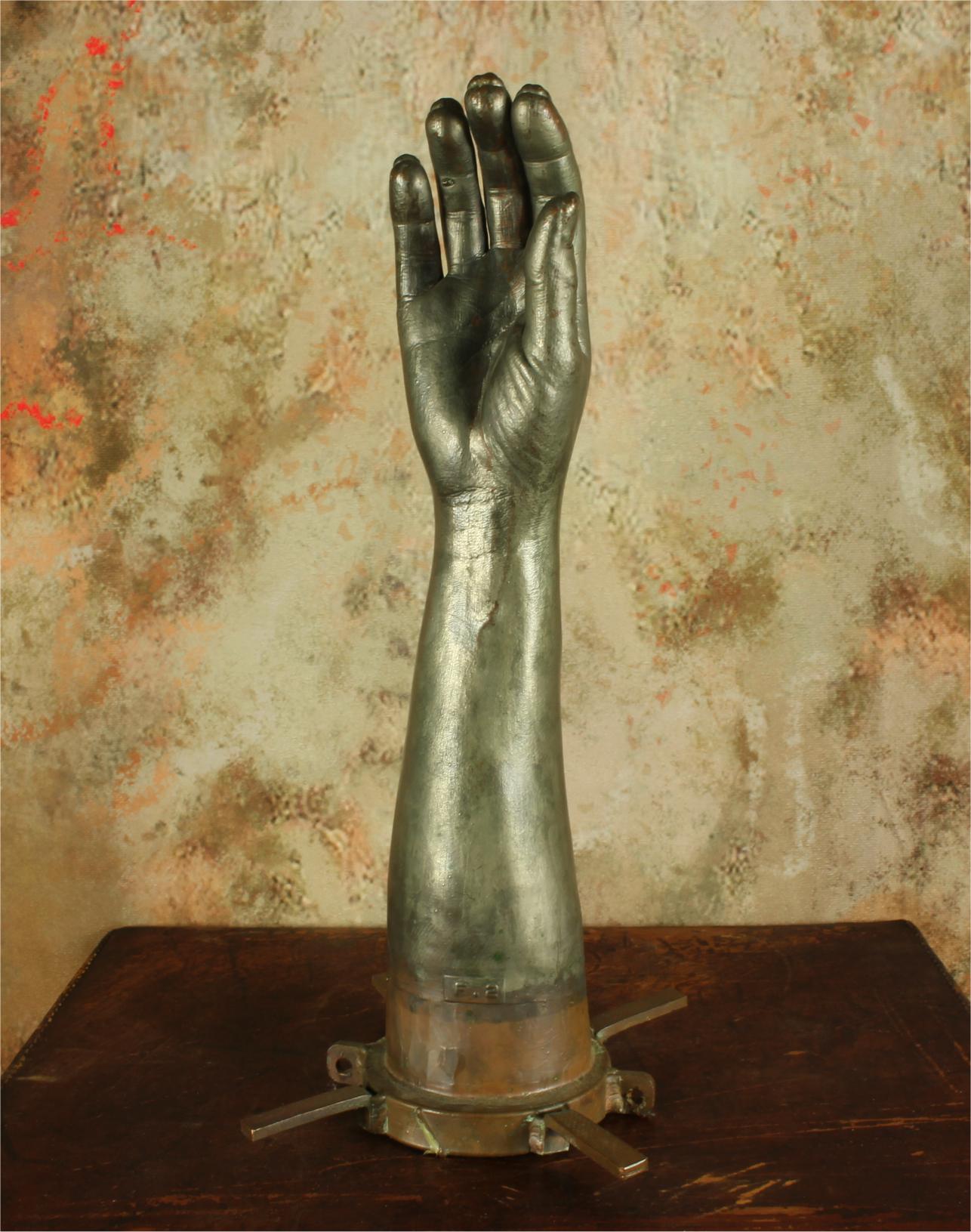 This unusual vintage hand & lower arm which is made of heavy copper dates from the mid 20th century, originates from France and would have most likely been a one off mould used to make a rubber prosthetic arm or a life size model.